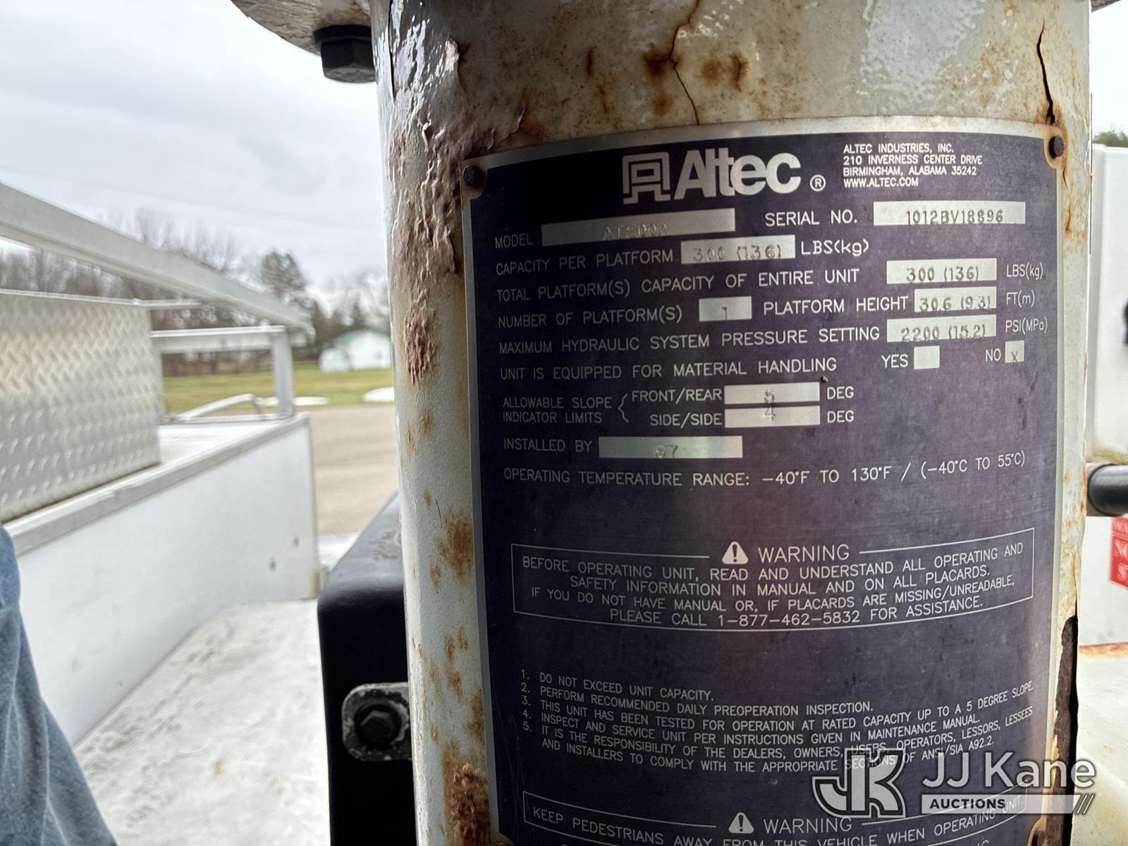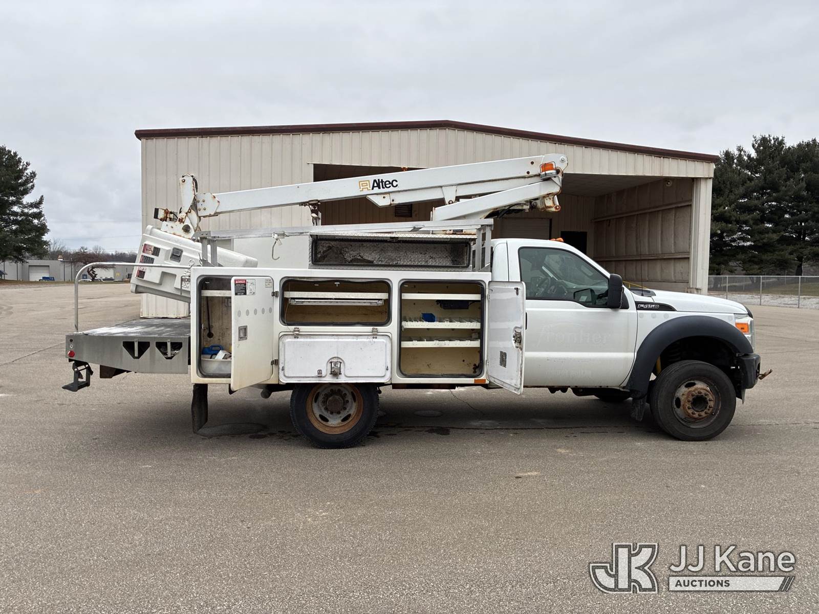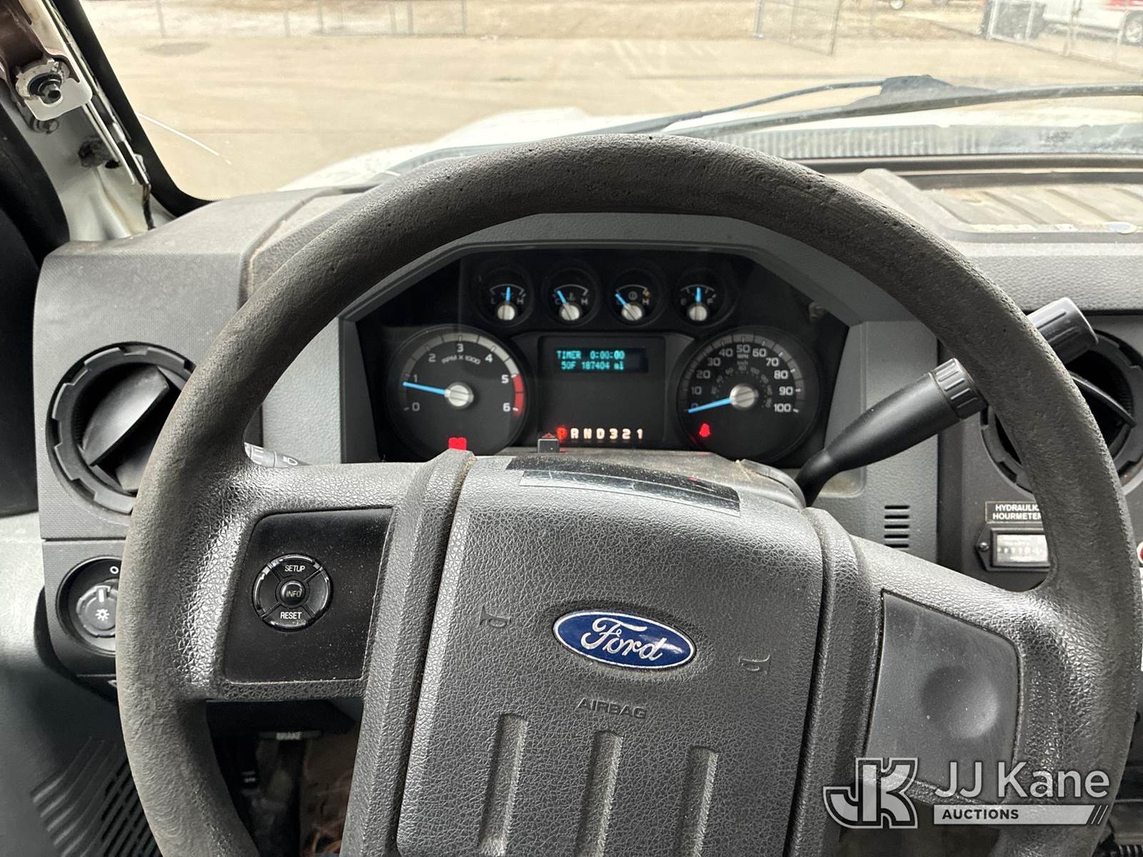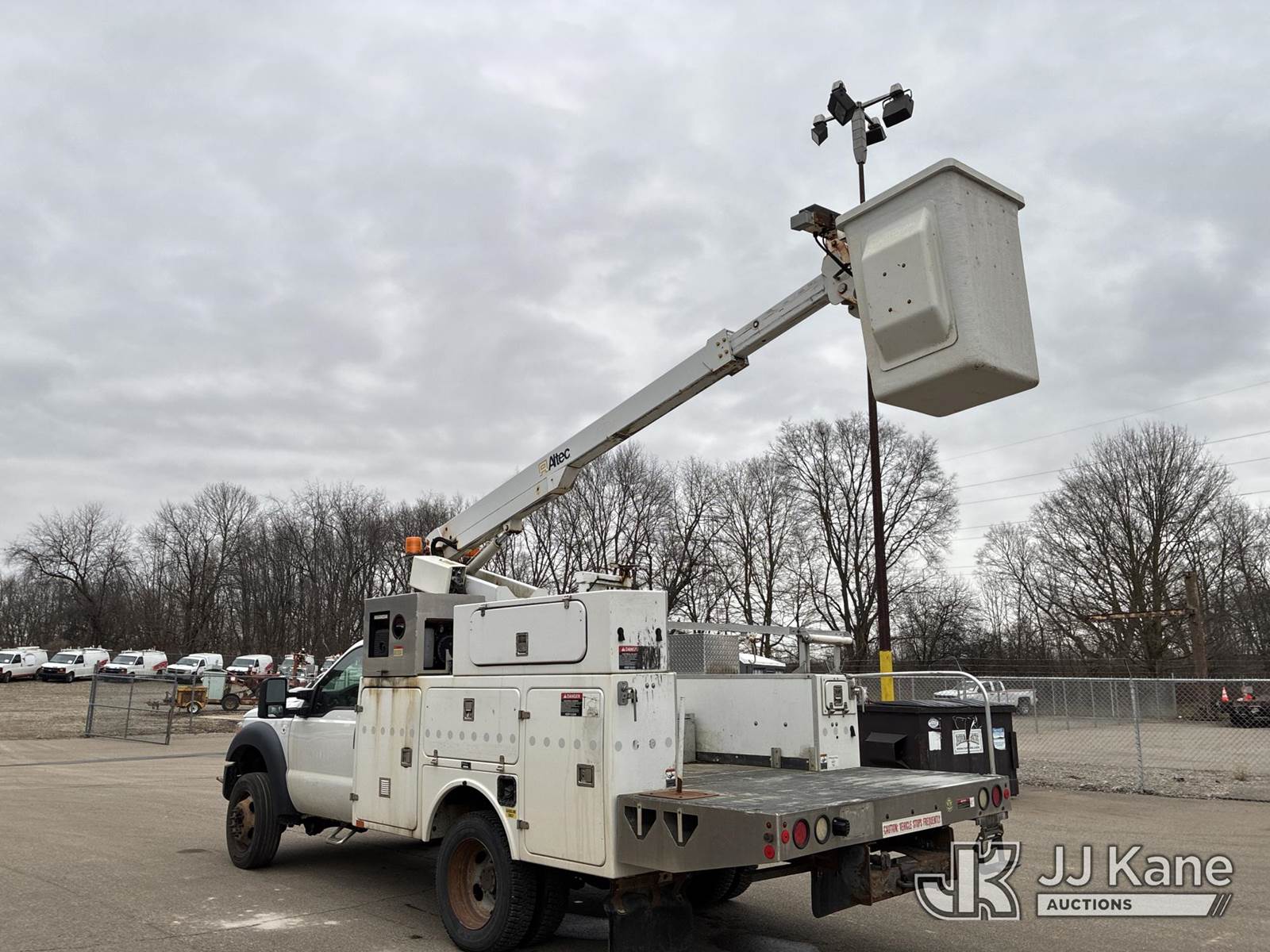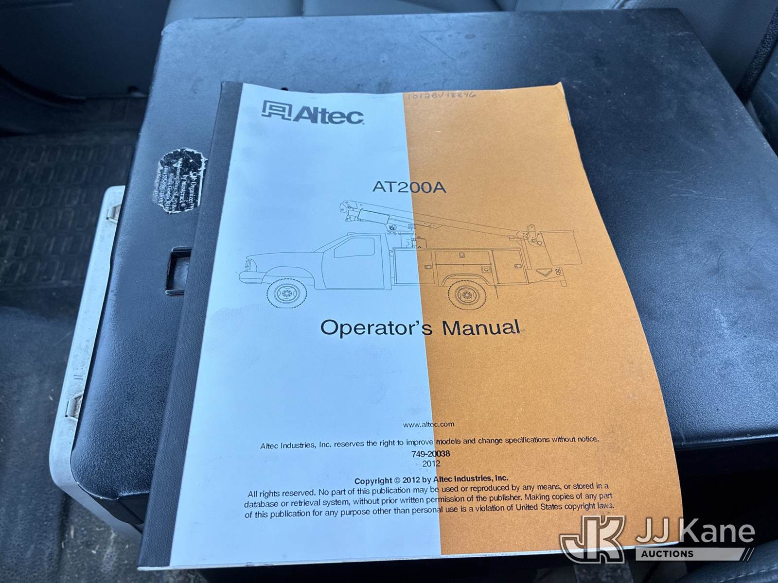 Altec AT200A, 35 ft, Telescopic Non-Insulated Bucket Truck s/n 1012BV18896, with single-man bucket, mounted behind cab on 2012 Ford F-450 SD Service Truck, 6.8L V10 SOHC 30V Auto, RWD, Gas, A/C, with Honda Generator, (187,404 miles) (Runs, Moves,& Operates) (Power Steering Noise) This is a Titled Item NOTE: This unit is being sold AS IS/WHERE IS via Timed Auction and is located in Ashland, OH. For more information & removal arrangements, please contact Jimmy Sanders @ (567) 474-5162, jimmy.sanders@jjkane.com. Load out by appointment only, Buyer/Hauler must present copy of paid invoice upon arrival. Purchaser acknowledges ALL lots must be removed within (10) Calendar days of Auction, or a storage fee may be incurred. For load-out and pick-up information, please reference the hauler sheet sent out after purchase. (Missing manuals, See Auction Company for Manufacturers Information to obtain manuals) (Buyer is responsible for removal. Assistance by consignor or JJ Kane Auctions is not assured.)