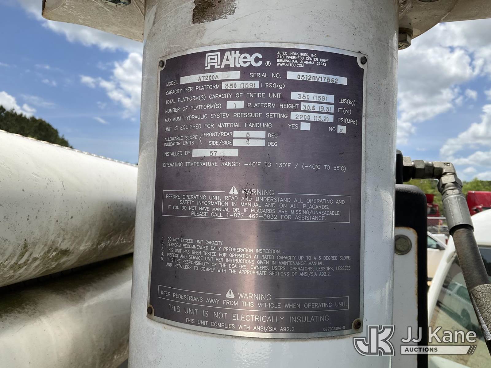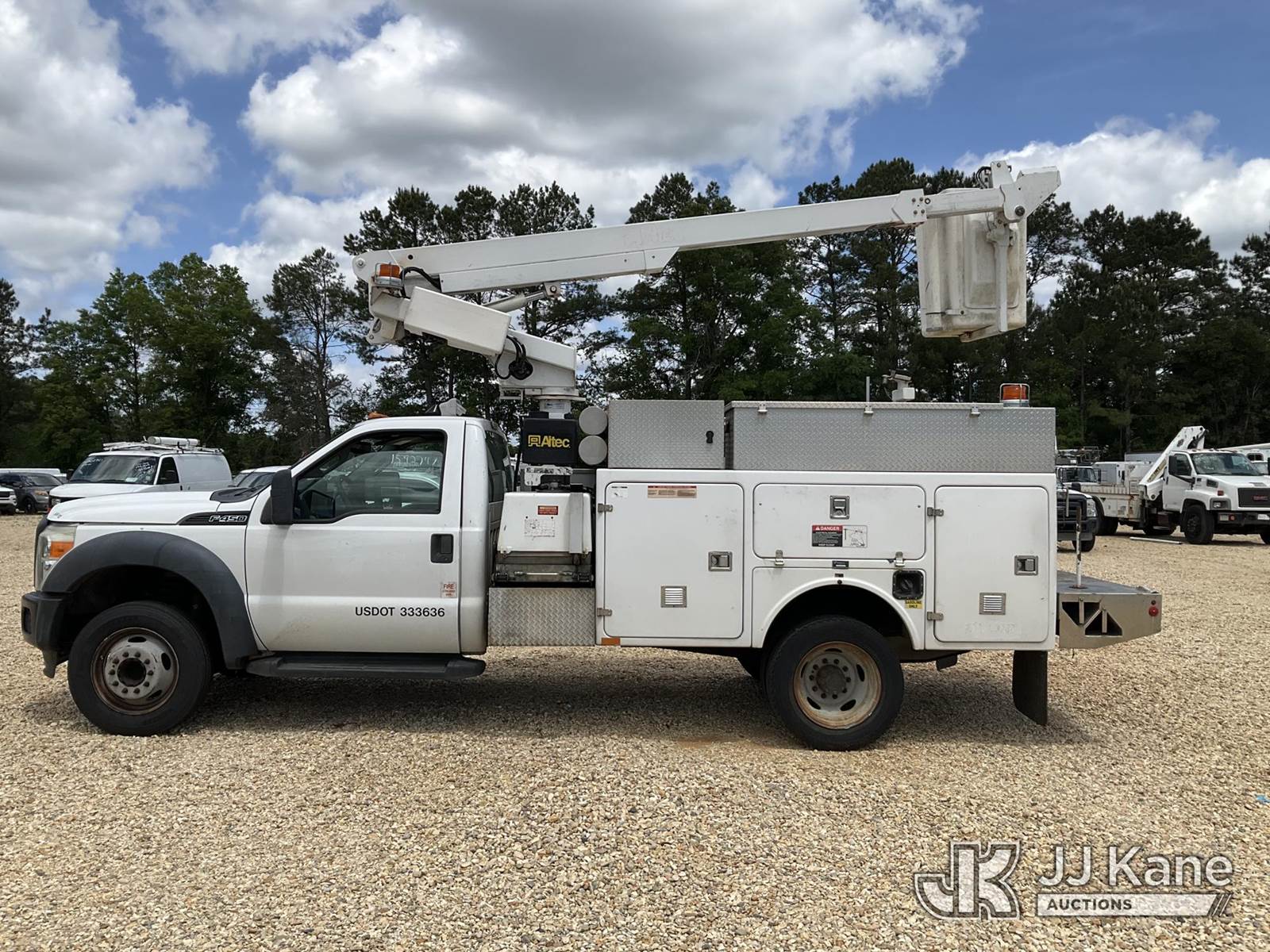Altec AT200A, 35 ft, Telescopic Non-Insulated Bucket Truck s/n 0512BV17562, with Single-Man Bucket, mounted behind cab on 2012 Ford F-450 SD Service Truck, 10-cyl gas, Auto, A/C, (162,329 miles) Element Lease Return (Runs, Moves With A Jump Start & Upper Operates) (Milage 162,329) This is a Titled Item NOTE: This unit is being sold AS IS/WHERE IS via Timed Auction and is located in Robert, LA. Inspection & preview days for this unit are by appointment only; please contact us at contact@jjkane.com or 84-Go-JJKane for more details. License # LA AB-154 (Missing manuals, See Auction Company for Manufacturers Information to obtain manuals) (Buyer is responsible for removal. Assistance by consignor or JJ Kane Auctions is not assured.)