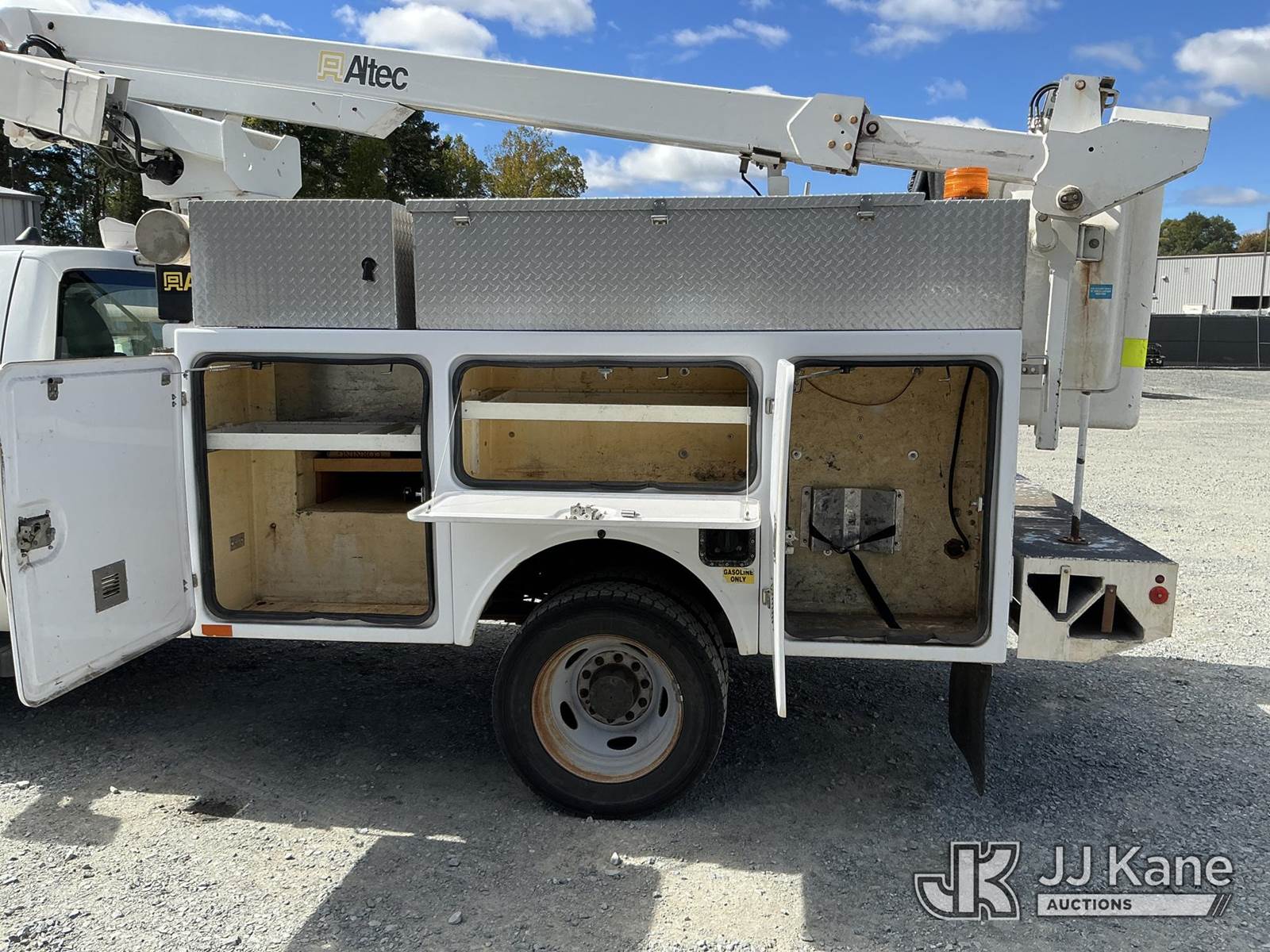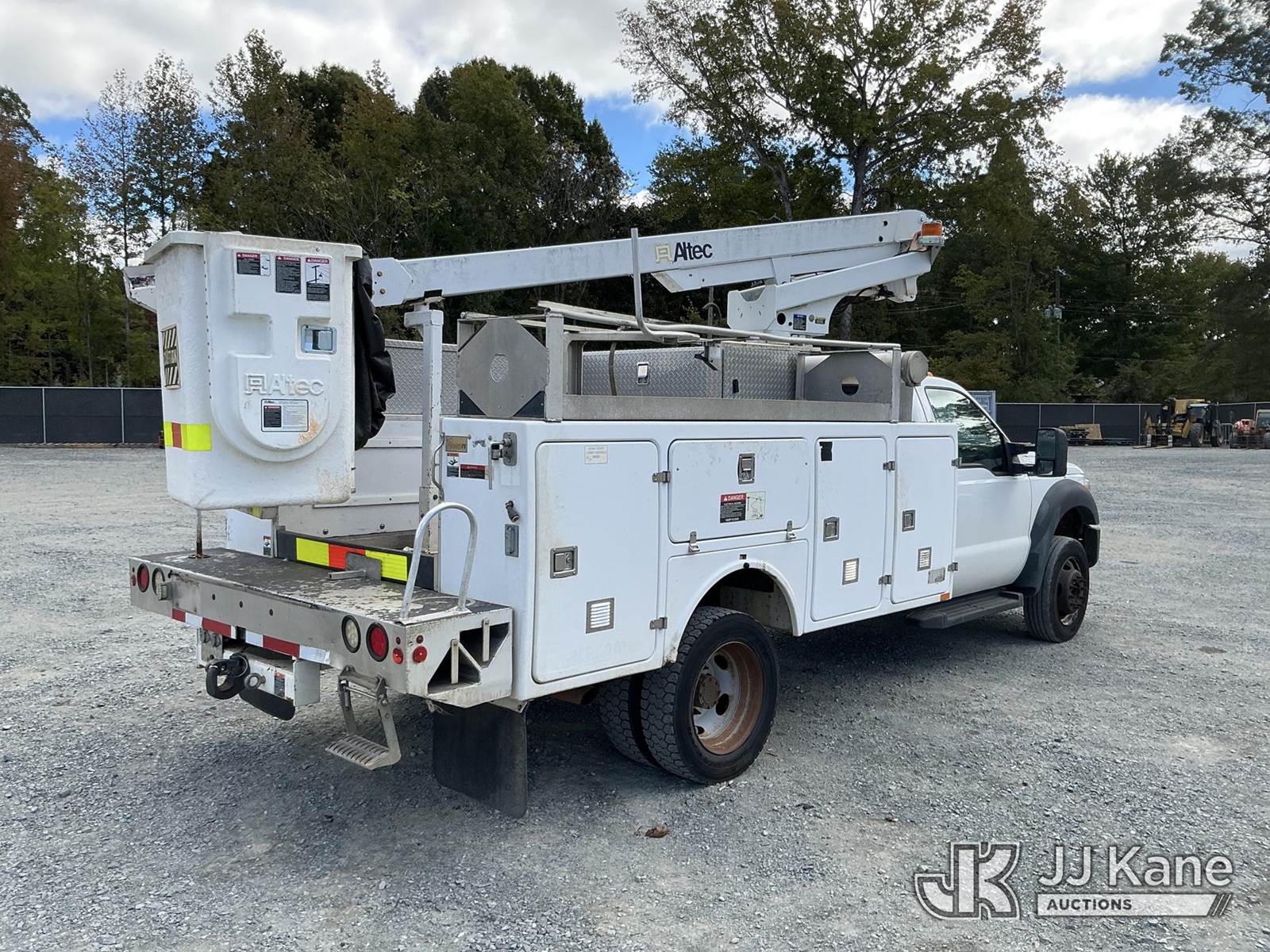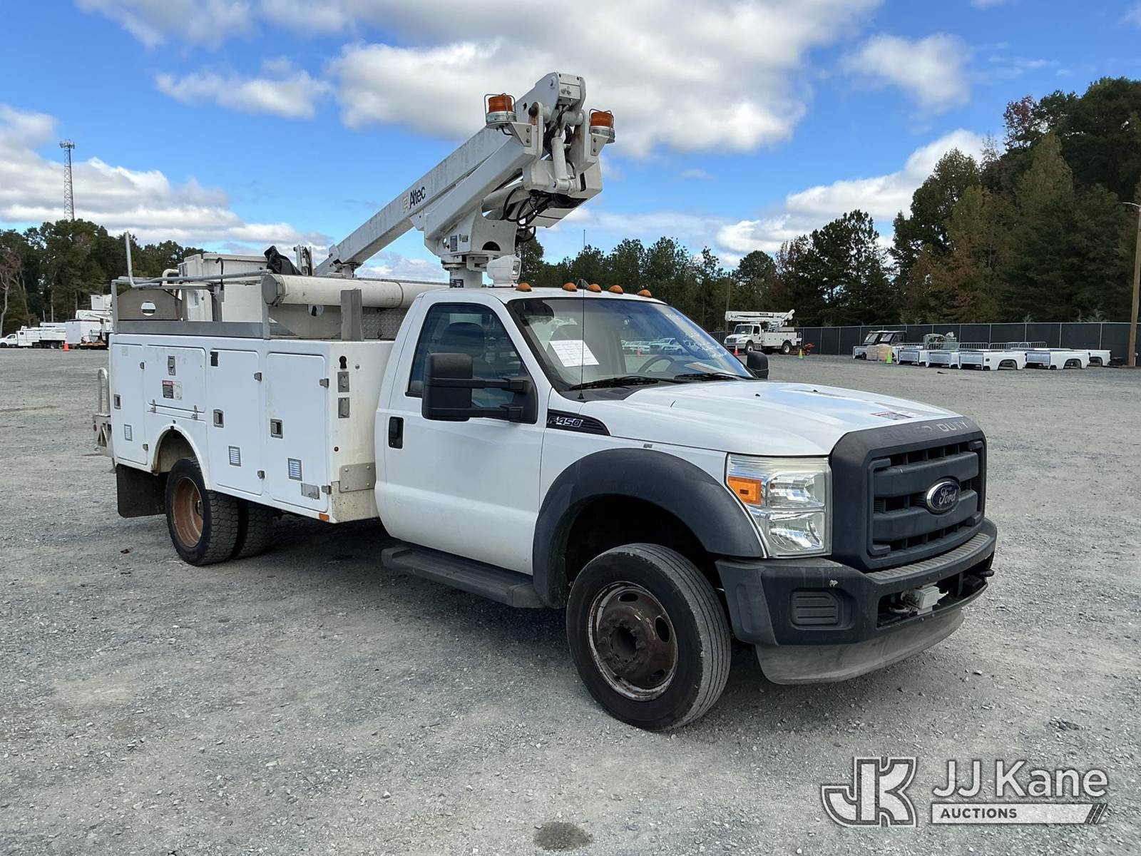 Altec AT200A, 36 ft, Articulating & Telescopic Non-Insulated Bucket Truck s/n 0412BV17135, with single-man bucket, mounted behind cab on 2012 Ford F450 Service Truck, 10-cyl gas, Auto, A/C, with Onan pony motor , (158,990 miles) (Runs, Moves ) (Jump To Start, Upper Condition Unknown, Pony Motor Not Working, Body Damage Exhaust Leak) (Remote In Key Trailer) This is a Titled Item NOTE: This unit is being sold AS IS/WHERE IS via Timed Auction and is located in China Grove, NC. Inspection & preview days for this unit are the 2 business days prior to the first day of items closing for this auction, item is located at 820 E NC Hwy 152 China Grove, NC 28023 and hours of operations are 8a-4p. For pre-sale questions, please contact Office Staff @ (704) 674-1113. (Manuals provided in cab) (Buyer is responsible for removal. Assistance by consignor or JJ Kane Auctioneers is not assured.)