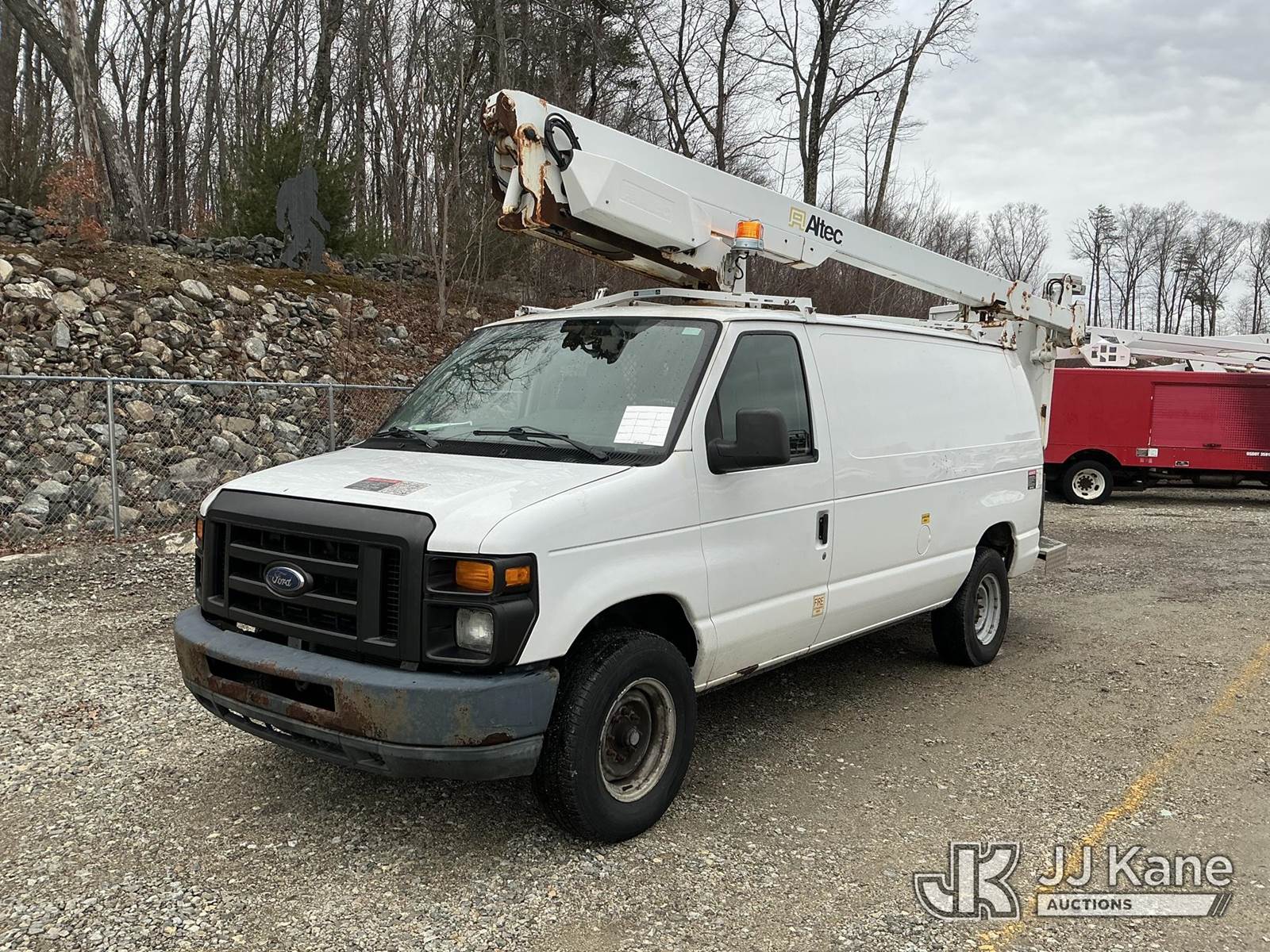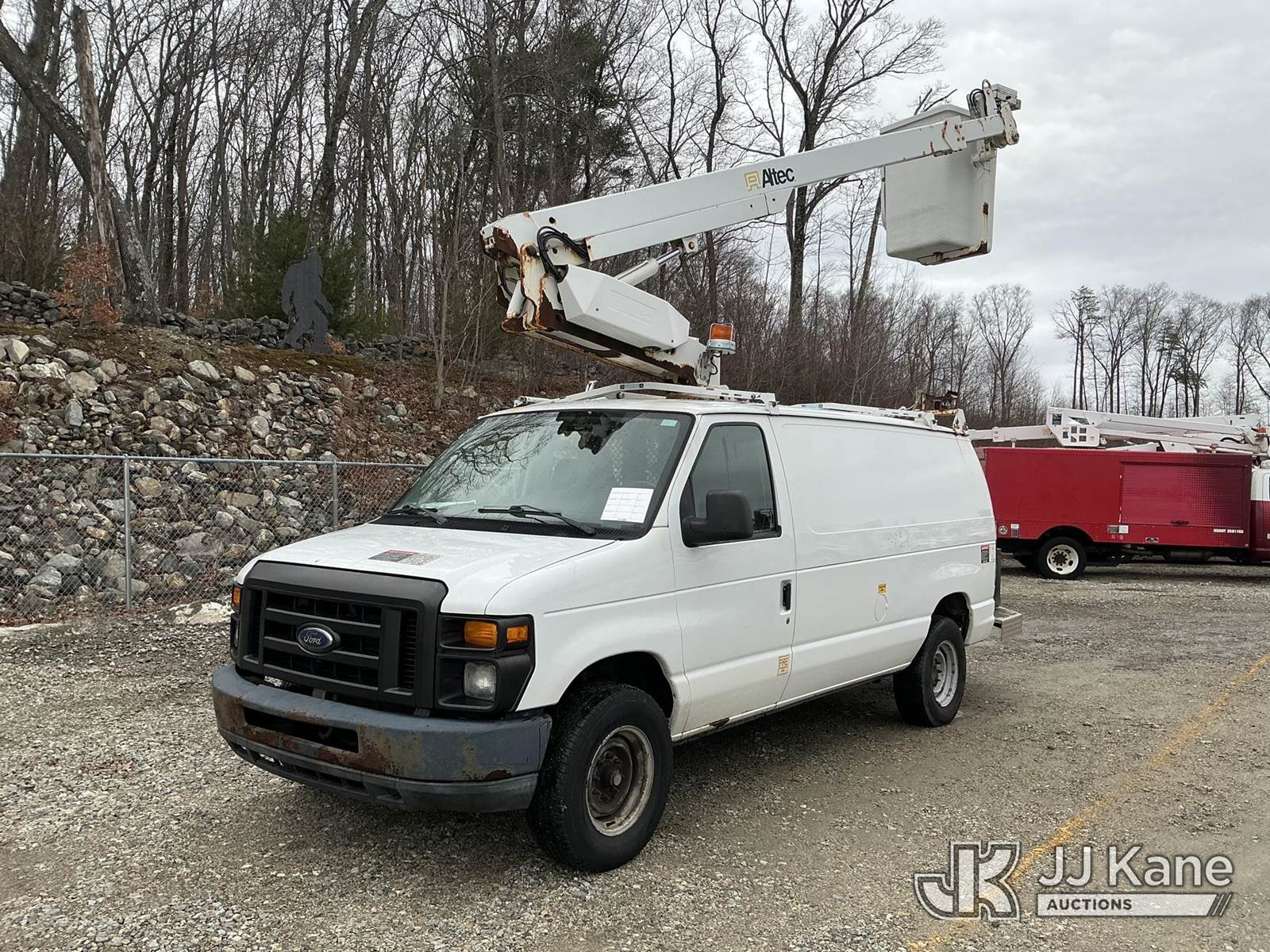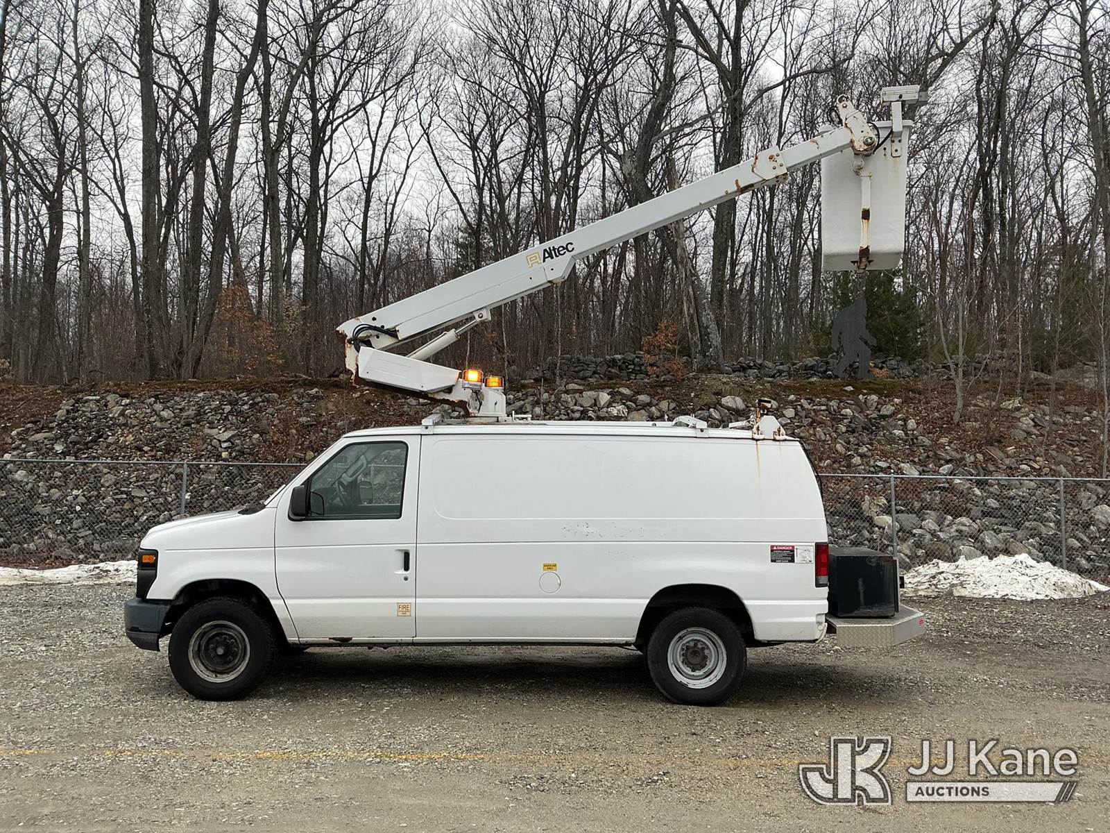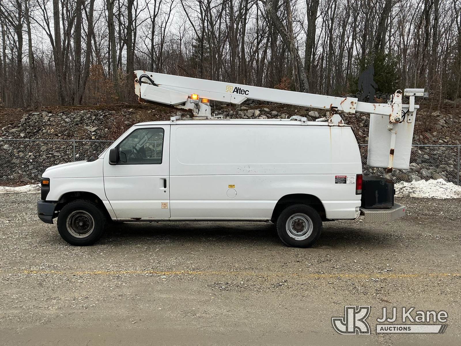 Altec AT200AV, 35 ft, Telescopic Non-Insulated Bucket Van s/n 0513CS2630, with single-man bucket, mounted behind cab on 2012 Ford E350 Cargo Van, 5.4L V8 RWD, gas, 4-Speed Automatic, A/C, (98,657 miles) (Runs, Moves & Upper Operates) This is a Titled Item NOTE: This unit is being sold AS IS/WHERE IS via Timed Auction and is located in Shrewsbury, MA. (Manuals provided in cab) (Buyer is responsible for removal. Assistance by consignor or JJ Kane Auctions is not assured.)