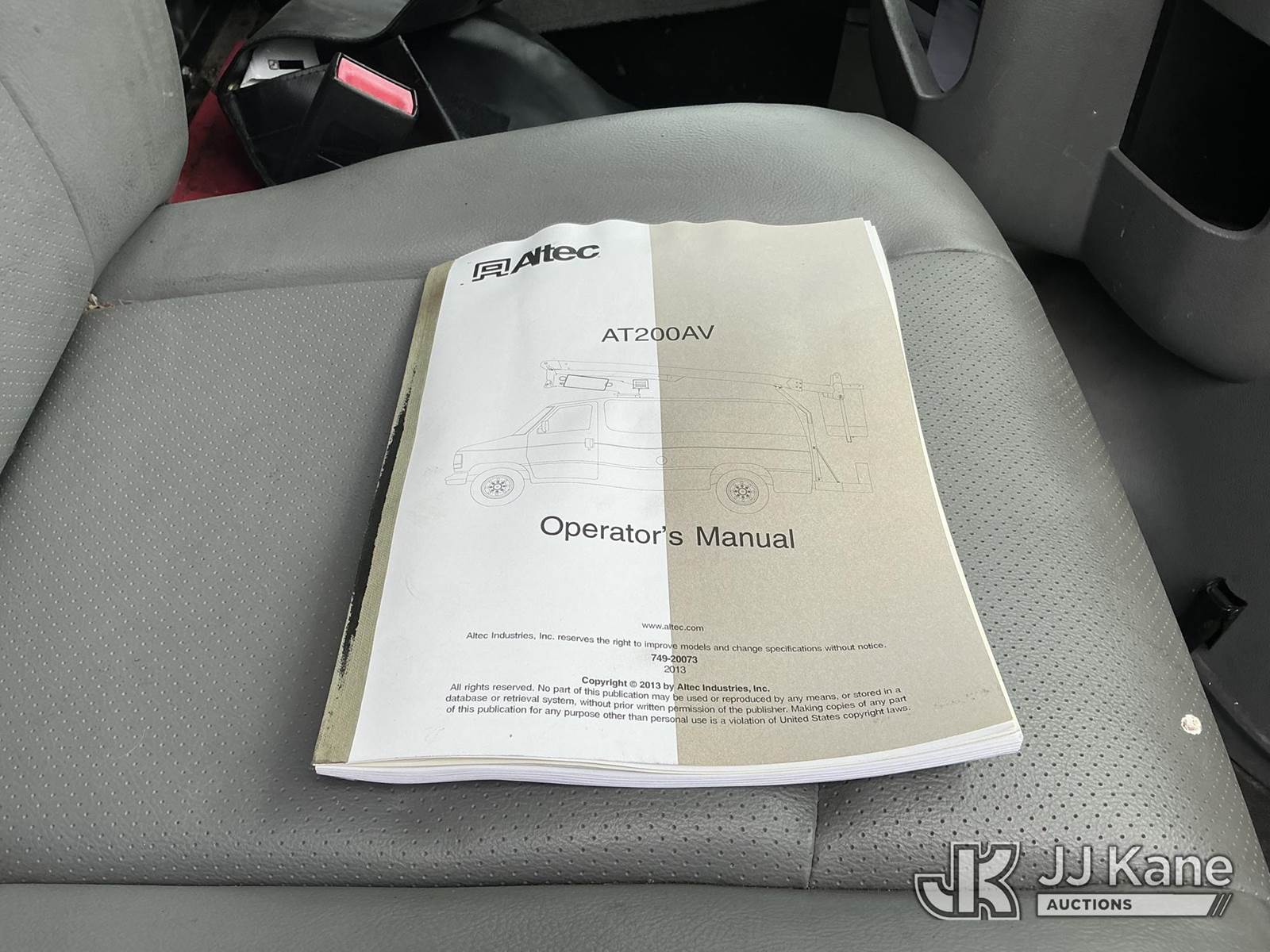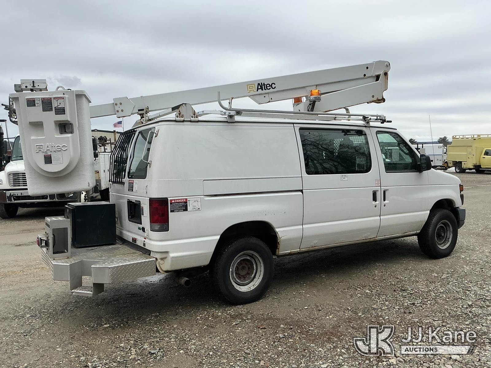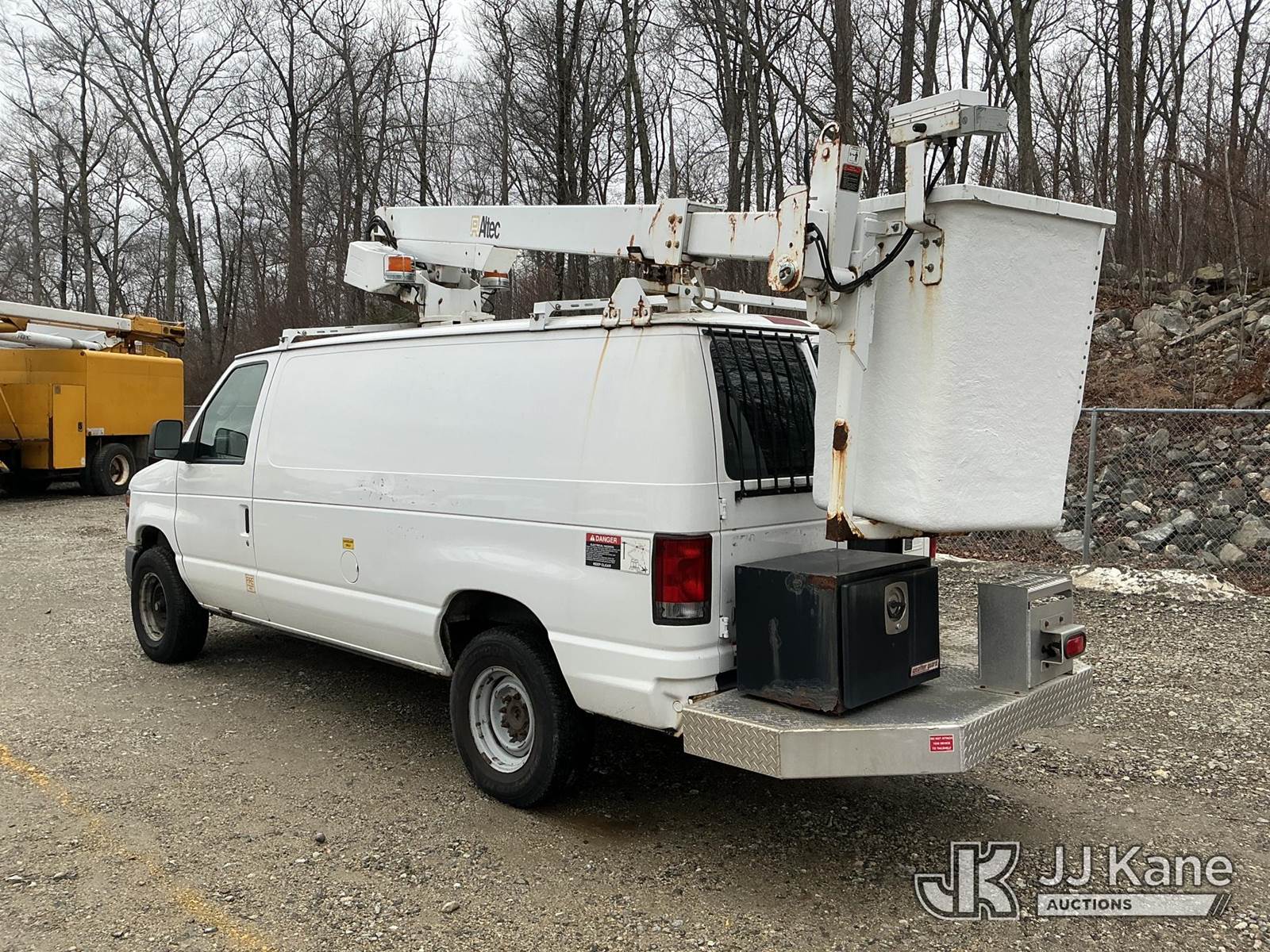 Altec AT200AV, 35 ft, Telescopic Non-Insulated Bucket Van s/n 0513CS2630, with single-man bucket, mounted behind cab on 2012 Ford E350 Cargo Van, 5.4L V8 RWD, gas, 4-Speed Automatic, A/C, (98,657 miles) (Runs, Moves & Upper Operates) This is a Titled Item NOTE: This unit is being sold AS IS/WHERE IS via Timed Auction and is located in Shrewsbury, MA. (Manuals provided in cab) (Buyer is responsible for removal. Assistance by consignor or JJ Kane Auctions is not assured.)