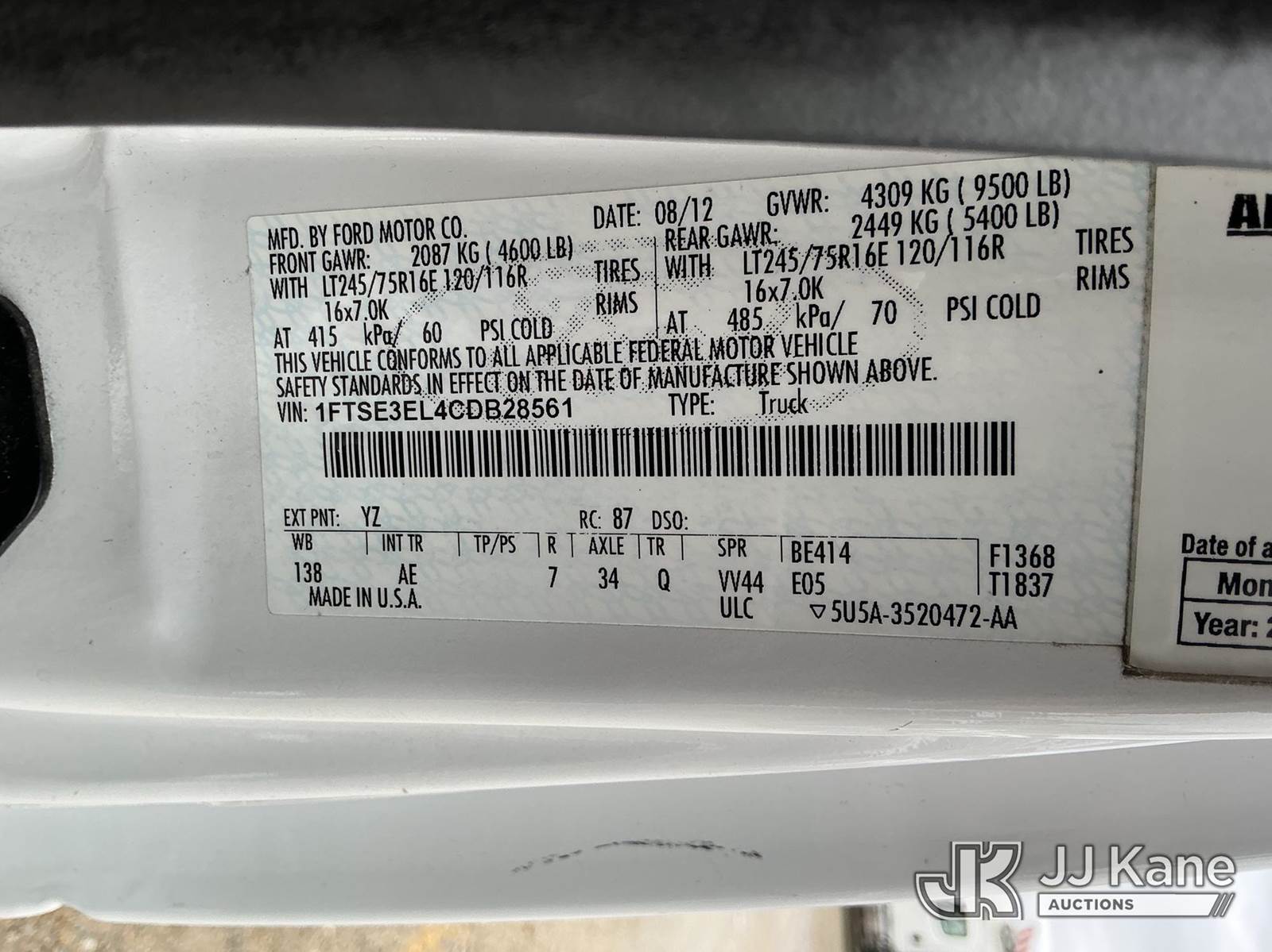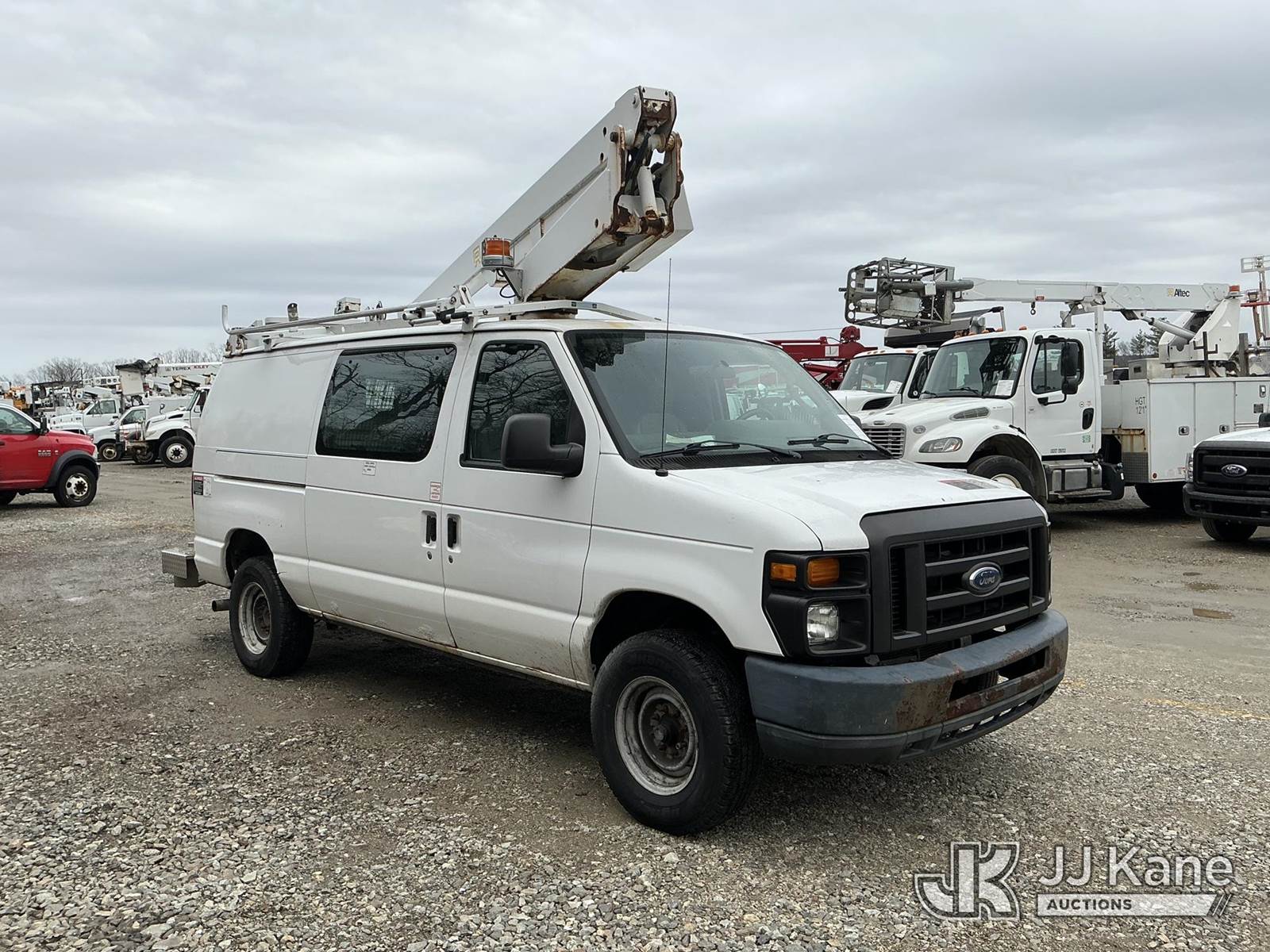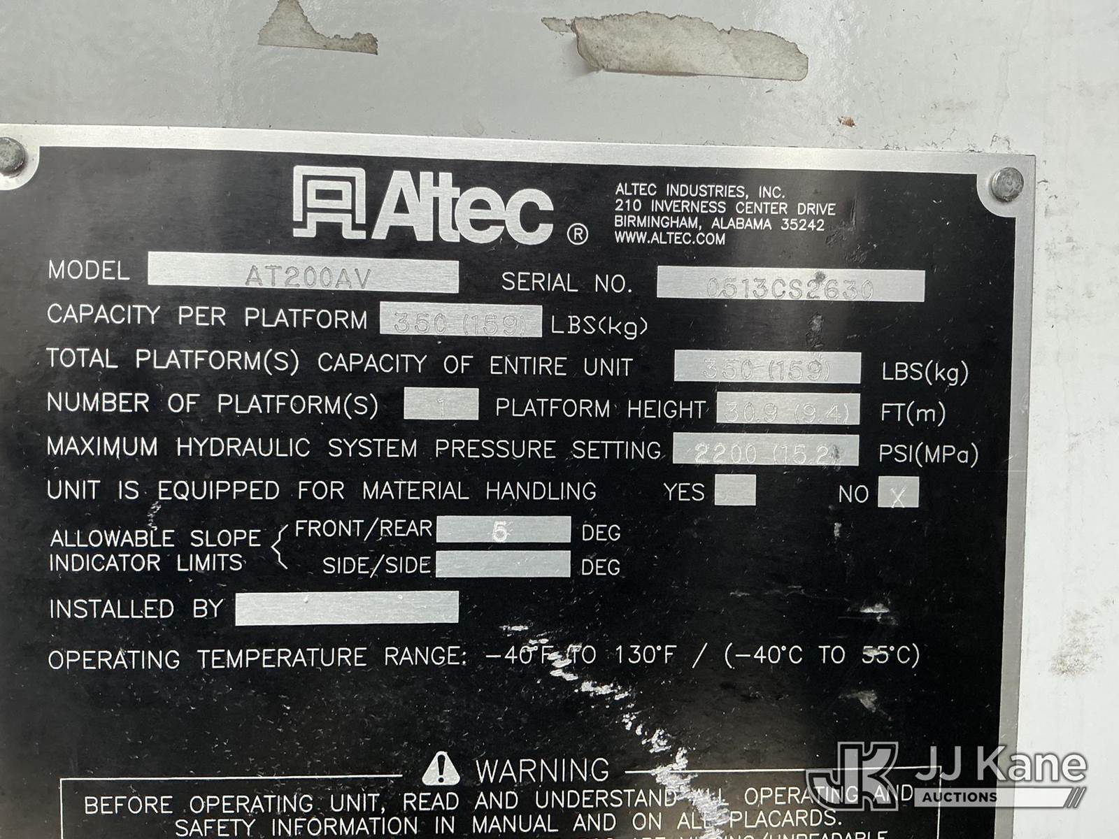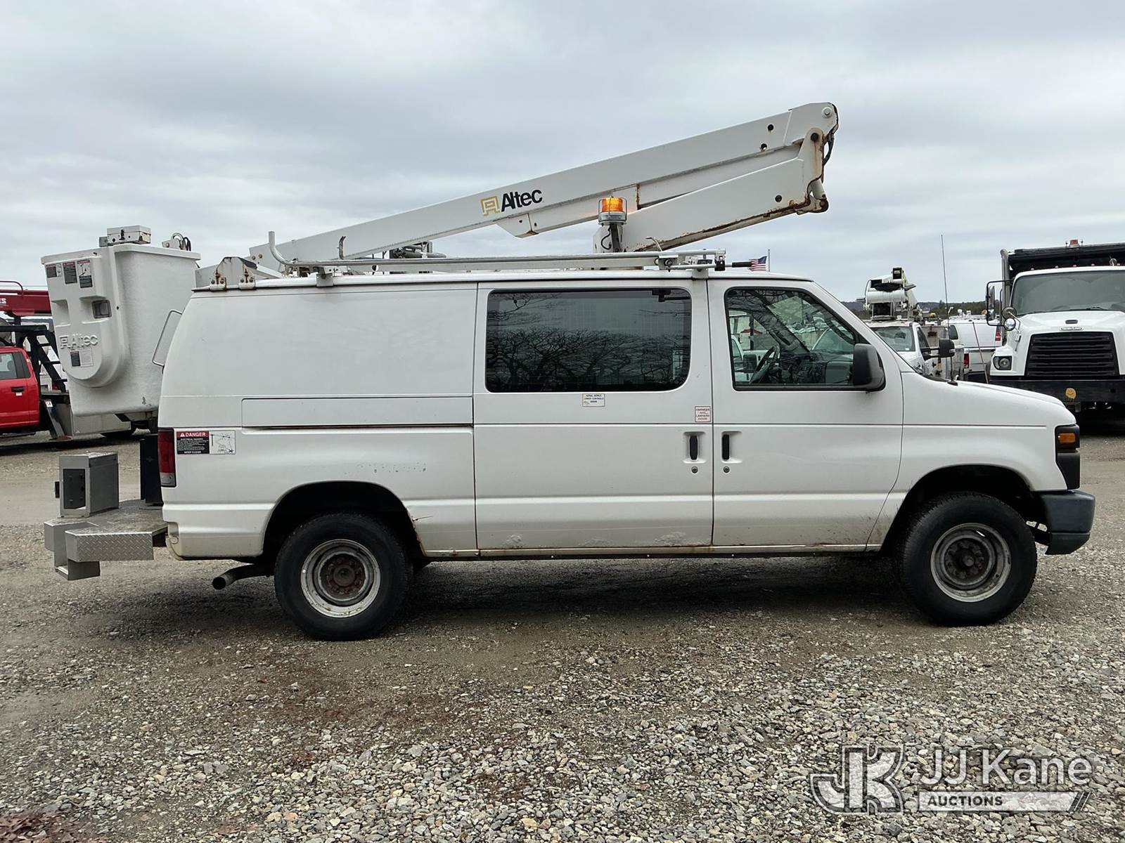 Altec AT200AV, 35 ft, Telescopic Non-Insulated Bucket Van s/n 0513CS2630, with single-man bucket, mounted behind cab on 2012 Ford E350 Cargo Van, 5.4L V8 RWD, gas, 4-Speed Automatic, A/C, (98,657 miles) (Runs, Moves & Upper Operates) This is a Titled Item NOTE: This unit is being sold AS IS/WHERE IS via Timed Auction and is located in Shrewsbury, MA. (Manuals provided in cab) (Buyer is responsible for removal. Assistance by consignor or JJ Kane Auctions is not assured.)