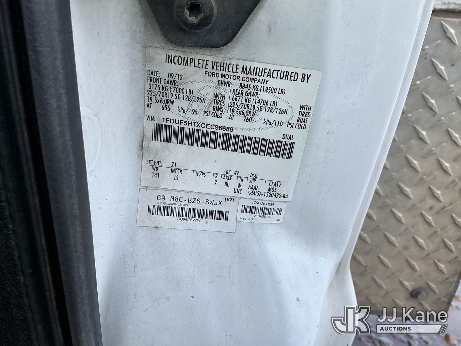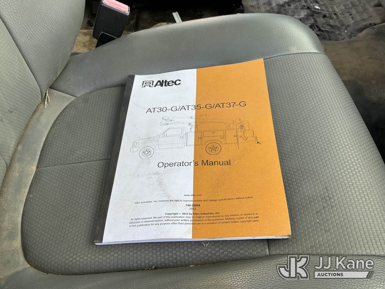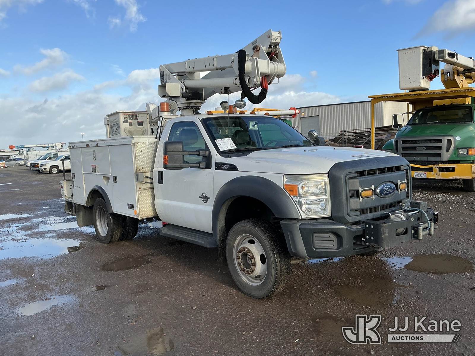 Altec AT37G, 42 ft, Articulating & Telescopic Bucket s/n 1012DE14890, with single-man cab, mounted behind cab on 2012 Ford F-550 Regular Cab DRW 4WD Service Truck, 6.7L V8 OHV 16V DIESEL Auto, A/C, (133,151 miles) (Runs & Moves) (PTO Does Not Engage-Upper Conditions Unknown, Check Engine Light On, Humming Noise When Accelerating) (Bidding Restricted to Licensed Vehicle Dealers Only), May be subject to ARB Regulations This is a Titled Item NOTE: This unit is being sold AS IS/WHERE IS via Timed Auction and is located in Dixon, CA. Inspection & preview days for this unit are the 2 business days prior to the first day of items closing for this auction, item is located at 8668 Sparling Ln Dixon, CA 95620 and hours of operations are 8a-4p. For pre-sale questions, please contact JJ Kane Staff at (707) 678-8060 (dixon@jjkane.com). Dealer License Number 45696. (Buyer is responsible for removal. Assistance by consignor or JJ Kane Auctions is not assured.)