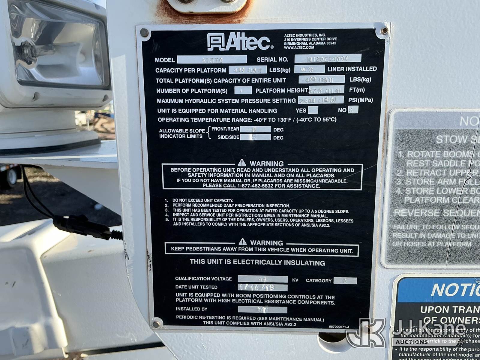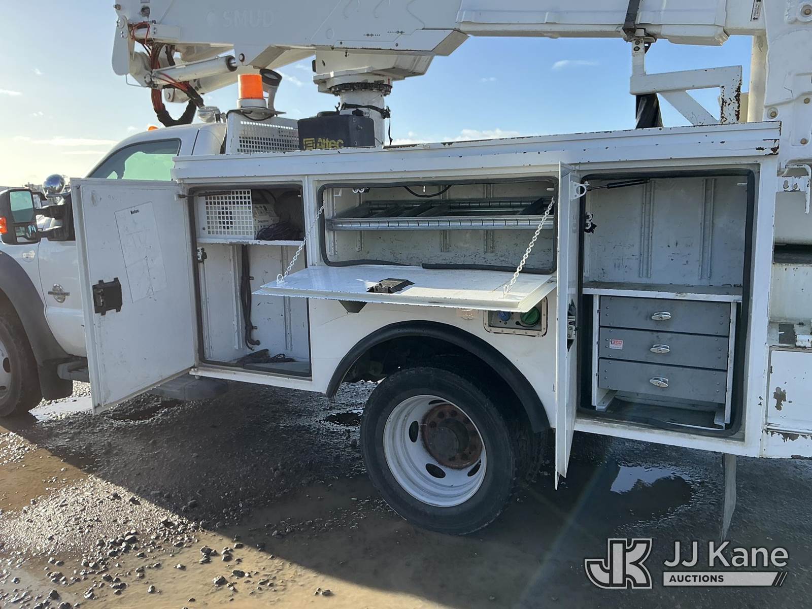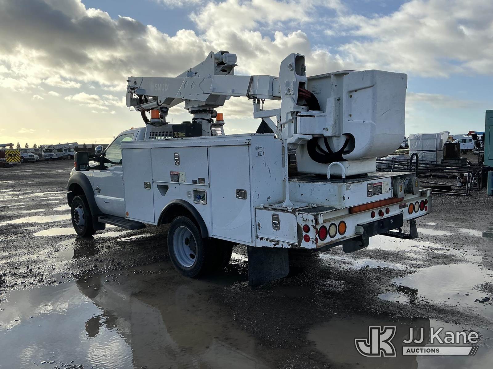 Altec AT37G, 42 ft, Articulating & Telescopic Bucket s/n 1012DE14890, with single-man cab, mounted behind cab on 2012 Ford F-550 Regular Cab DRW 4WD Service Truck, 6.7L V8 OHV 16V DIESEL Auto, A/C, (133,151 miles) (Runs & Moves) (PTO Does Not Engage-Upper Conditions Unknown, Check Engine Light On, Humming Noise When Accelerating) (Bidding Restricted to Licensed Vehicle Dealers Only), May be subject to ARB Regulations This is a Titled Item NOTE: This unit is being sold AS IS/WHERE IS via Timed Auction and is located in Dixon, CA. Inspection & preview days for this unit are the 2 business days prior to the first day of items closing for this auction, item is located at 8668 Sparling Ln Dixon, CA 95620 and hours of operations are 8a-4p. For pre-sale questions, please contact JJ Kane Staff at (707) 678-8060 (dixon@jjkane.com). Dealer License Number 45696. (Buyer is responsible for removal. Assistance by consignor or JJ Kane Auctions is not assured.)