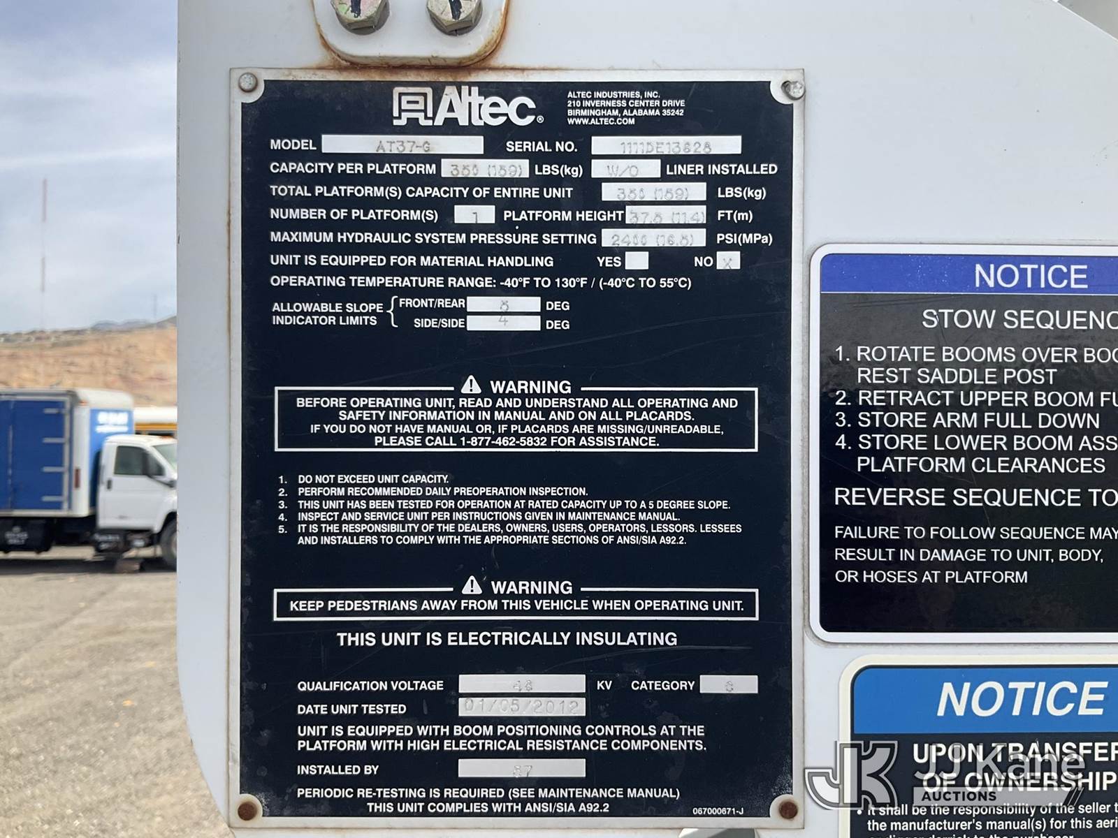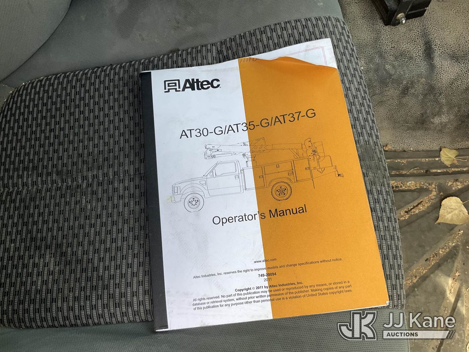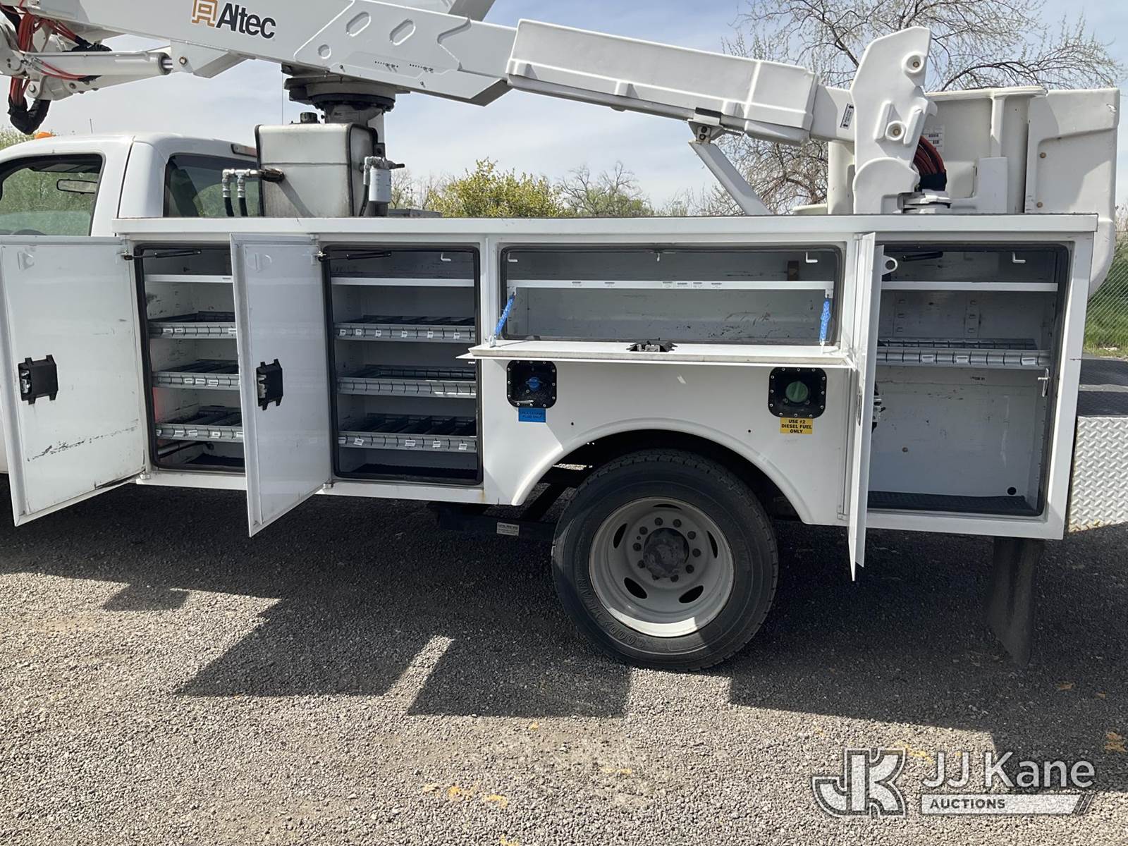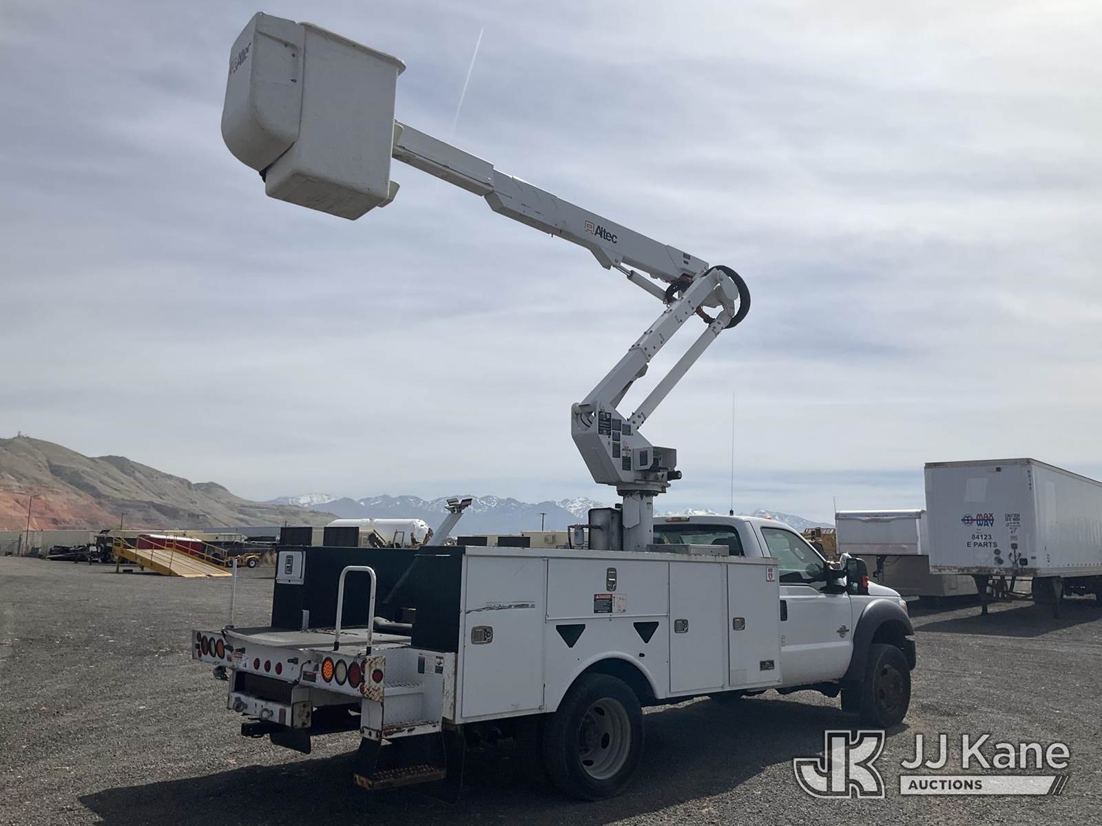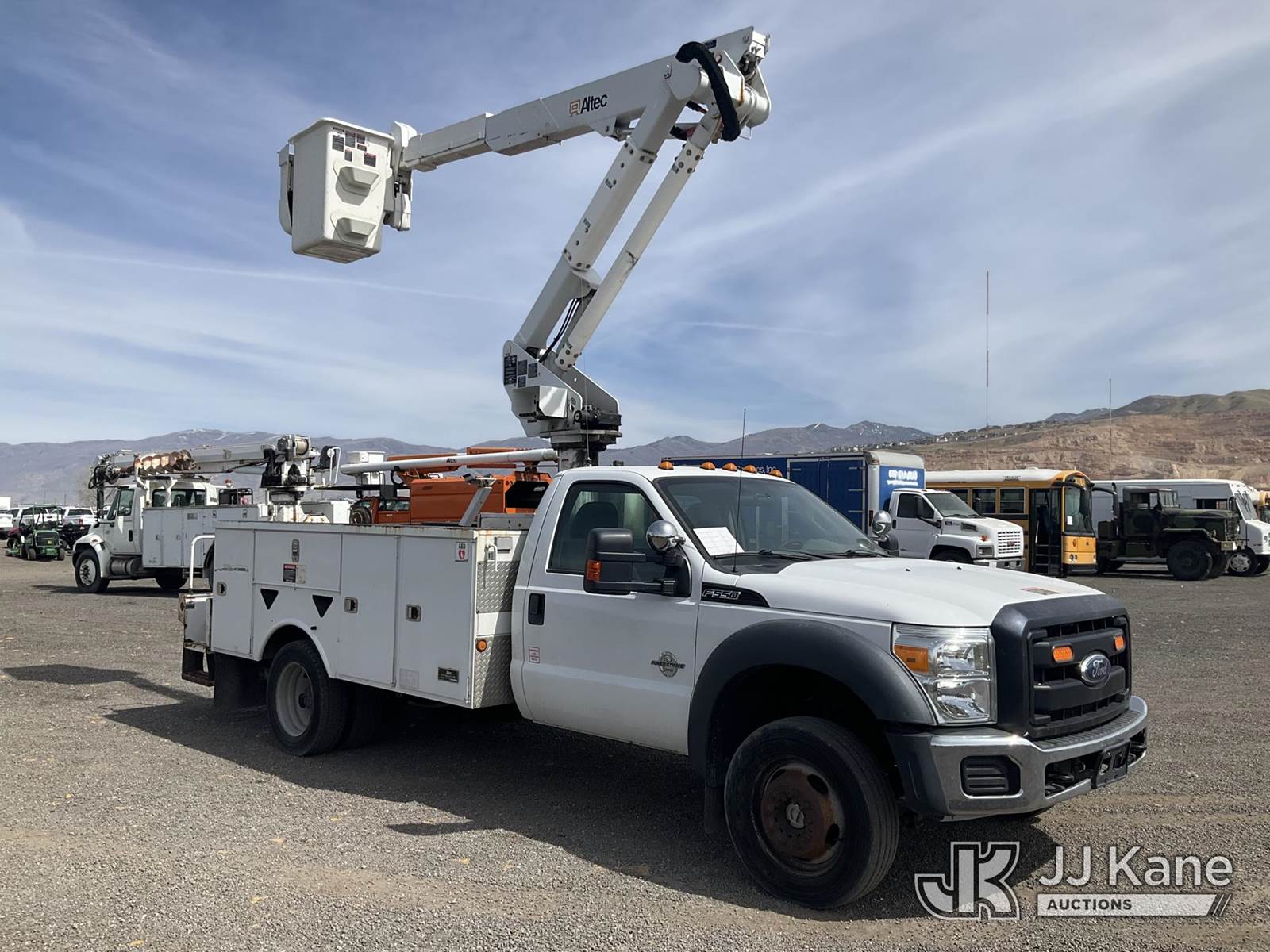Altec AT37G, 42 ft, Articulating & Telescopic Bucket Truck s/n 1111DE13628, with single man bucket, mounted behind cab on 2012 Ford F550 4x4 Service Truck, 6.7L diesel, Auto, A/C, (115,509 miles) (Runs, Moves & Upper Operates) (Check Engine Light On ) This is a Titled Item NOTE: This unit is being sold AS IS/WHERE IS via Timed Auction and is located in Salt Lake City, UT. Inspection & preview days for this unit are the 2 business days prior to the first day of items closing for this auction, item is located at 2353 N Redwood Rd Salt Lake City, UT 84116 and hours of operations are 8a-4p. Titles executed exactly as bidder registered. Ensure your name and/or business name and address in JJ Kane and/or ProxiBid is correct before bidding. For pre-sale questions, please contact Office Staff @ (801) 519-0123. (Manuals provided in cab) (Buyer is responsible for removal. Assistance by consignor or JJ Kane Auctions is not assured.)