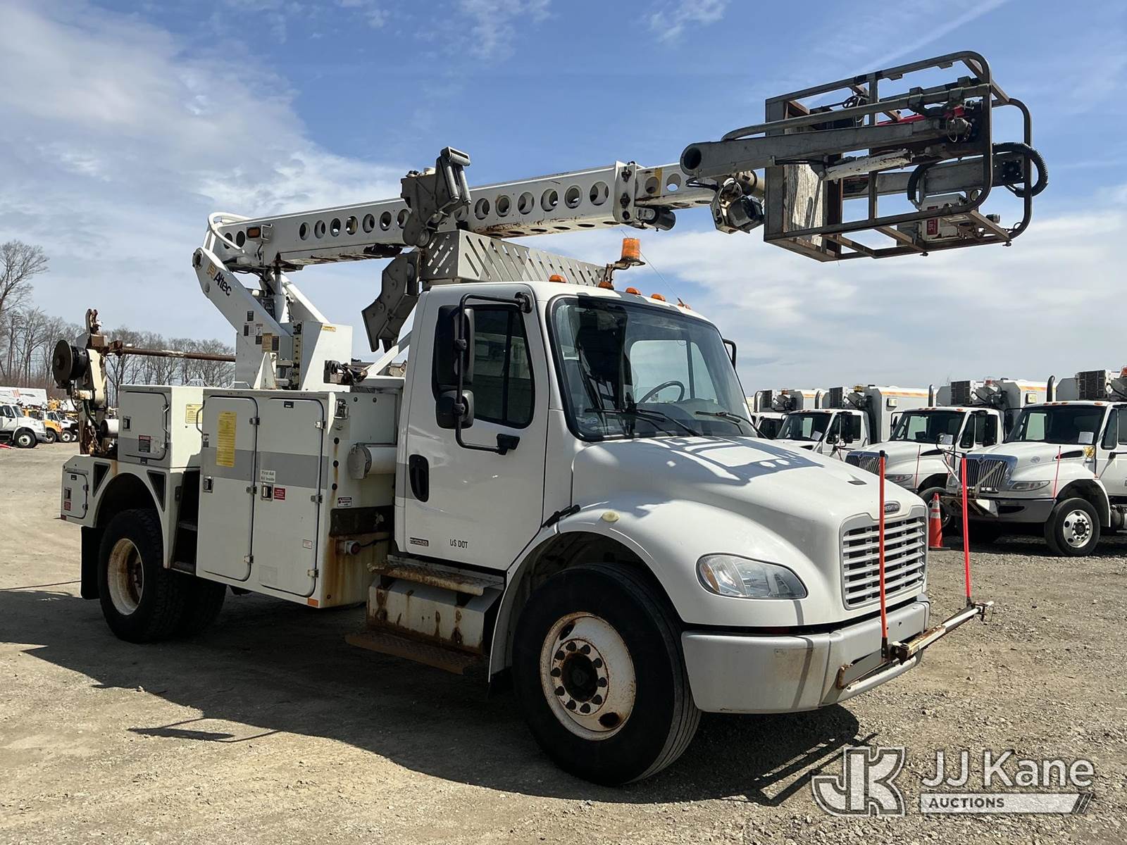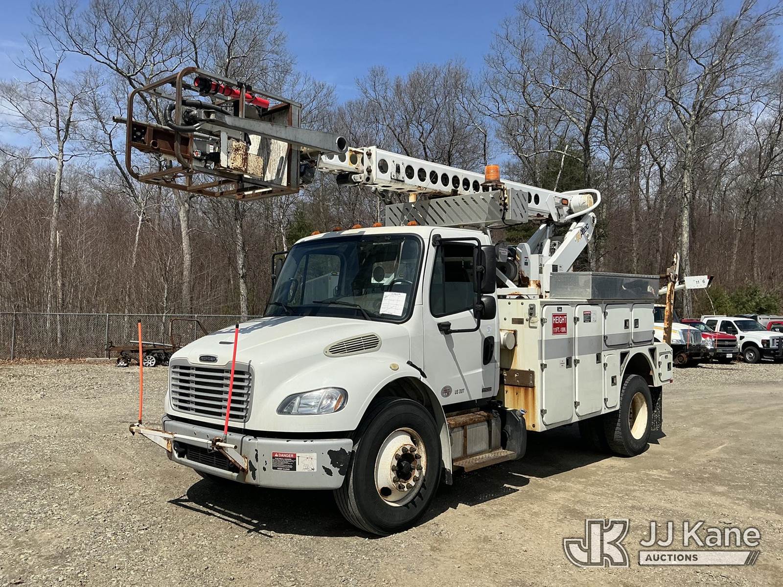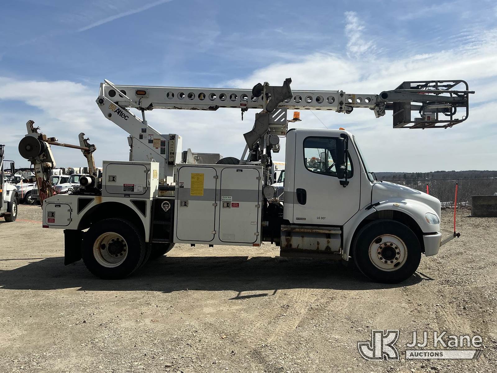 Altec AT40C, 39 ft, Telescopic Cable Placing Bucket Truck s/n 0212EE1830, with single-man basket, rear mounted on 2012 Freightliner M2 106 Utility Truck, Cummins 6.7L 4X2, diesel, Auto, A/C, with hyd reel carrier, (80,752 miles) (Runs, Moves & Upper Operates) (No Response From Reel Carrier Controls) (The manufacturer has notified JJ Kane that this equipment is subject to an open recall. CSN 571 Chassis Air Brake Hose Replacement The equipment should not be operated until this is addressed. Buyer is responsible for reviewing the recall notice and contacting the manufacturer to schedule the recommended corrective actions. Associated costs may be covered by the manufacturer in some cases.) (Reads 13,217 hours) This is a Titled Item NOTE: This unit is being sold AS IS/WHERE IS via Timed Auction and is located in Shrewsbury, MA. Inspection & preview days for this unit are the 2 business days prior to the first day of items closing for this auction, item is located at 11 Fortune Blvd Shrewsbury, MA 01545 and hours of operations are 8a-4p. For pre-sale questions, please contact Rob Gifford @ (508) 864-4126. (Manuals provided in cab) (Buyer is responsible for removal. Assistance by consignor or JJ Kane Auctions is not assured.)