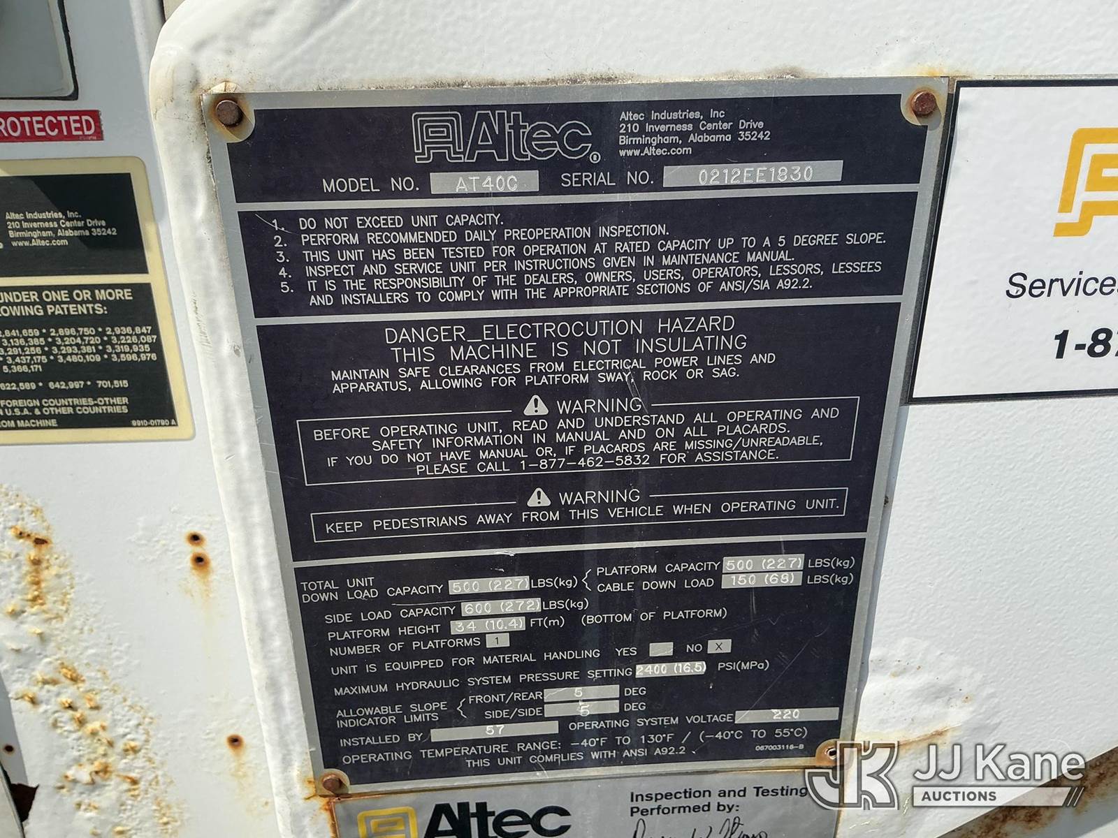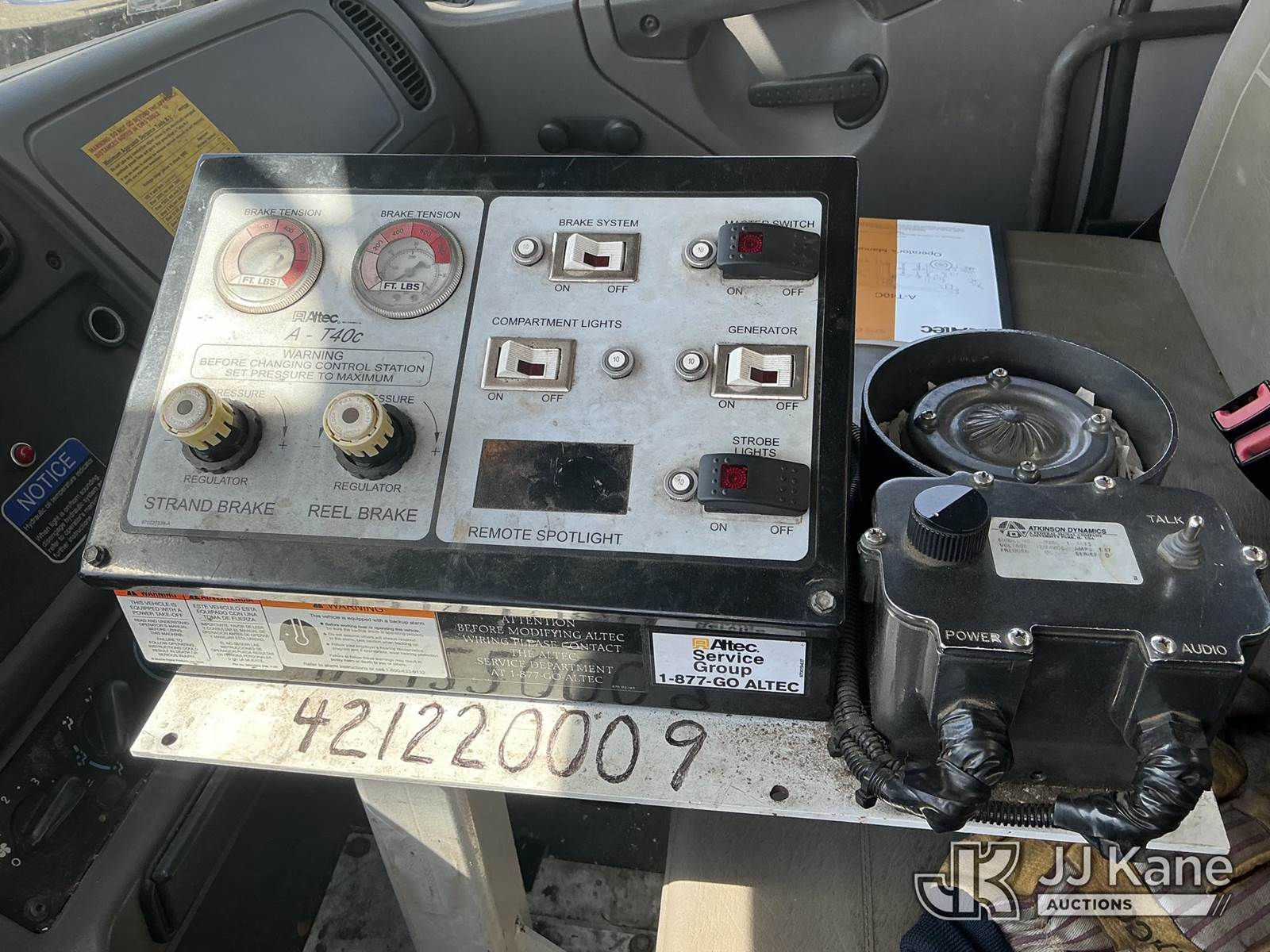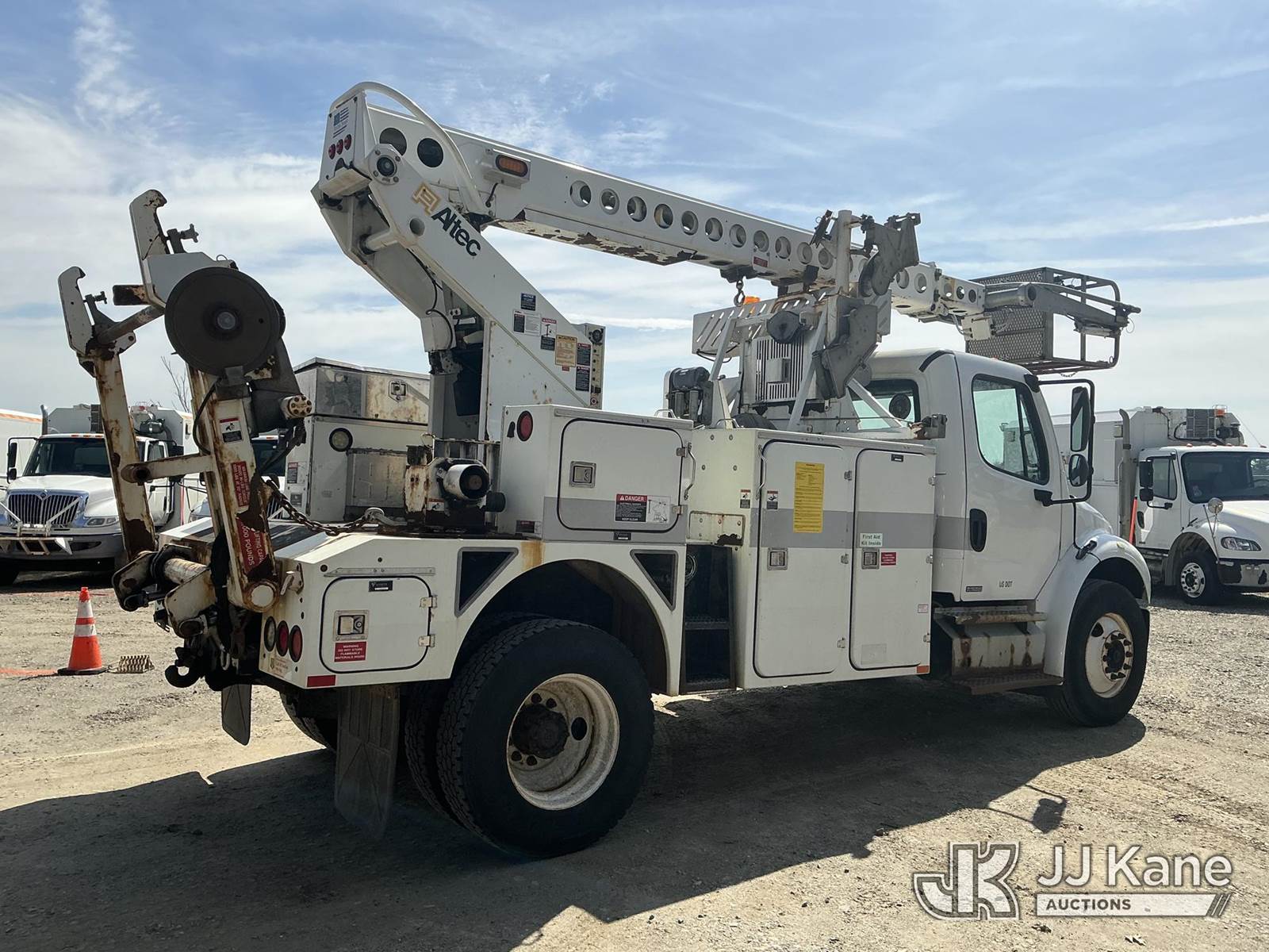 Altec AT40C, 39 ft, Telescopic Cable Placing Bucket Truck s/n 0212EE1830, with single-man basket, rear mounted on 2012 Freightliner M2 106 Utility Truck, Cummins 6.7L 4X2, diesel, Auto, A/C, with hyd reel carrier, (80,752 miles) (Runs, Moves & Upper Operates) (No Response From Reel Carrier Controls) (The manufacturer has notified JJ Kane that this equipment is subject to an open recall. CSN 571 Chassis Air Brake Hose Replacement The equipment should not be operated until this is addressed. Buyer is responsible for reviewing the recall notice and contacting the manufacturer to schedule the recommended corrective actions. Associated costs may be covered by the manufacturer in some cases.) (Reads 13,217 hours) This is a Titled Item NOTE: This unit is being sold AS IS/WHERE IS via Timed Auction and is located in Shrewsbury, MA. Inspection & preview days for this unit are the 2 business days prior to the first day of items closing for this auction, item is located at 11 Fortune Blvd Shrewsbury, MA 01545 and hours of operations are 8a-4p. For pre-sale questions, please contact Rob Gifford @ (508) 864-4126. (Manuals provided in cab) (Buyer is responsible for removal. Assistance by consignor or JJ Kane Auctions is not assured.)