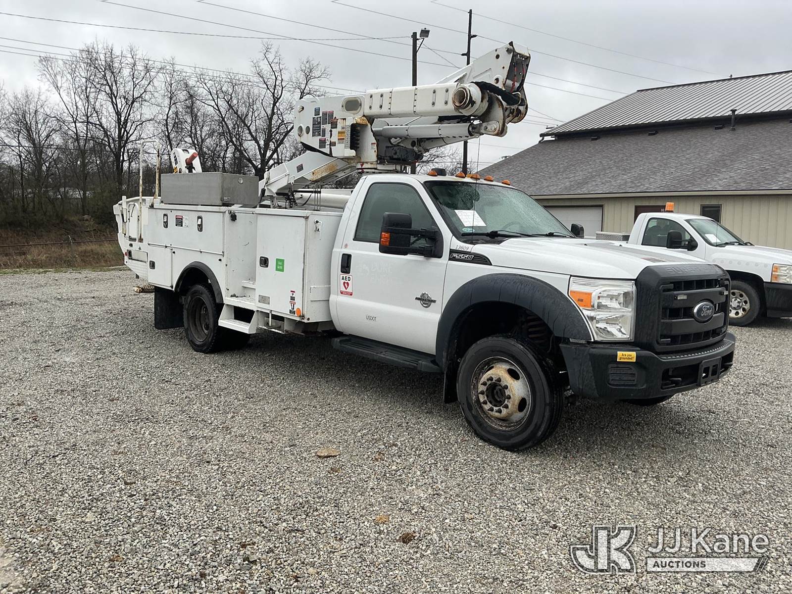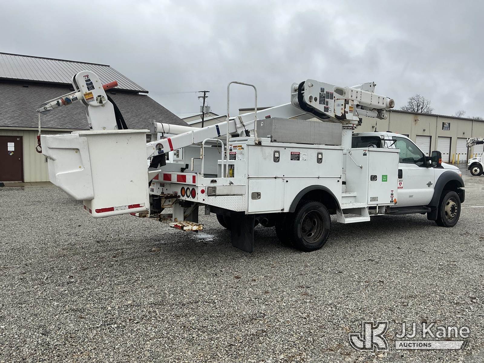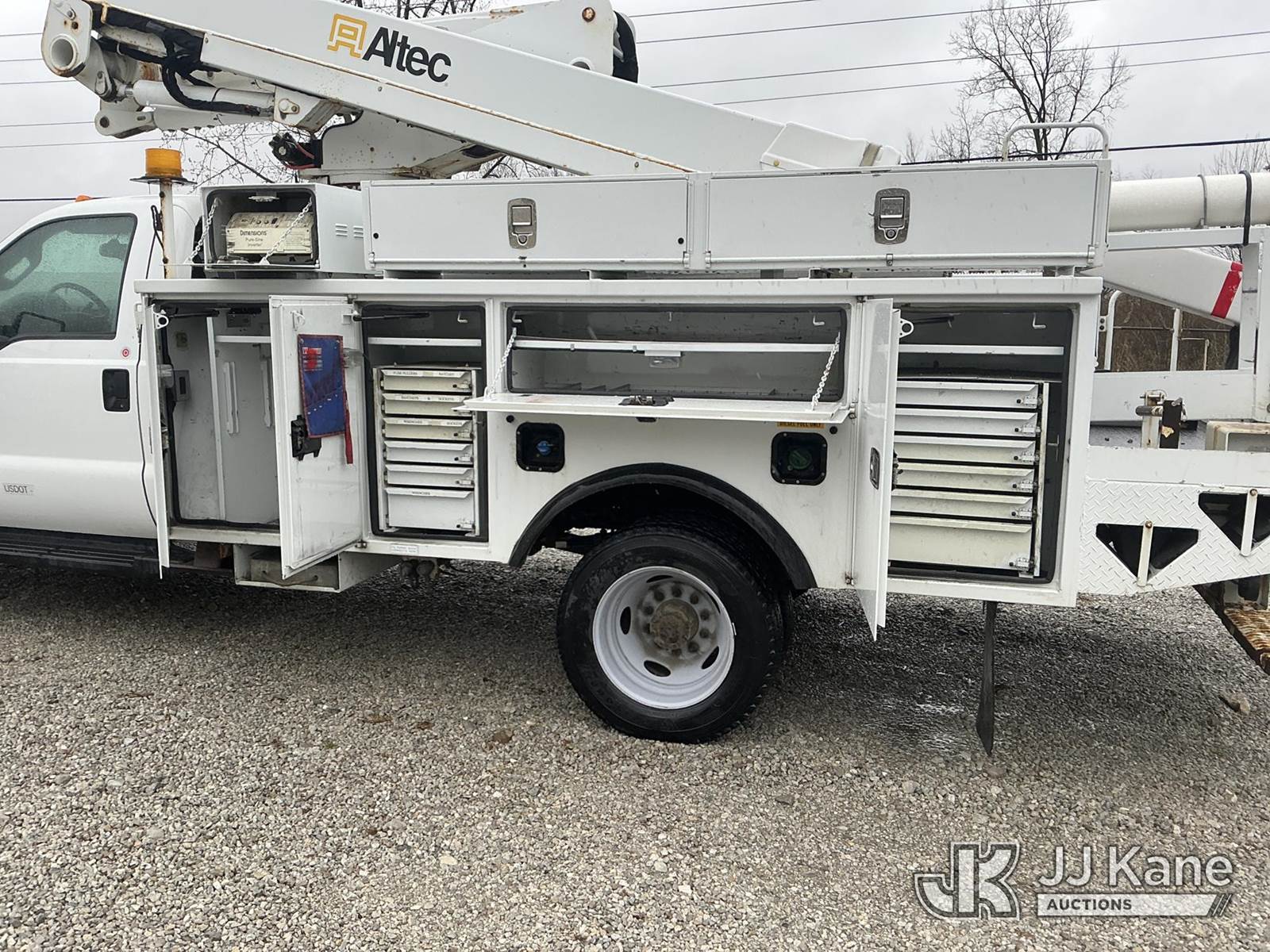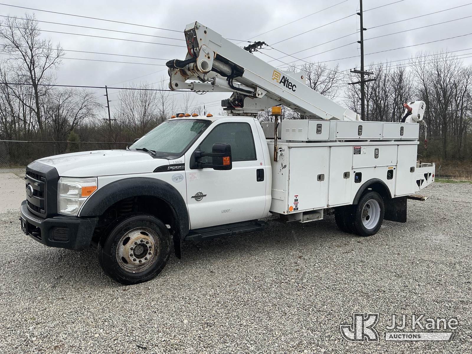 Altec AT40M, 45 ft, Articulating & Telescopic Material Handling Bucket Truck s/n 1112CZ01002, with single-man bucket, mounted behind cab on 2012 Ford F550 4x4 Service Truck, s/n 1FDUF5HT1CEC97861, 6.7L V8 OHV 16V DIESEL Auto, A/C, with inverter, (87,530 miles) (Duke Unit) (Runs & Moves) (Upper Condition Unknown) (Check Engine Light On) (Seller States: Inner Boom Caught On Fire During Dielectric Test, Extensive Damage) (Reads 7,364 hours) This is a Titled Item NOTE: This unit is being sold AS IS/WHERE IS via Timed Auction and is located in Fort Wayne, IN. Inspection & preview days for this unit are the 2 business days prior to the first day of items closing for this auction, item is located at 3020 Commercial Rd Fort Wayne, IN 46809 and hours of operations are 8a-4p. For pre-sale questions, please contact Eric Mcintosh @ (260) 205-2483 (Manuals provided in cab) (Buyer is responsible for removal. Assistance by consignor or JJ Kane Auctions is not assured.)