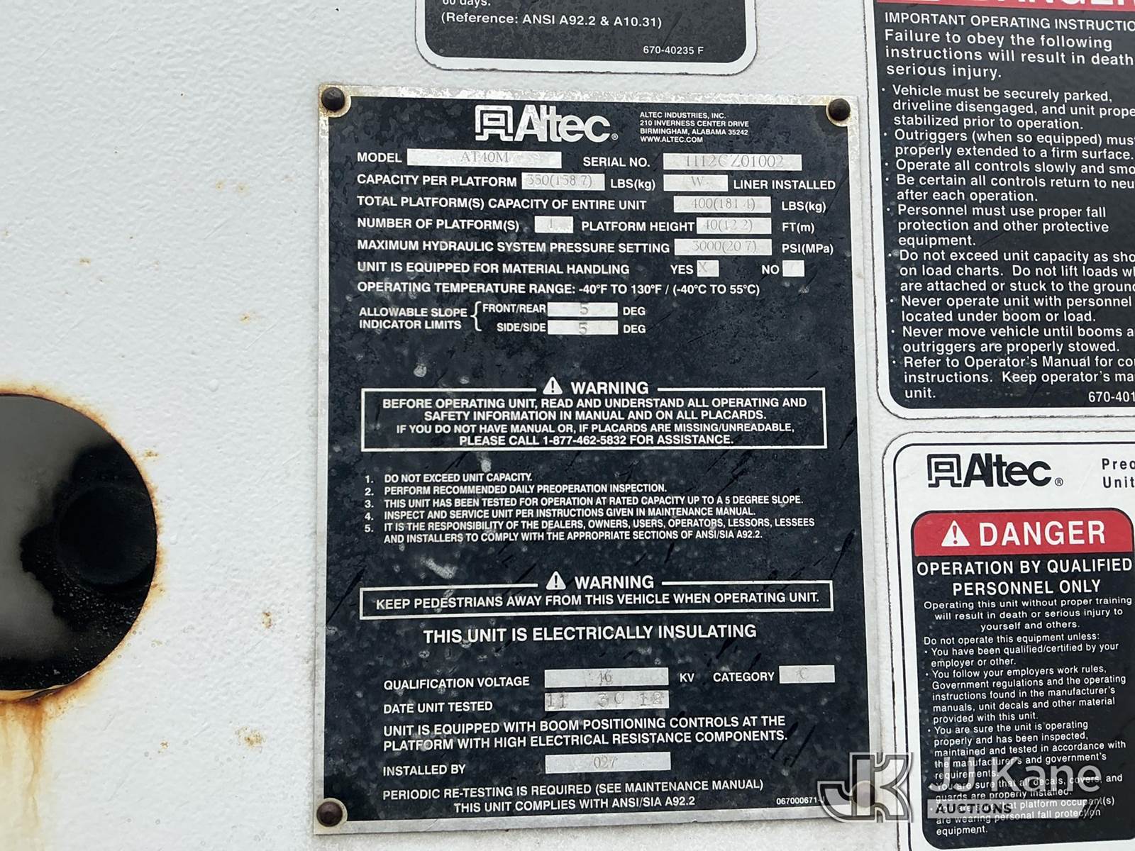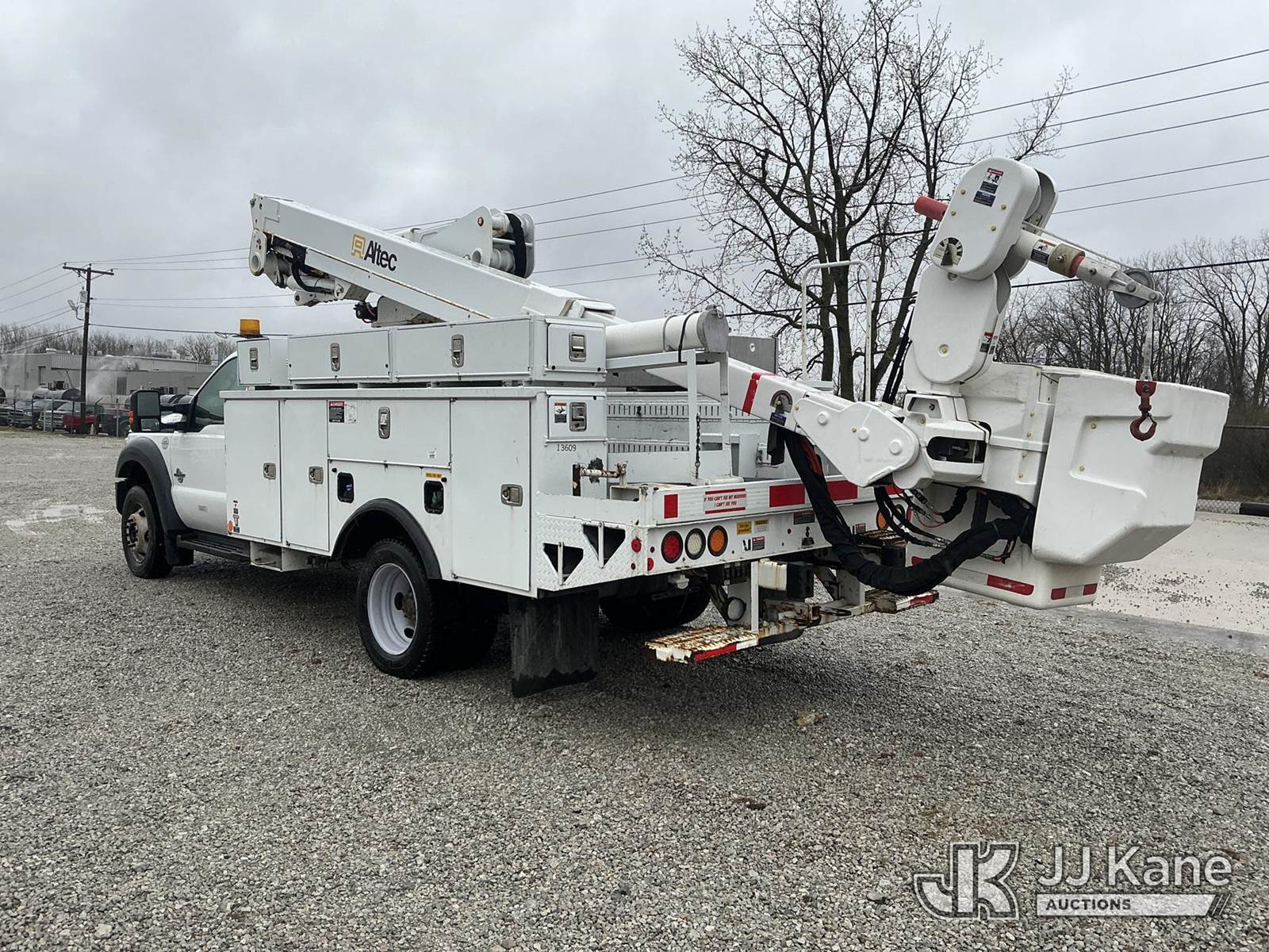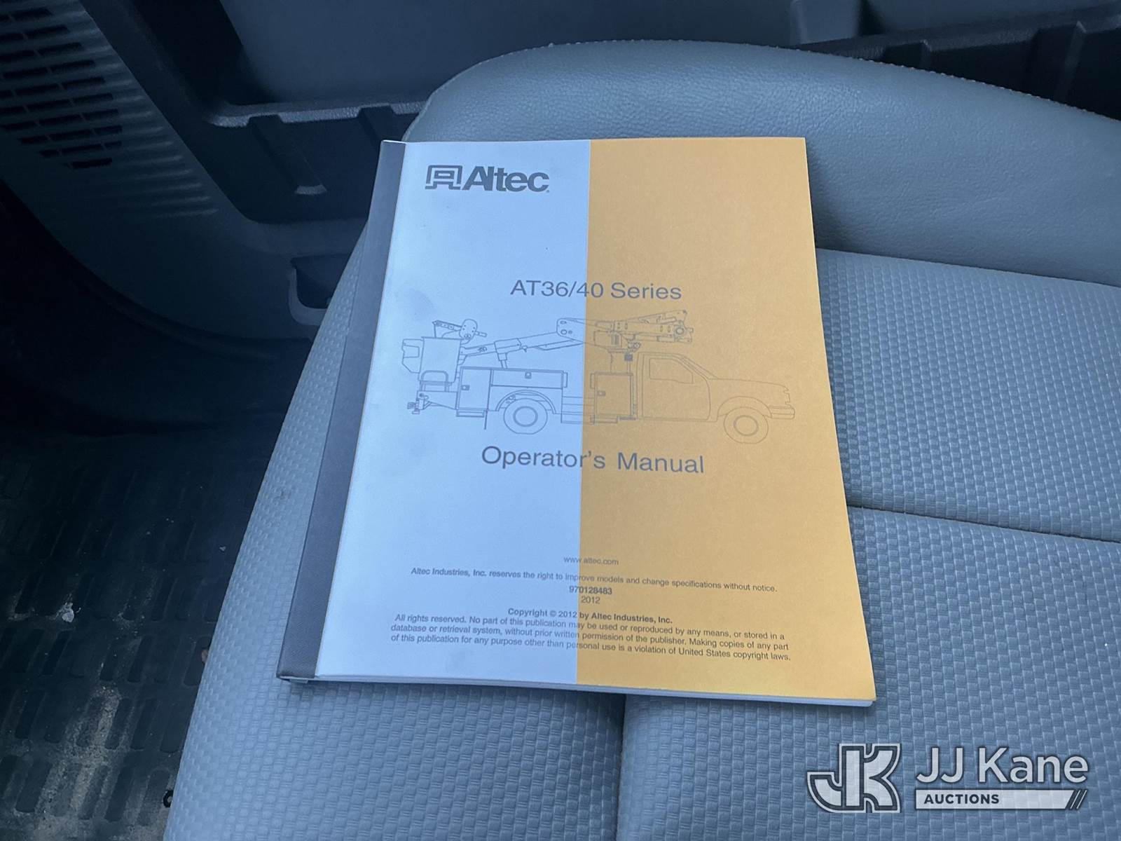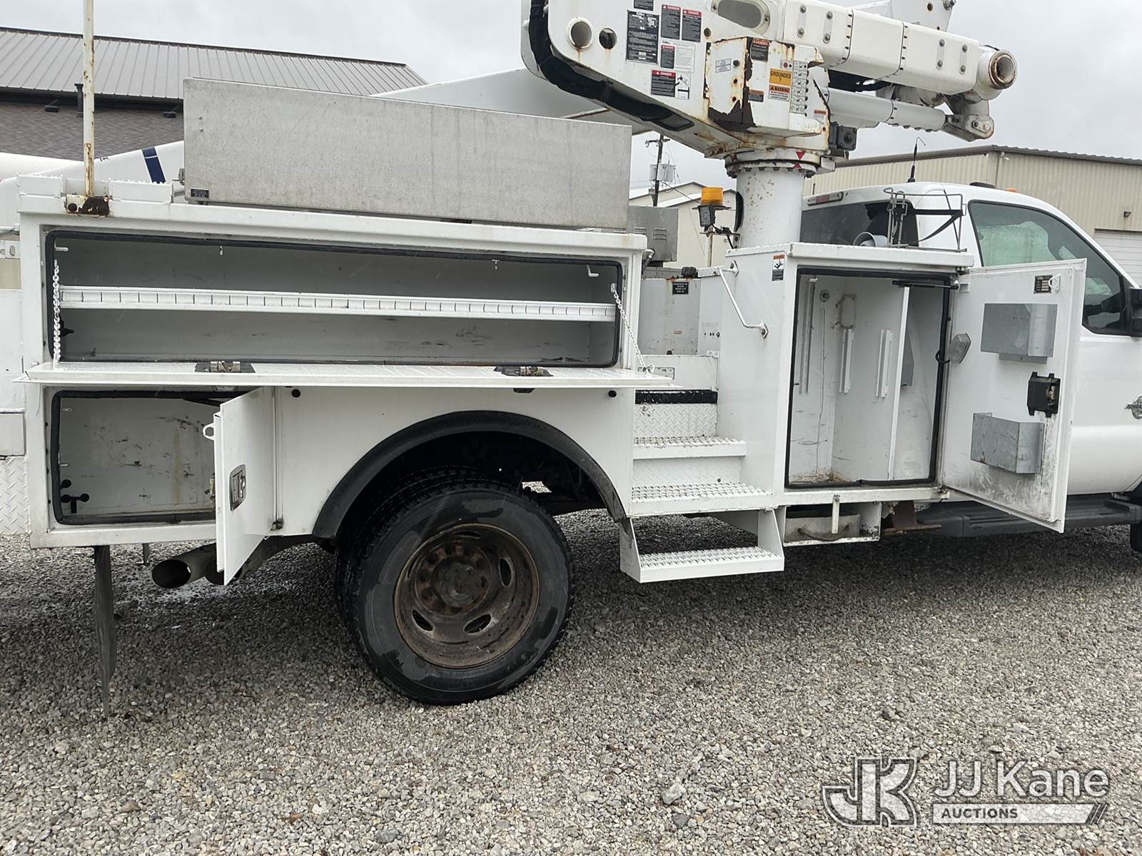 Altec AT40M, 45 ft, Articulating & Telescopic Material Handling Bucket Truck s/n 1112CZ01002, with single-man bucket, mounted behind cab on 2012 Ford F550 4x4 Service Truck, s/n 1FDUF5HT1CEC97861, 6.7L V8 OHV 16V DIESEL Auto, A/C, with inverter, (87,530 miles) (Duke Unit) (Runs & Moves) (Upper Condition Unknown) (Check Engine Light On) (Seller States: Inner Boom Caught On Fire During Dielectric Test, Extensive Damage) (Reads 7,364 hours) This is a Titled Item NOTE: This unit is being sold AS IS/WHERE IS via Timed Auction and is located in Fort Wayne, IN. Inspection & preview days for this unit are the 2 business days prior to the first day of items closing for this auction, item is located at 3020 Commercial Rd Fort Wayne, IN 46809 and hours of operations are 8a-4p. For pre-sale questions, please contact Eric Mcintosh @ (260) 205-2483 (Manuals provided in cab) (Buyer is responsible for removal. Assistance by consignor or JJ Kane Auctions is not assured.)