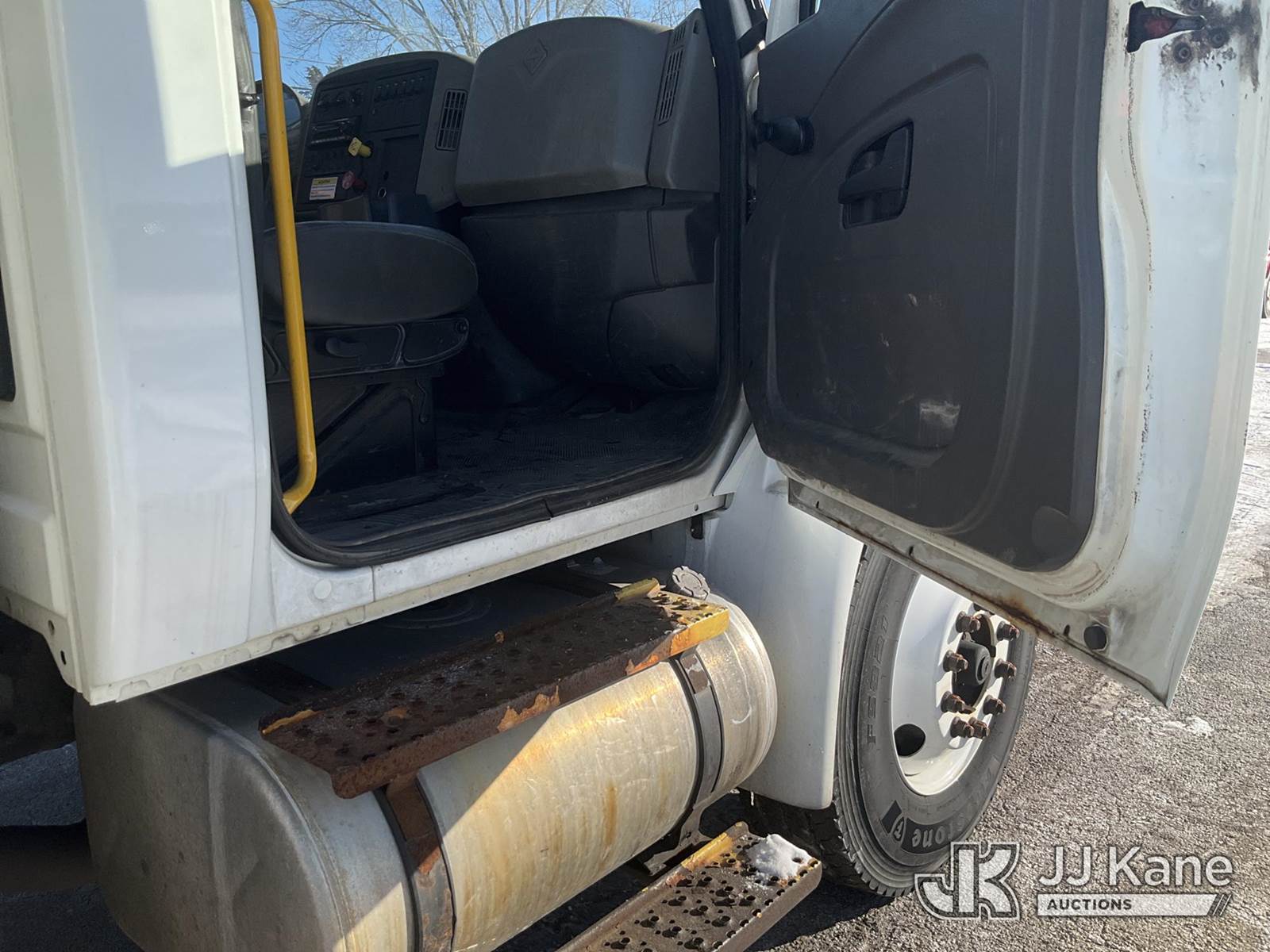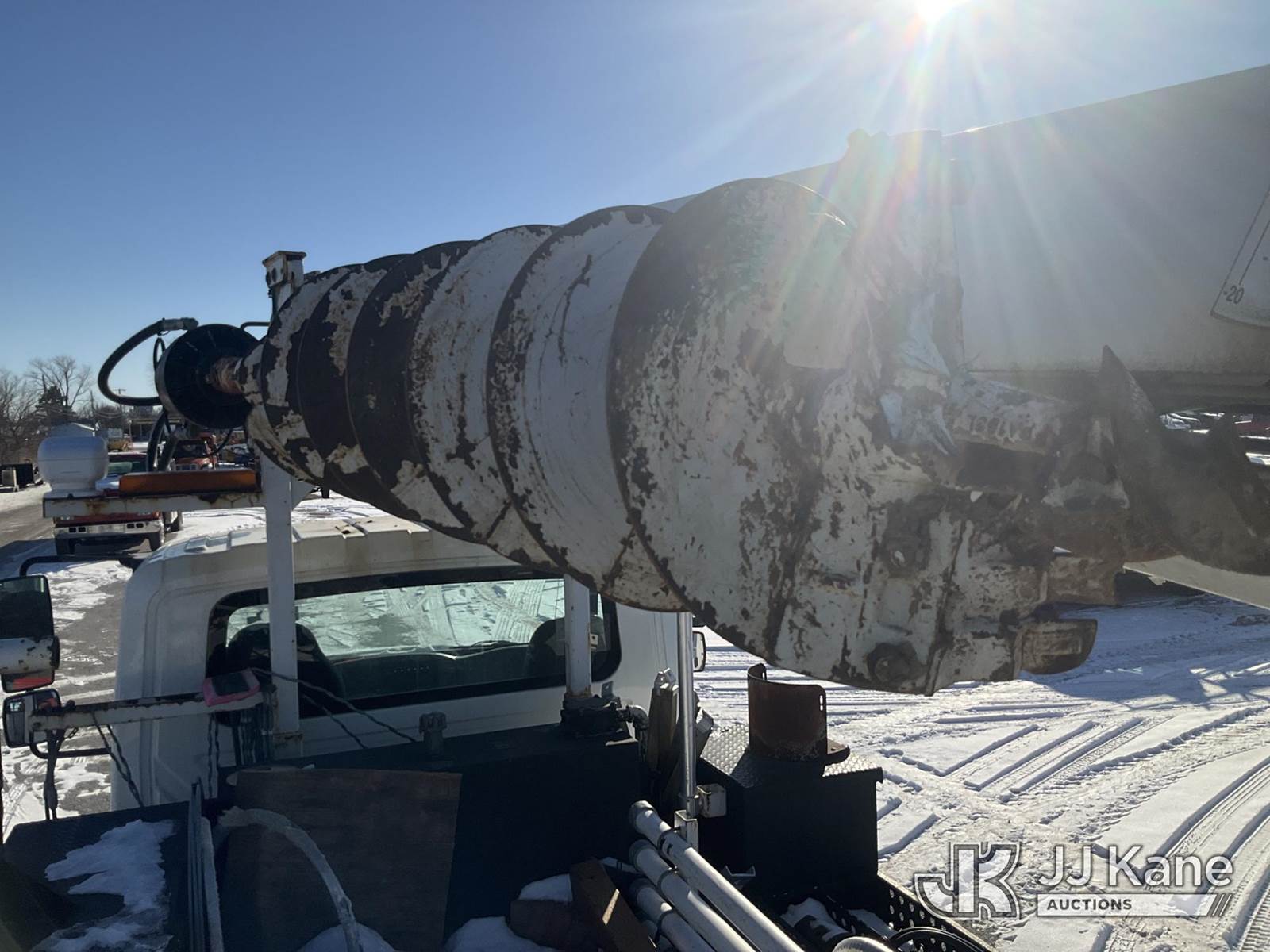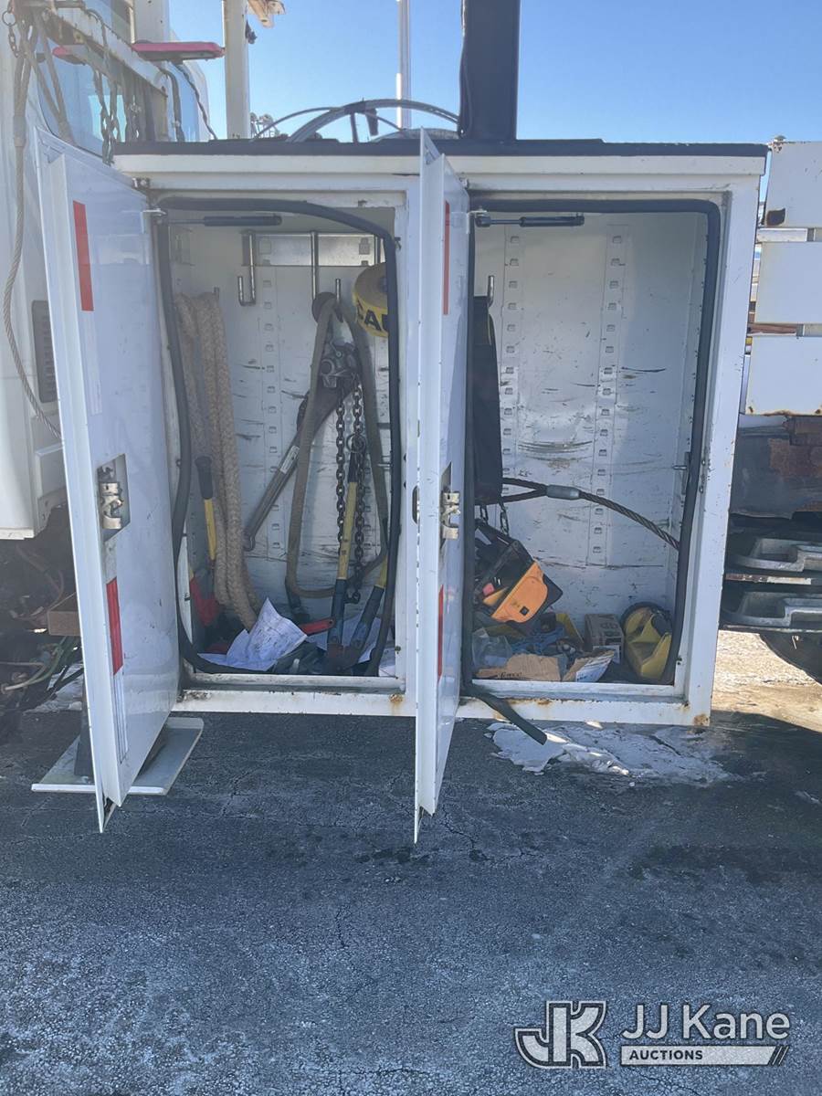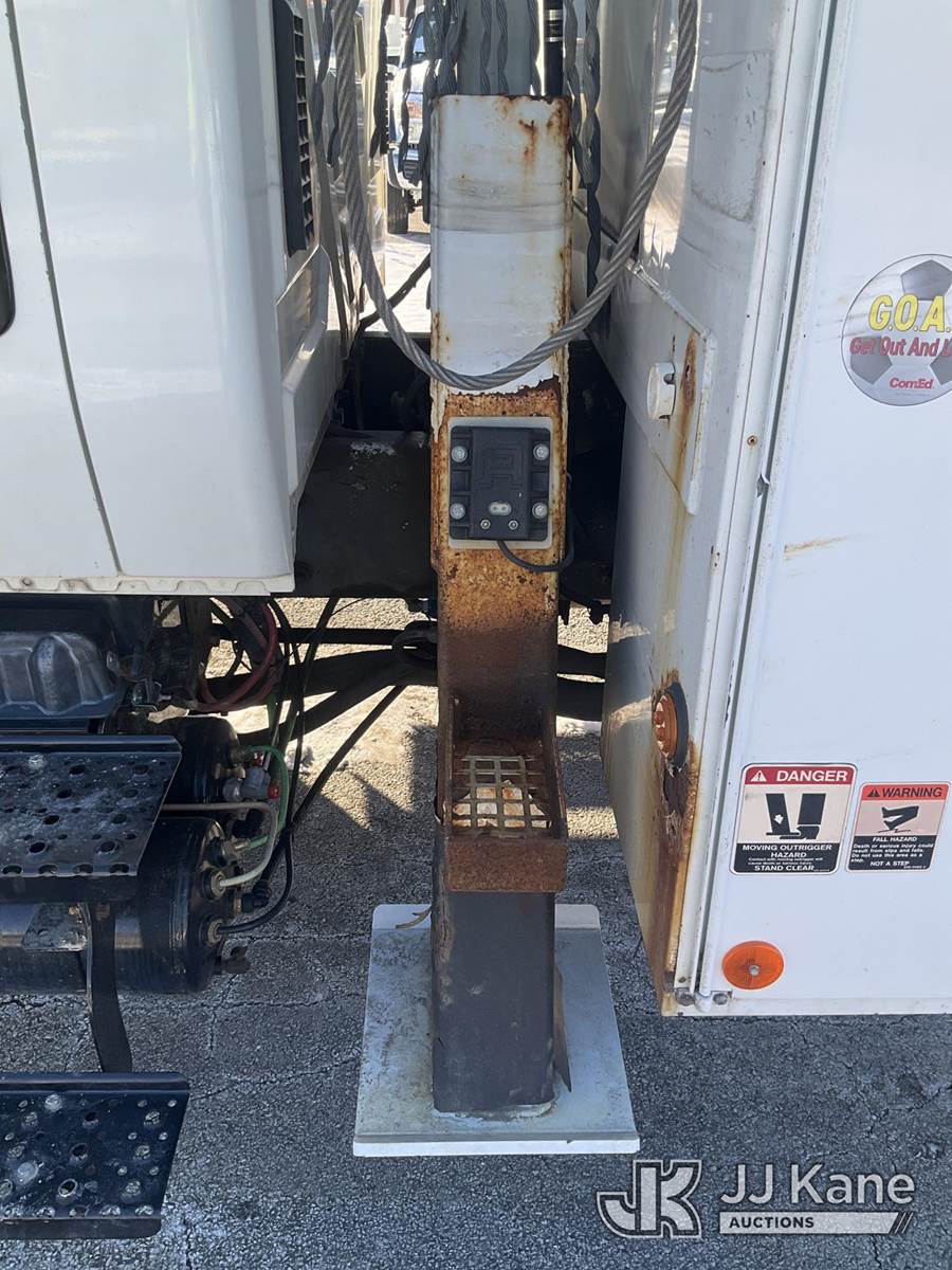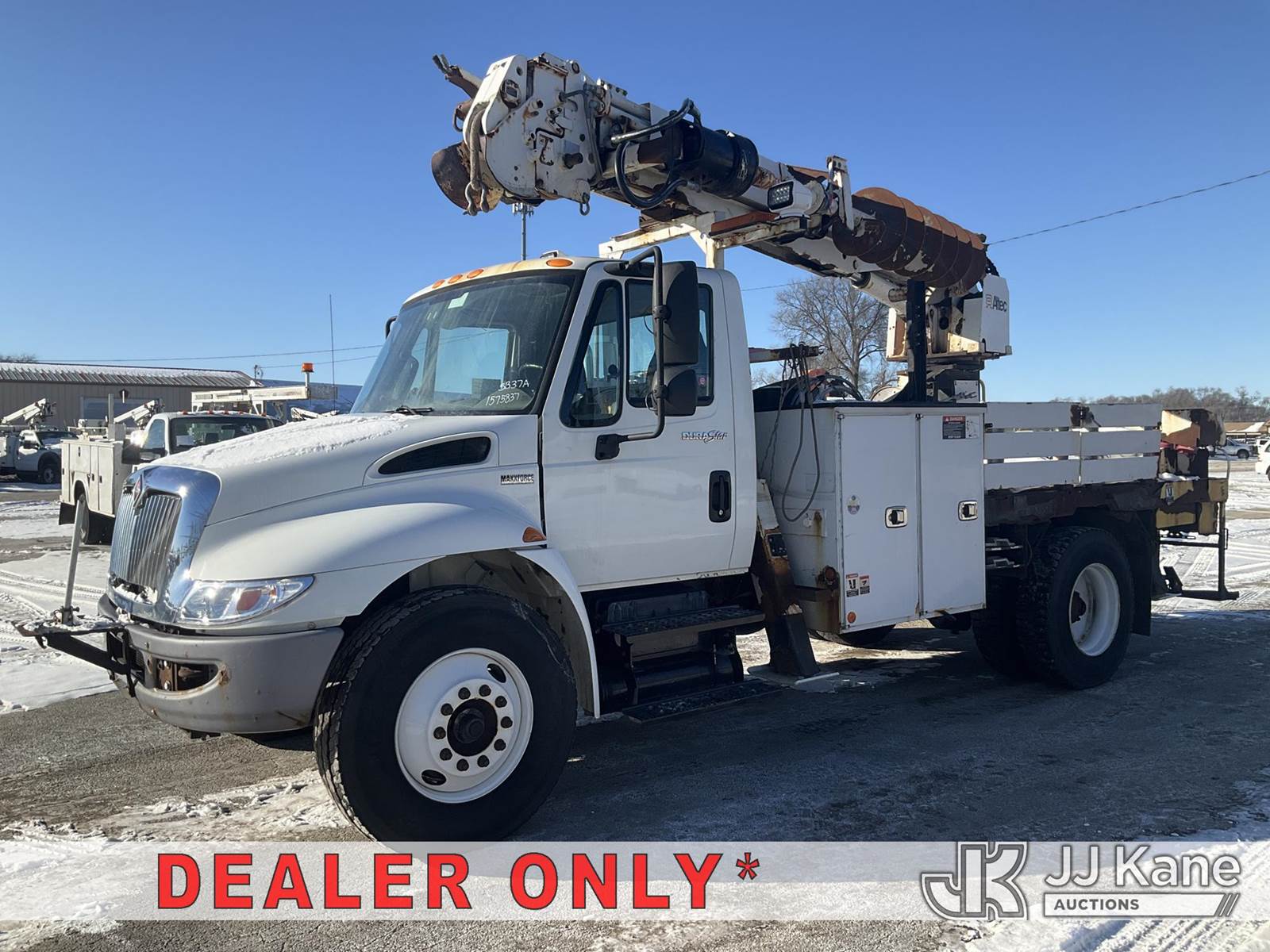 Altec DL42-BC, 21,120 Lb Digger Derrick s/n 0811DU1003, with 42ft. sheave height, 2-spd digger, heel winch, wireless remote & stand-up controls, corner mounted on 2012 International 4300 Flatbed/Utility Truck, 7.6L L6 DIESEL 4X2, DIESEL, Auto, A/C, (90,882 miles) (**Dealer Only**Runs & Moves)(Rust Damage) (Seller States: Unable To Operate Upper-Condition Unknown; Extensive Rust Damage to Frame Rail (rusted through on rear) – Requires ANSI Inspection for complete repair/replacement requirements)) (Reads 9,470 hours) (Bidding Restricted to Licensed Vehicle Dealers Only), This is a Titled Item NOTE: This unit is being sold AS IS/WHERE IS via Timed Auction and is located in South Beloit, IL. Inspection & preview days for this unit are the 2 business days prior to the first day of items closing for this auction, item is located at 14354 Dearborn Ave South Beloit, IL and hours of operations are 8a-4p. For pre-sale questions, please contact Derek Eklund at (608) 904-0618 or (derek.eklund@jjkane.com). (Manuals provided in cab) (Buyer is responsible for removal. Assistance by consignor or JJ Kane Auctions is not assured.)