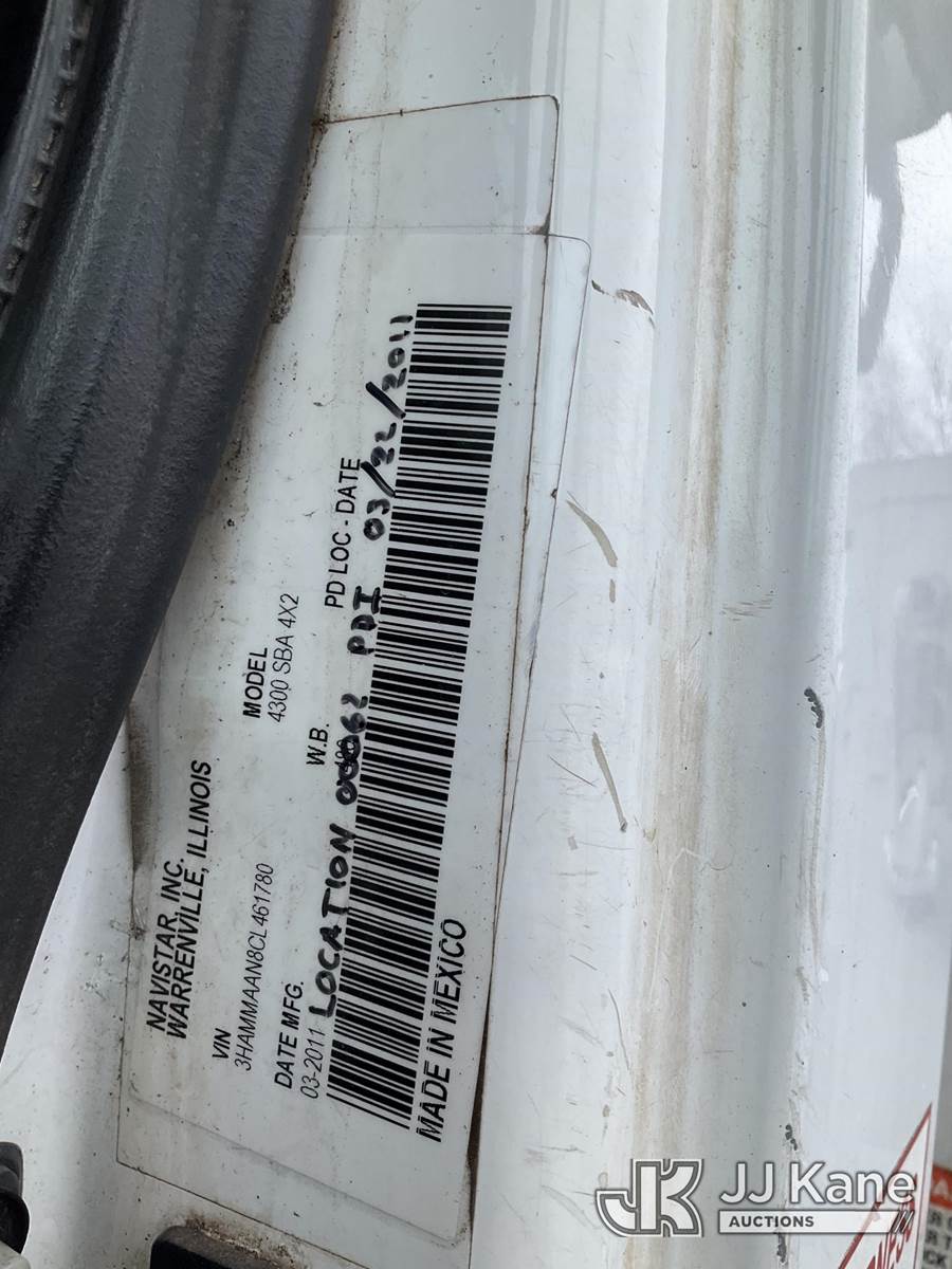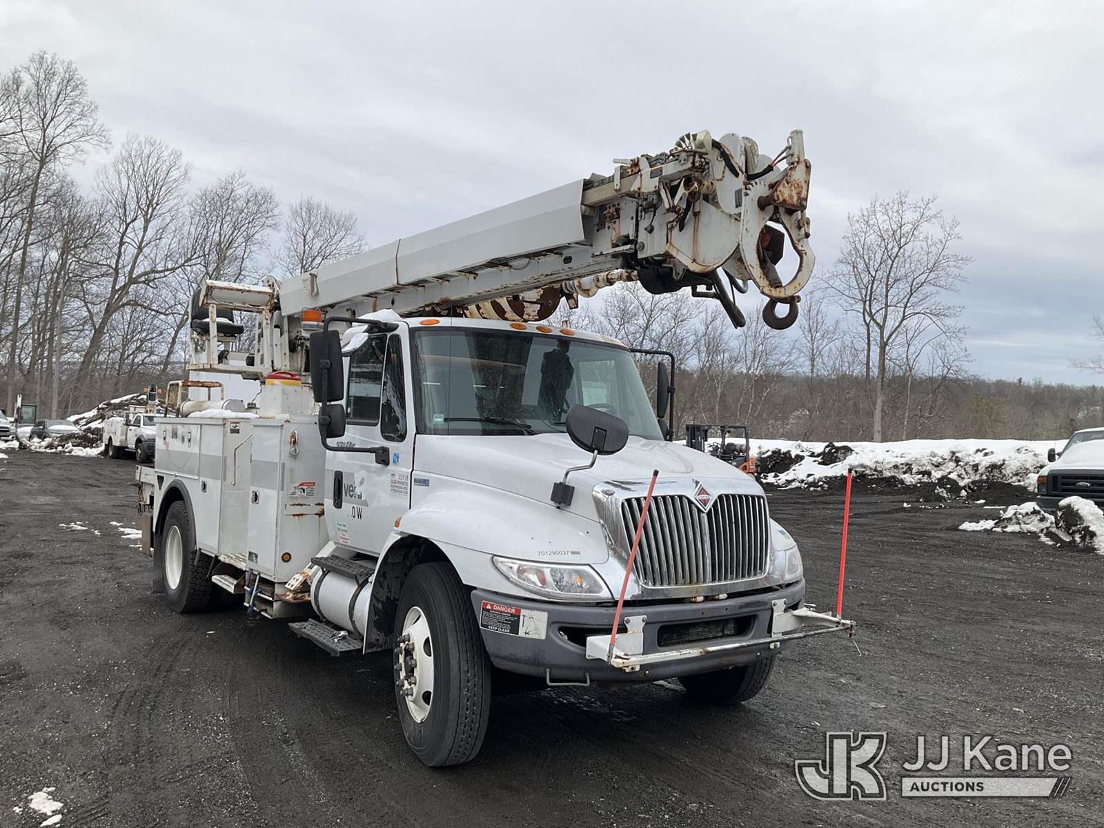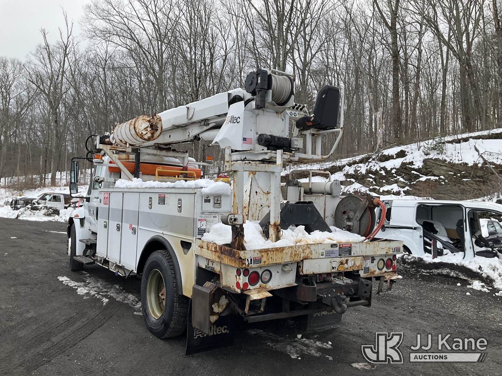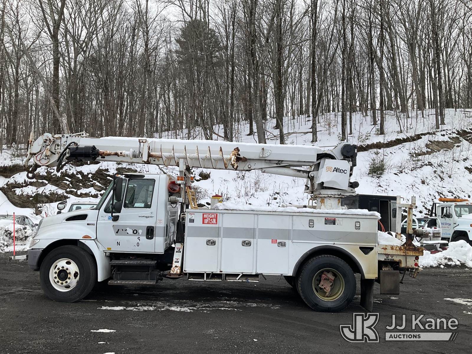 Altec DM47-TR, 23,790 Lb Digger Derrick s/n 0811DV5269, with 47 ft Sheave Height, 3-Section Boom, 2 Spd Digger, Pole Grabs, Heel Winch, Riding Console & 4 Outriggers, rear mounted on 2012 International 4300 Utility Truck, MaxxForce 7.6L diesel, Auto, A/C, (97,031 miles) (Not Running, Condition Unknown, Upper Condition Unknown, Rear Axle Out, Must Tow) (The manufacturer has notified JJ Kane that this equipment is subject to an open recall. CSN 568 Auger Extension Shaft Hub Inspection CSN 713A Reinforcement Plate Installation The equipment should not be operated until this is addressed. Buyer is responsible for reviewing the recall notice and contacting the manufacturer to schedule the recommended corrective actions. Associated costs may be covered by the manufacturer in some cases.) (Removal is by Appointment Only, Buyer MUST make a appointment prior to picking up, Buyer/Transporter Must have PAID IN FULL RELEASE. No onsite assistance available, Please Come prepared.) This is a Titled Item NOTE: This unit is being sold AS IS/WHERE IS via Timed Auction and is located in Branchville, NJ. Inspection & preview days for this unit are by appointment only; please contact us at contact@jjkane.com or 84-Go-JJKane for more details. For pre-sale questions, please contact the on-site office @ (973) 948-2026 or wtrbranchville@gmail.com. (Missing manuals, See Auction Company for Manufacturers Information to obtain manuals) (Buyer is responsible for removal. Assistance by consignor or JJ Kane Auctions is not assured.)