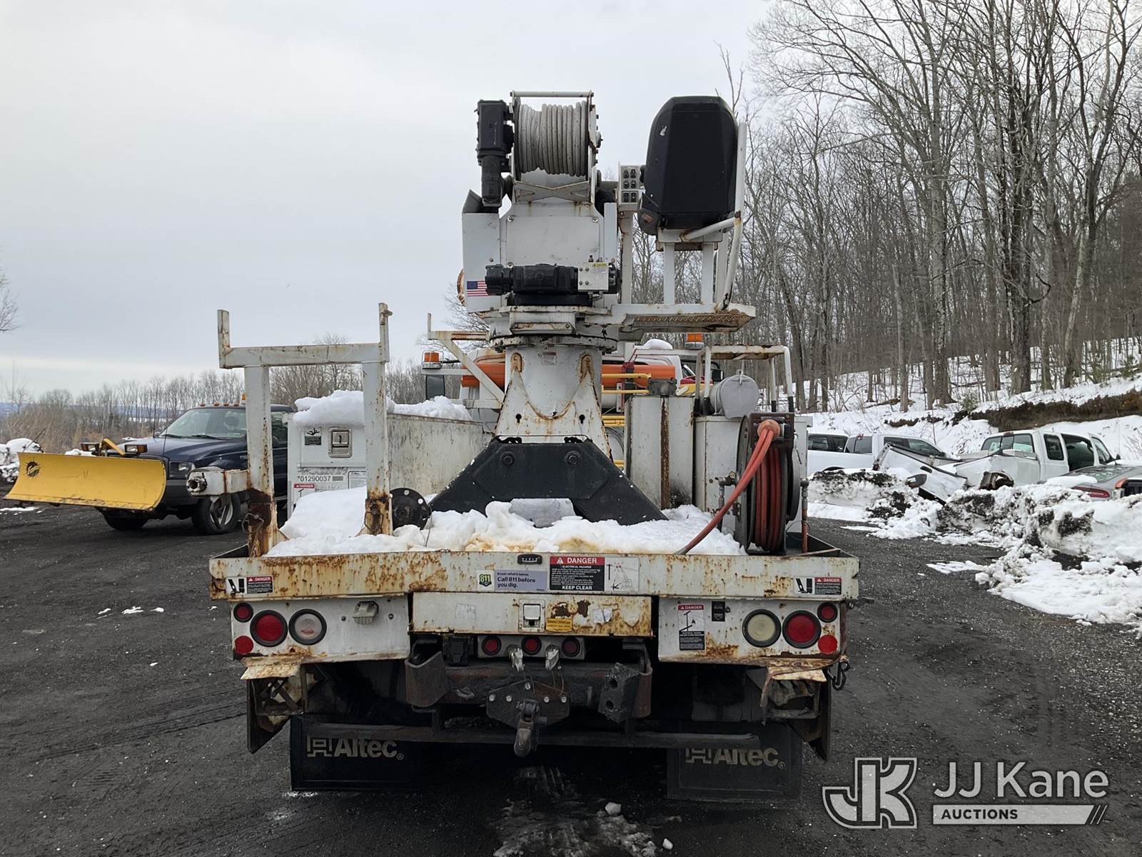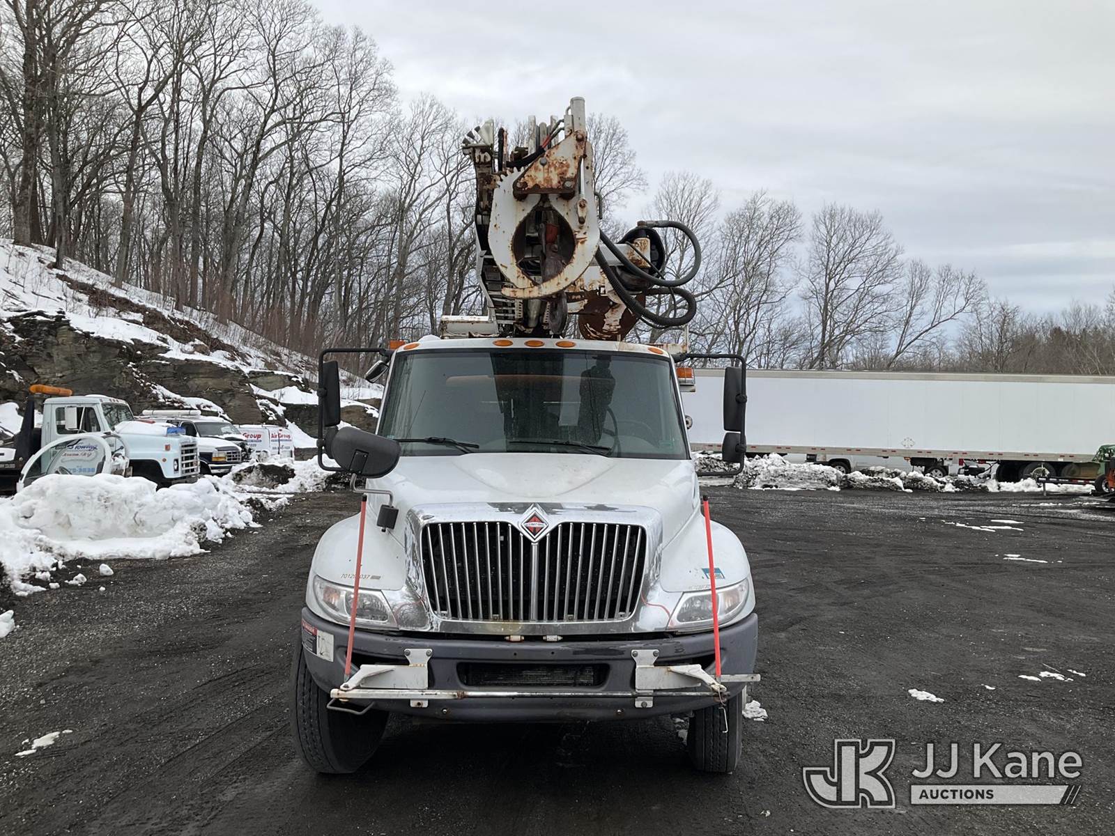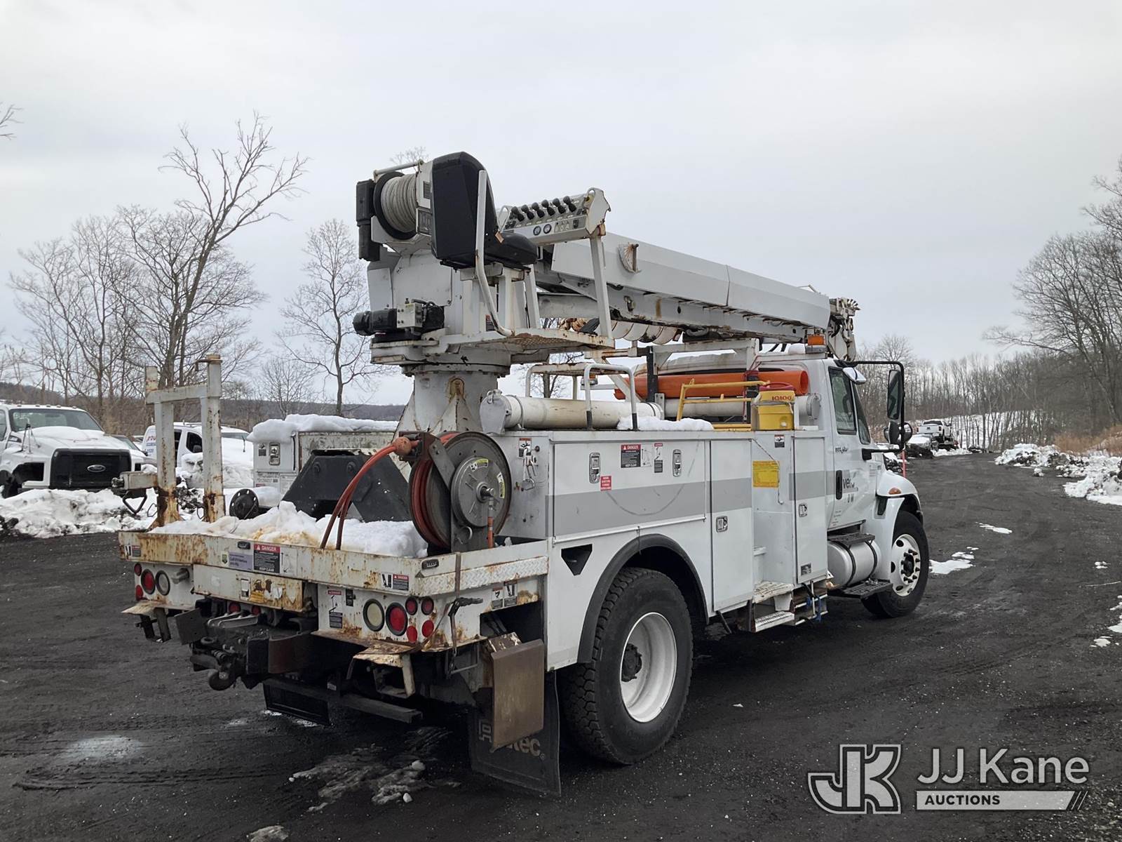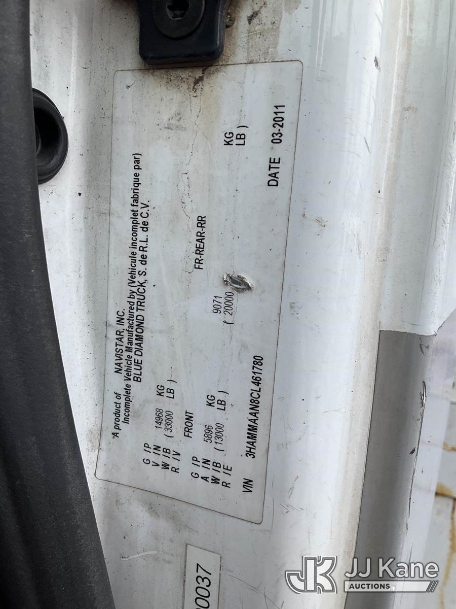 Altec DM47-TR, 23,790 Lb Digger Derrick s/n 0811DV5269, with 47 ft Sheave Height, 3-Section Boom, 2 Spd Digger, Pole Grabs, Heel Winch, Riding Console & 4 Outriggers, rear mounted on 2012 International 4300 Utility Truck, MaxxForce 7.6L diesel, Auto, A/C, (97,031 miles) (Not Running, Condition Unknown, Upper Condition Unknown, Rear Axle Out, Must Tow) (The manufacturer has notified JJ Kane that this equipment is subject to an open recall. CSN 568 Auger Extension Shaft Hub Inspection CSN 713A Reinforcement Plate Installation The equipment should not be operated until this is addressed. Buyer is responsible for reviewing the recall notice and contacting the manufacturer to schedule the recommended corrective actions. Associated costs may be covered by the manufacturer in some cases.) (Removal is by Appointment Only, Buyer MUST make a appointment prior to picking up, Buyer/Transporter Must have PAID IN FULL RELEASE. No onsite assistance available, Please Come prepared.) This is a Titled Item NOTE: This unit is being sold AS IS/WHERE IS via Timed Auction and is located in Branchville, NJ. Inspection & preview days for this unit are by appointment only; please contact us at contact@jjkane.com or 84-Go-JJKane for more details. For pre-sale questions, please contact the on-site office @ (973) 948-2026 or wtrbranchville@gmail.com. (Missing manuals, See Auction Company for Manufacturers Information to obtain manuals) (Buyer is responsible for removal. Assistance by consignor or JJ Kane Auctions is not assured.)
