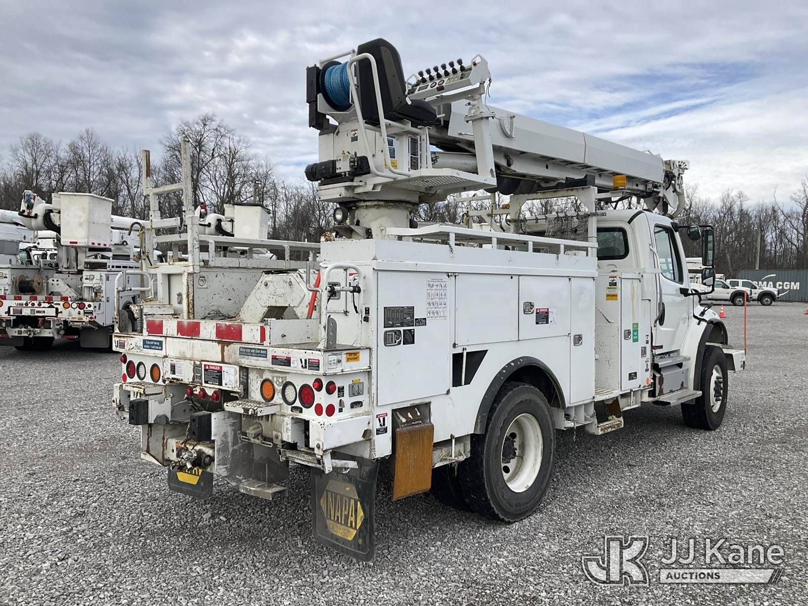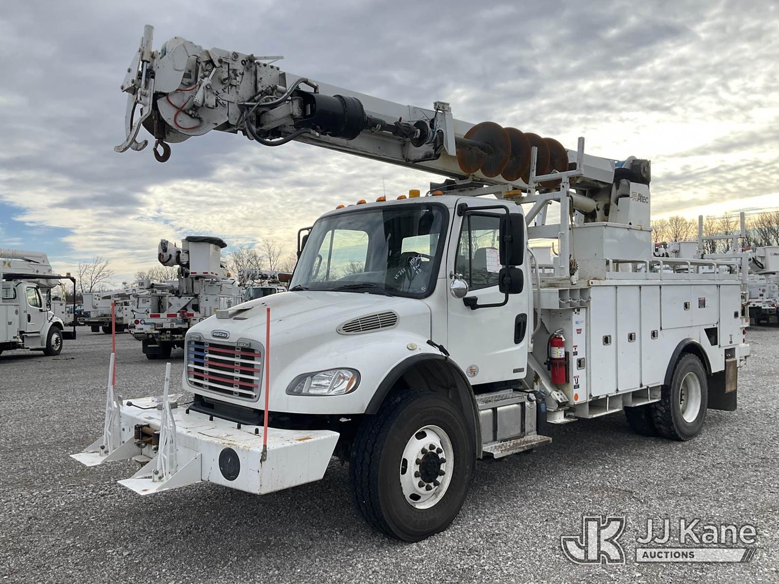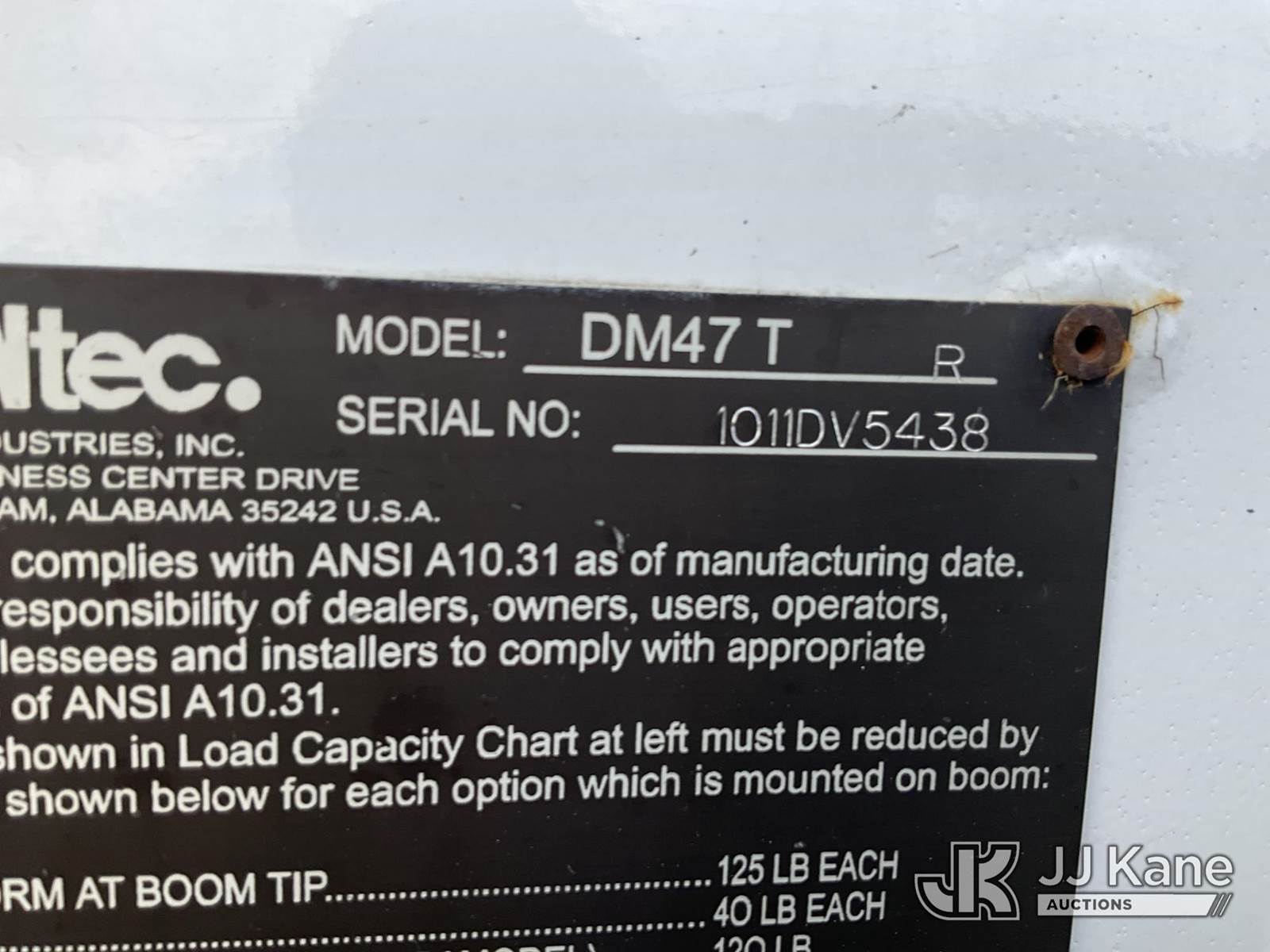 Altec DM47TR, 23,790 Lb Digger Derrick s/n 1011DV5438, with 47 ft. sheave height, 3 section hyd. boom, pole grabs, upper controls, two-speed digger, heel winch, riding console & 4 hyd. outriggers, rear mounted on 2012 Freightliner M2 106 4x4 Utility Truck, 6.7L L6 diesel, Auto, A/C, with front winch, (69,078 miles) (Duke Unit) (Runs, Moves & Upper Operates) (Rust Damage) This is a Titled Item NOTE: This unit is being sold AS IS/WHERE IS via Timed Auction and is located in Verona, KY. Inspection & preview days for this unit are the 2 business days prior to the first day of items closing for this auction, item is located at 2841 Verona-Mudlick Rd Ste B Verona, KY 41092 and hours of operations are 8a-4p. For pre-sale questions, please contact Office Staff @ (502) 612-5080. Auctioneer Michael Whitebread / License # 256617. (Manuals provided in cab) (Buyer is responsible for removal. Assistance by consignor or JJ Kane Auctions is not assured.)