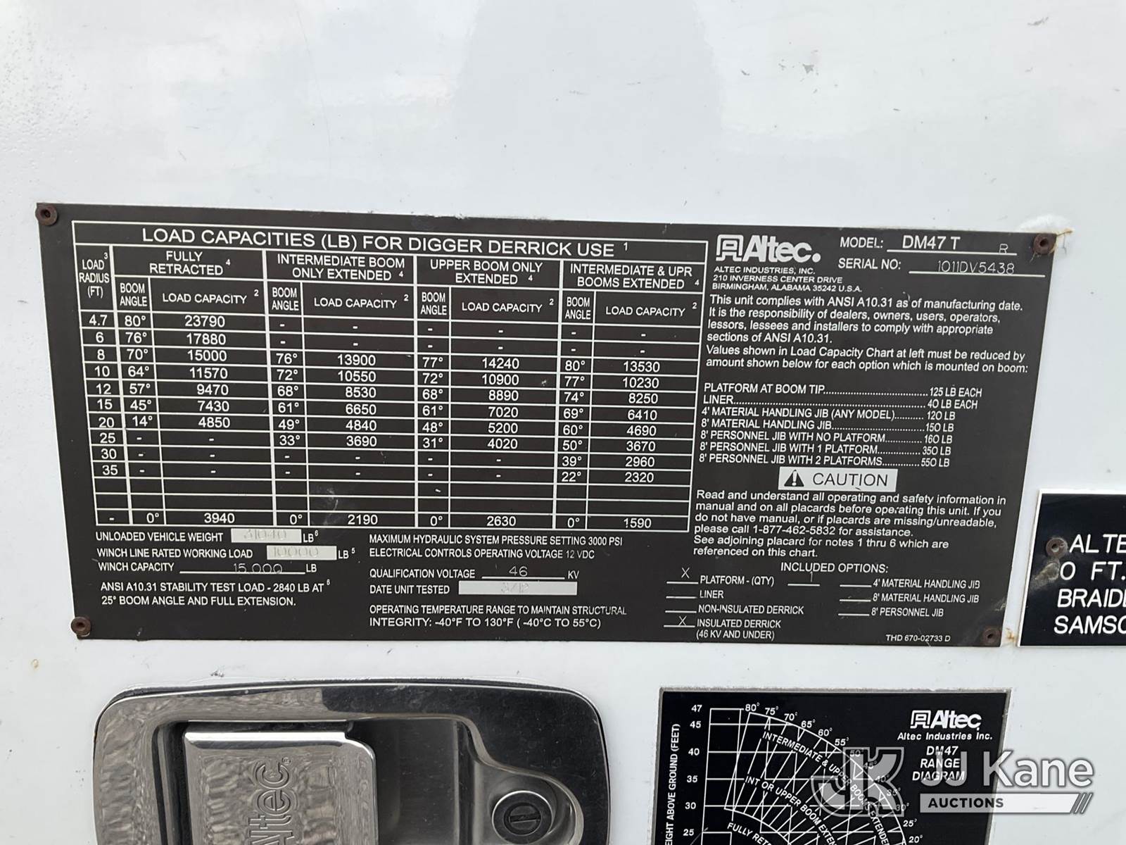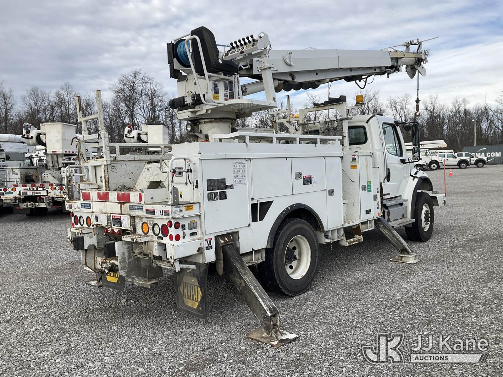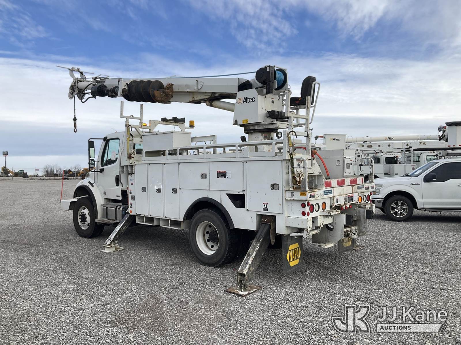 Altec DM47TR, 23,790 Lb Digger Derrick s/n 1011DV5438, with 47 ft. sheave height, 3 section hyd. boom, pole grabs, upper controls, two-speed digger, heel winch, riding console & 4 hyd. outriggers, rear mounted on 2012 Freightliner M2 106 4x4 Utility Truck, 6.7L L6 diesel, Auto, A/C, with front winch, (69,078 miles) (Duke Unit) (Runs, Moves & Upper Operates) (Rust Damage) This is a Titled Item NOTE: This unit is being sold AS IS/WHERE IS via Timed Auction and is located in Verona, KY. Inspection & preview days for this unit are the 2 business days prior to the first day of items closing for this auction, item is located at 2841 Verona-Mudlick Rd Ste B Verona, KY 41092 and hours of operations are 8a-4p. For pre-sale questions, please contact Office Staff @ (502) 612-5080. Auctioneer Michael Whitebread / License # 256617. (Manuals provided in cab) (Buyer is responsible for removal. Assistance by consignor or JJ Kane Auctions is not assured.)
