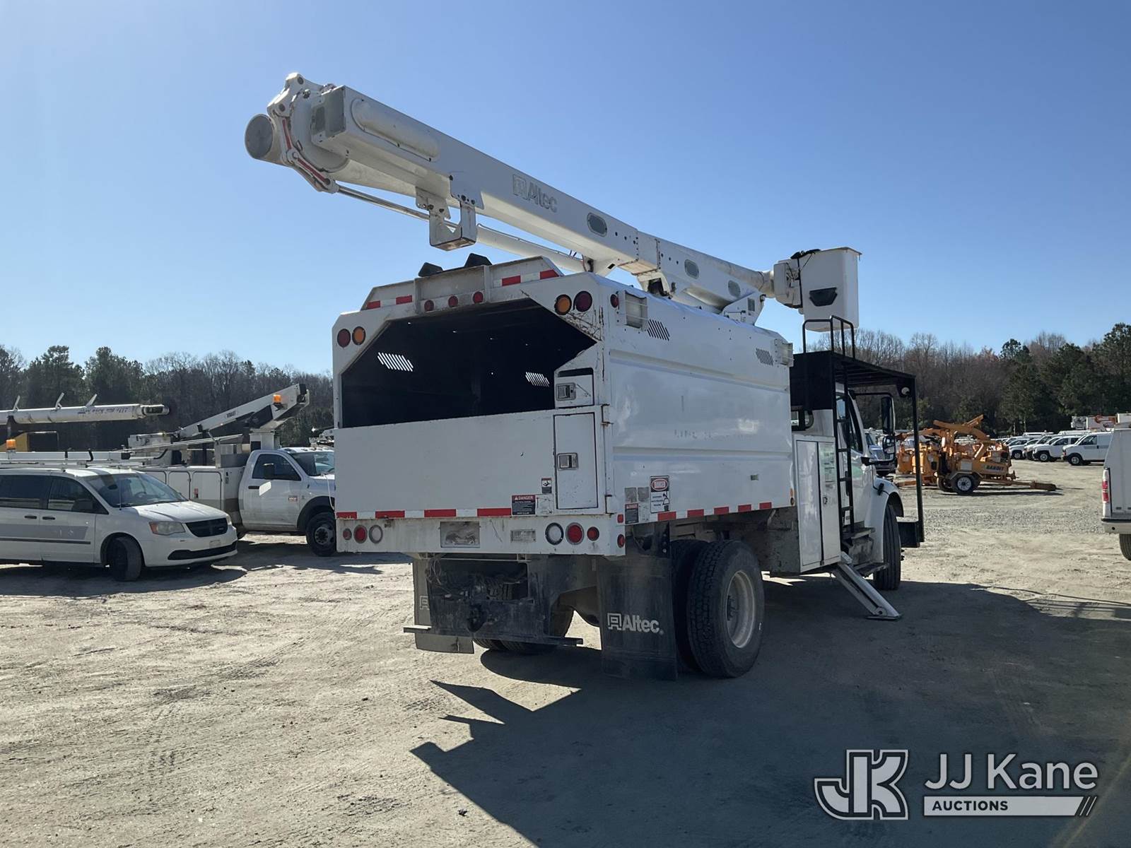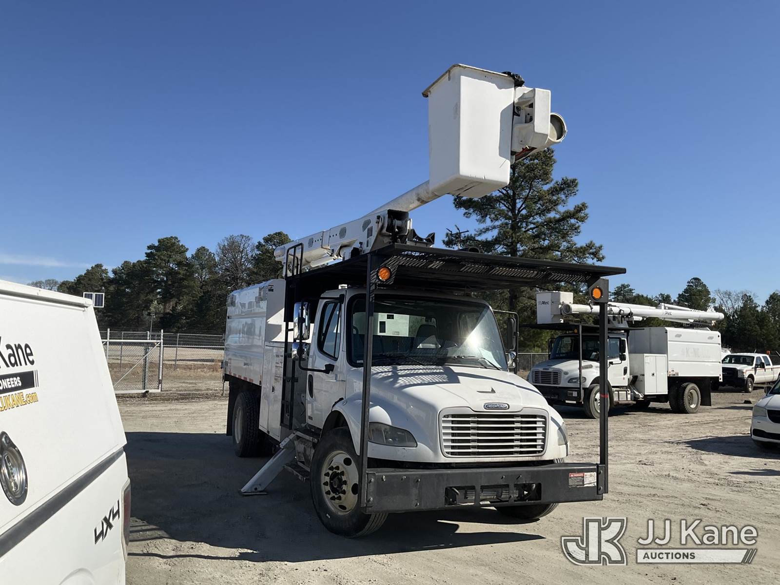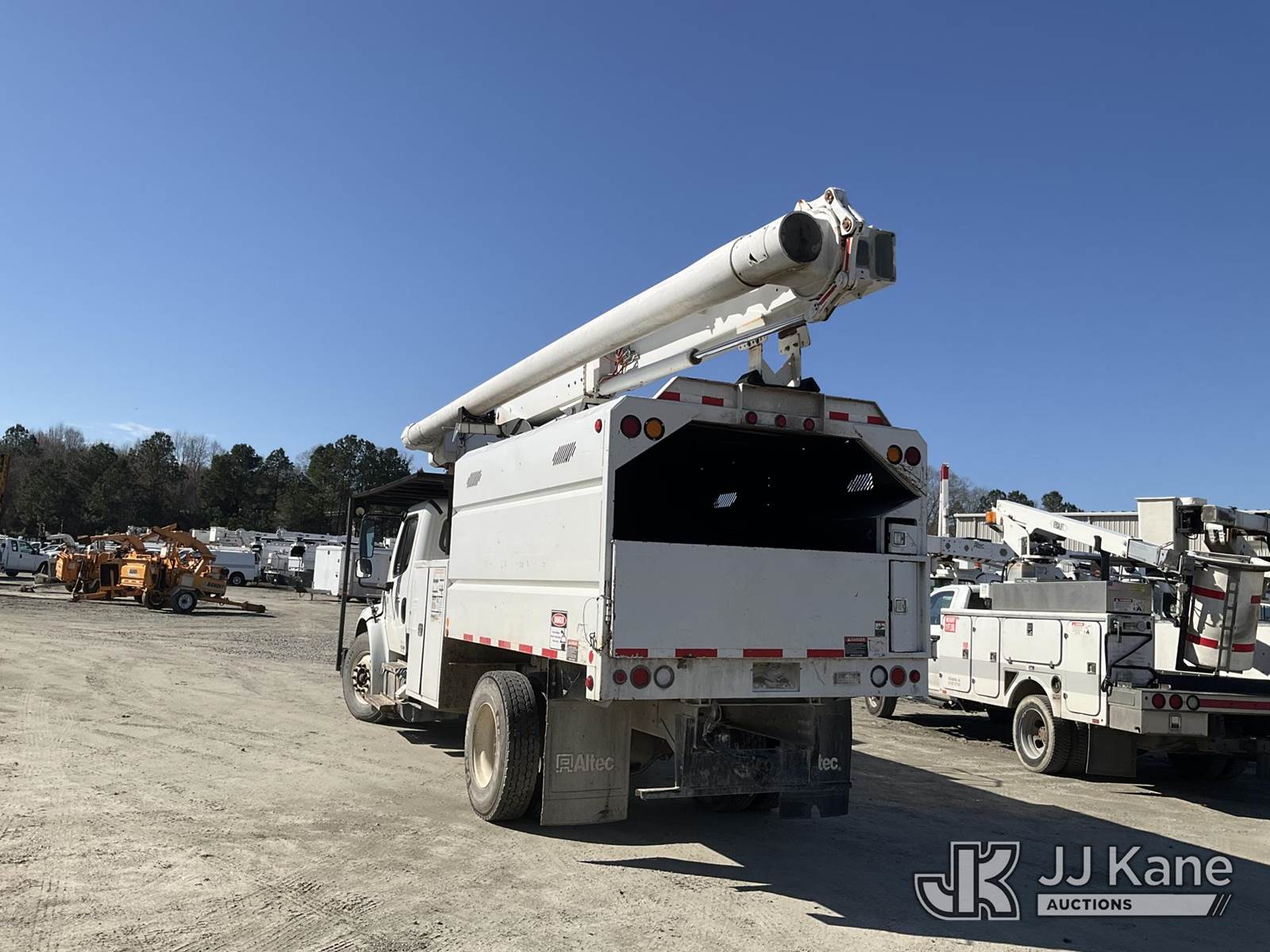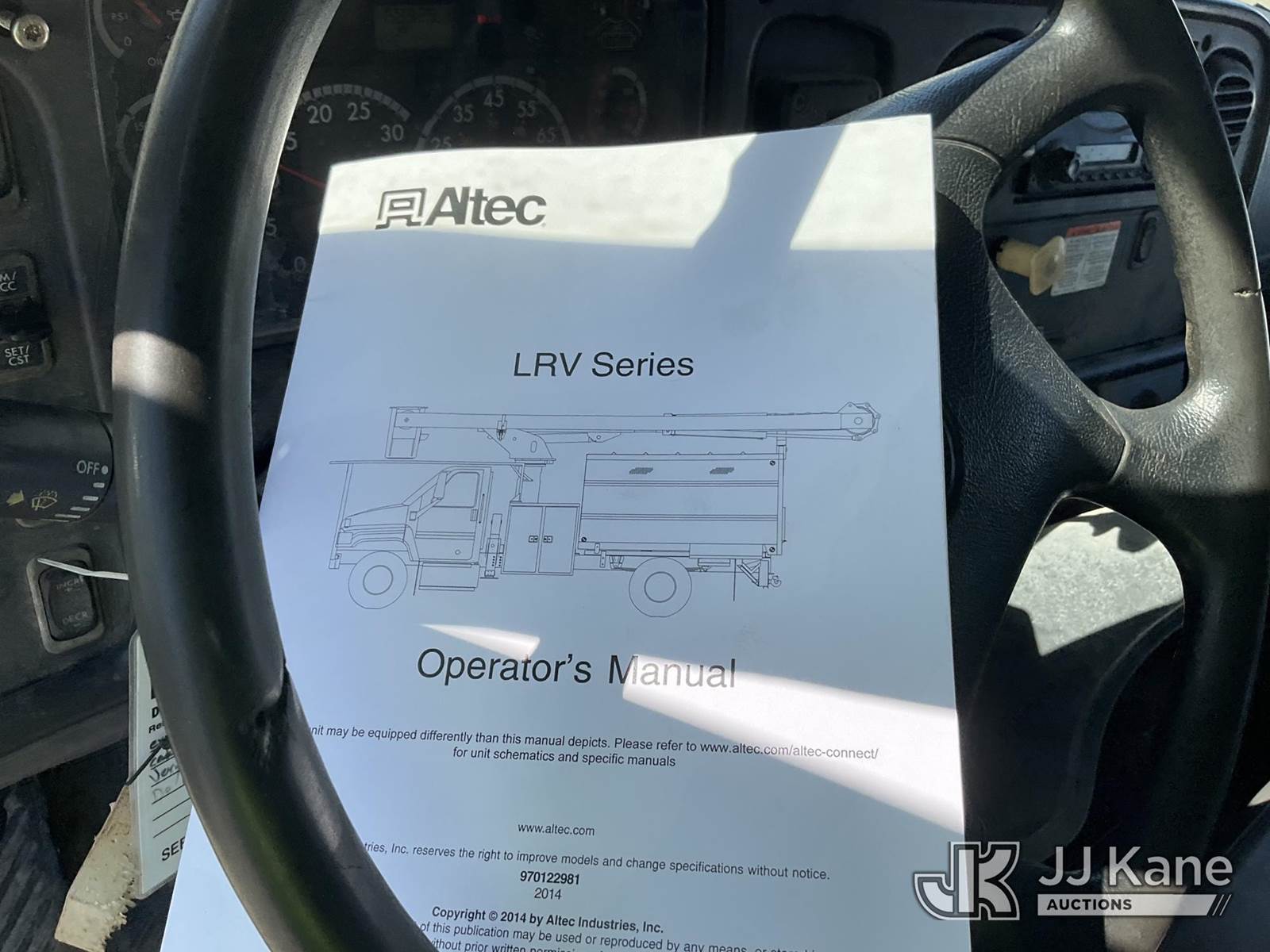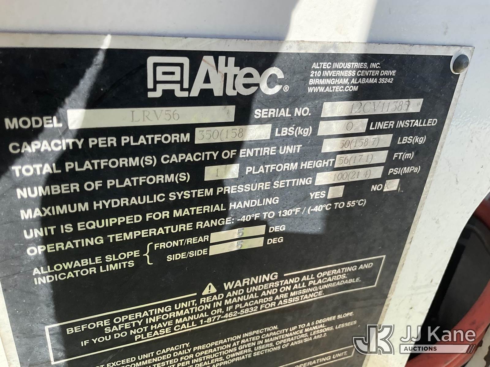 Altec LRV-56, 61 ft, Over-Center Bucket Truck s/n 0112CV11385, with single-man bucket, mounted behind cab on 2012 Freightliner M2 106 Utility Truck, Cummins 6.7L diesel, Auto, A/C, (68,929 miles (unverified)) (Runs, Moves & Upper Operates) (Seller Red Tagged: Lower Boom Impacted Causing Boom To Twist) (Windshield Cracked) (An Altec inspection of the unit identified above has determined that the unit cannot be safely operated without completion of significant repairs. The unit has been removed from service until these repairs are accomplished. Serious injury or death can result for any attempt to operate the unit without the benefit of these repairs. Altec has recorded the out of service status of the unit. Until Altec has been notified, in writing, that the required repairs have been performed, or Altec performs the repairs, further service work, technical support, and part sales by Altec may be limited on this unit. An Altec inspection of the unit identified above has determined that the unit cannot be safely operated without completion of significant repairs. The unit has been removed from service until these repairs are accomplished. Serious injury or death can result for any attempt to operate the unit without the benefit of these repairs. Altec has recorded the out of service status of the unit. Until Altec has been notified, in writing, that the required repairs have been performed, or Altec performs the repairs, further service work, technical support, and part sales by Altec may be limited on this unit.) This is a Titled Item NOTE: This unit is being sold AS IS/WHERE IS via Timed Auction and is located in Chester, VA. Inspection & preview days for this unit are the 2 business days prior to the first day of items closing for this auction, item is located at 13301 Great Coastal Dr Chester, VA 23836 and hours of operations are 8a-3p. For pre-sale questions, please contact Doug Caton @ 804-807-4574. (Manuals provided in cab) (Buyer is responsible for removal. Assistance by consignor or JJ Kane Auctions is not assured.)