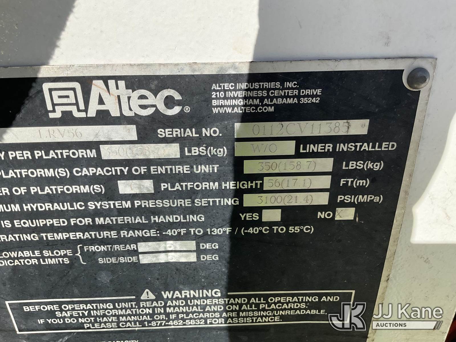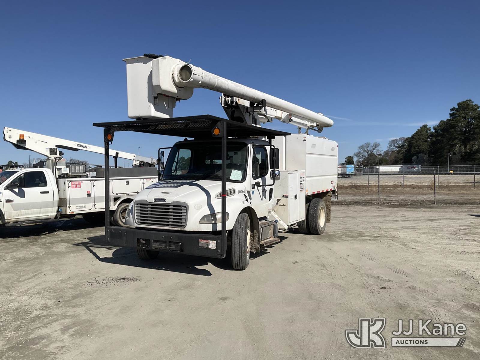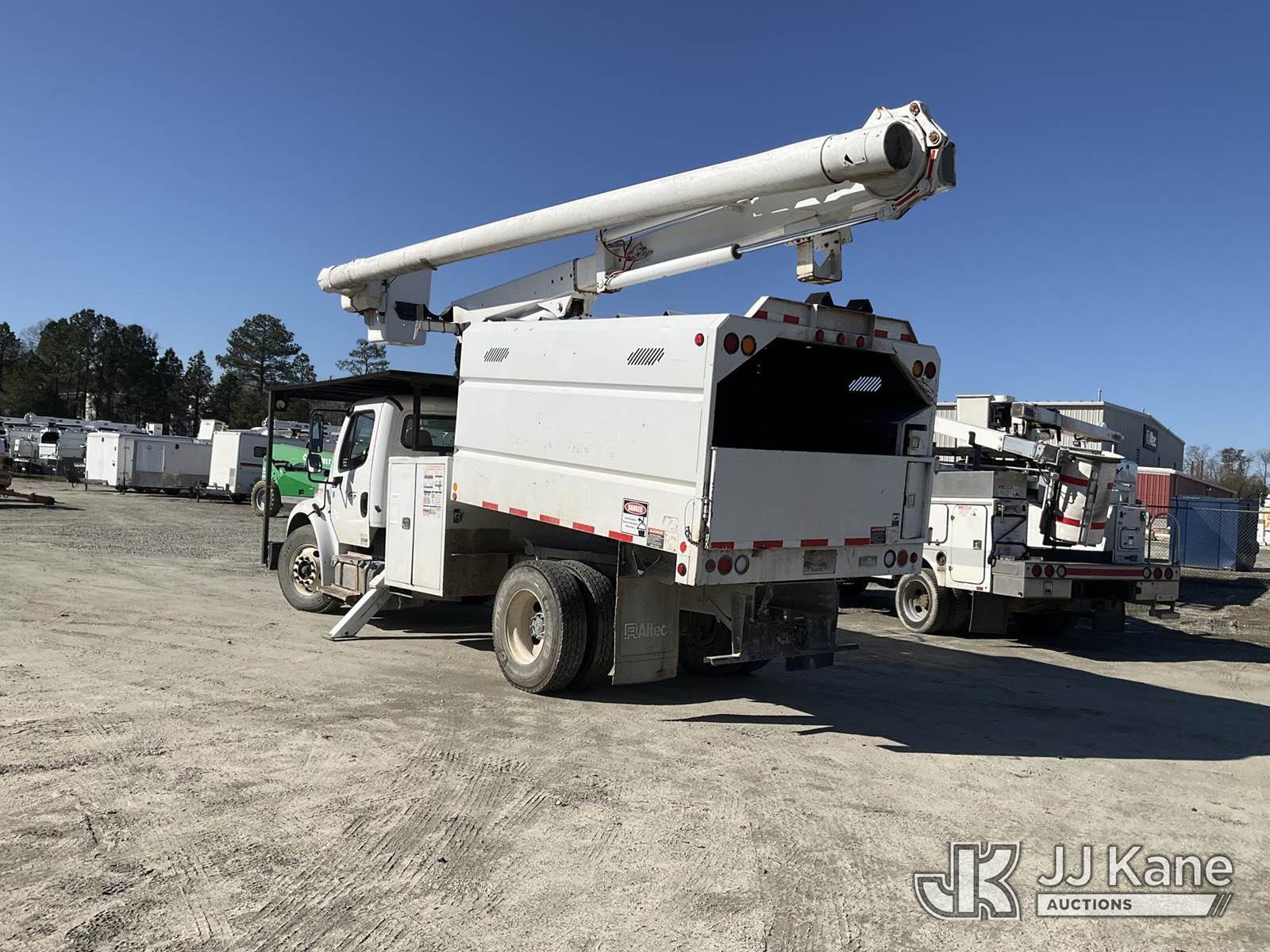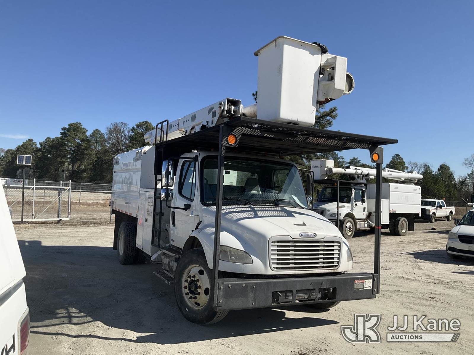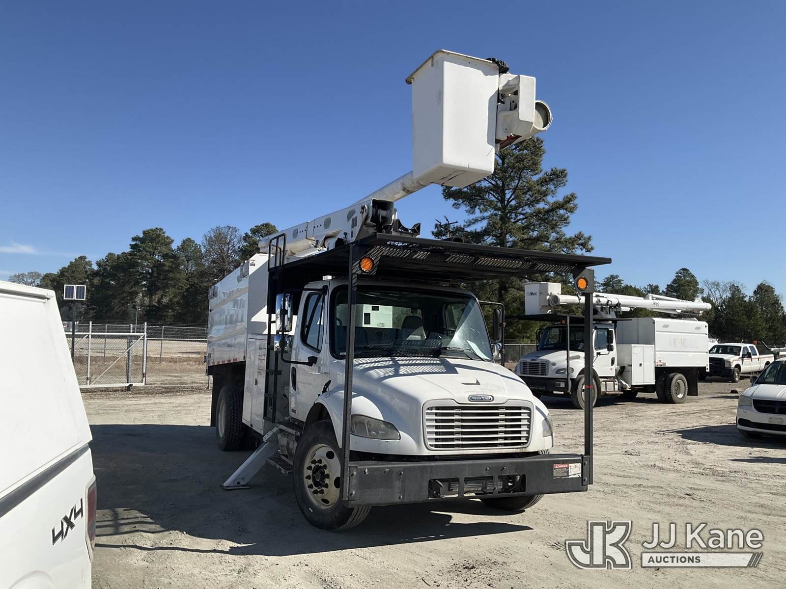 Altec LRV-56, 61 ft, Over-Center Bucket Truck s/n 0112CV11385, with single-man bucket, mounted behind cab on 2012 Freightliner M2 106 Utility Truck, Cummins 6.7L diesel, Auto, A/C, (68,929 miles (unverified)) (Runs, Moves & Upper Operates) (Seller Red Tagged: Lower Boom Impacted Causing Boom To Twist) (Windshield Cracked) (An Altec inspection of the unit identified above has determined that the unit cannot be safely operated without completion of significant repairs. The unit has been removed from service until these repairs are accomplished. Serious injury or death can result for any attempt to operate the unit without the benefit of these repairs. Altec has recorded the out of service status of the unit. Until Altec has been notified, in writing, that the required repairs have been performed, or Altec performs the repairs, further service work, technical support, and part sales by Altec may be limited on this unit. An Altec inspection of the unit identified above has determined that the unit cannot be safely operated without completion of significant repairs. The unit has been removed from service until these repairs are accomplished. Serious injury or death can result for any attempt to operate the unit without the benefit of these repairs. Altec has recorded the out of service status of the unit. Until Altec has been notified, in writing, that the required repairs have been performed, or Altec performs the repairs, further service work, technical support, and part sales by Altec may be limited on this unit.) This is a Titled Item NOTE: This unit is being sold AS IS/WHERE IS via Timed Auction and is located in Chester, VA. Inspection & preview days for this unit are the 2 business days prior to the first day of items closing for this auction, item is located at 13301 Great Coastal Dr Chester, VA 23836 and hours of operations are 8a-3p. For pre-sale questions, please contact Doug Caton @ 804-807-4574. (Manuals provided in cab) (Buyer is responsible for removal. Assistance by consignor or JJ Kane Auctions is not assured.)