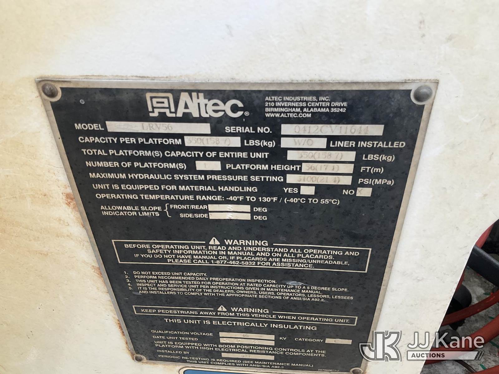 Altec LRV-56, 61 ft, Over-Center Bucket Truck s/n 0412CV11644, with single-man Bucket, mounted behind cab on 2012 Freightliner M2 106 Chipper Dump Truck, Cummins ISB 6.7L diesel, 6-spd, with 11 ft body, (96,946 miles) (Runs, Upper & Dump Operates) (Does Not Move, Missing Upper Controls, Check Engine Light On) (Seller States: Bad Rear Differential) ( The manufacturer has notified JJ Kane that this equipment is subject to an open recall. CSN 672 LRV/LR7 Leveling Yoke Inspection The equipment should not be operated until this is addressed. Buyer is responsible for reviewing the recall notice and contacting the manufacturer to schedule the recommended corrective actions. Associated costs may be covered by the manufacturer in some cases.) This is a Titled Item NOTE: This unit is being sold AS IS/WHERE IS via Timed Auction and is located in Chester, VA. Inspection & preview days for this unit are the 2 business days prior to the first day of items closing for this auction, item is located at 1840 Battery Dantzler Ct. Chester, VA 23836 and hours of operations are 7am-3pm. For pre-sale questions, please contact Doug Caton @ 804-807-4574. (Missing manuals, See Auction Company for Manufacturers Information to obtain manuals) (Buyer is responsible for removal. Assistance by consignor or JJ Kane Auctions is not assured.)