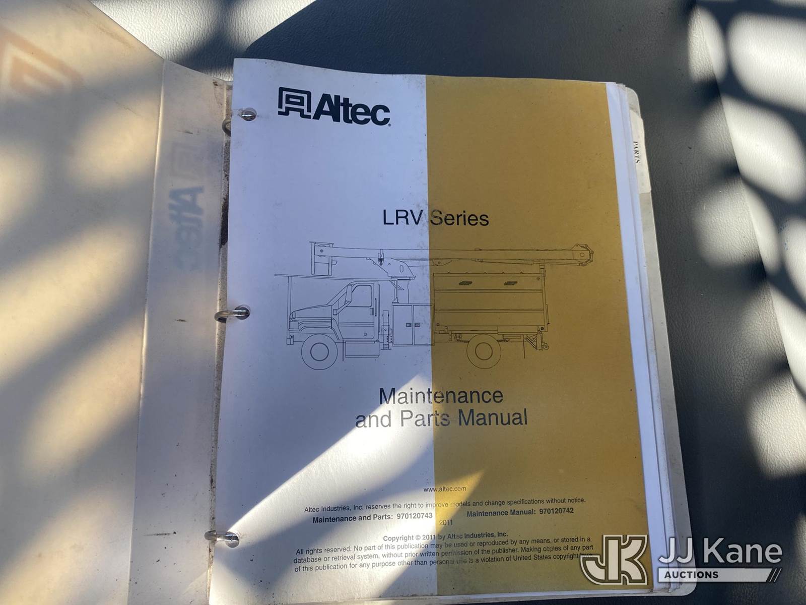 Altec LRV-60, 65 ft, Over-Center Bucket Truck s/n 1011CV11223, with single-man bucket & 2 hyd outriggers, mounted behind cab on 2012 Freightliner M2 106 Chipper Dump Truck, 6.7L L6 diesel, Auto, 4X2, with 11 ft dump bed, (123,303 miles) (Runs, Moves & Operates) (Jump To Start, Check Engine Light On ) (Reads 10,688 hours) This is a Titled Item NOTE: This unit is being sold AS IS/WHERE IS via Timed Auction and is located in Villa Rica, GA. Inspection & preview days for this unit are the 2 business days prior to the first day of items closing for this auction, item is located at 100 Liberty Rd Villa Rica, GA 30180 and hours of operations are 8a-4p. For pre-sale questions, please contact Office Staff @ (470) 590-8453. (Manuals provided in cab) (Buyer is responsible for removal. Assistance by consignor or JJ Kane Auctions is not assured.)