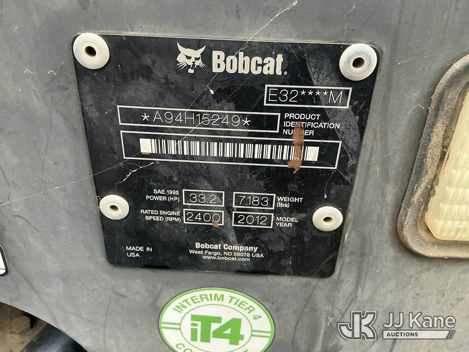 2012 Bobcat E32 Mini Hydraulic Excavator, s/n A94H15249, 3-cyl diesel, Hydrostatic, with rubber tracks, hyd thumb attachment & EROPS, (Runs & Operates ) (Reads 2,080 hours) NOTE: This unit is being sold AS IS/WHERE IS via Timed Auction and is located in Dixon, CA. Inspection & preview days for this unit are the 2 business days prior to the first day of items closing for this auction, item is located at 8668 Sparling Ln Dixon, CA 95620 and hours of operations are 8a-4p. For pre-sale questions, please contact JJ Kane Staff at (707) 678-8060 (dixon@jjkane.com). Dealer License Number 45696. (Buyer is responsible for removal. Assistance by consignor or JJ Kane Auctions is not assured.)