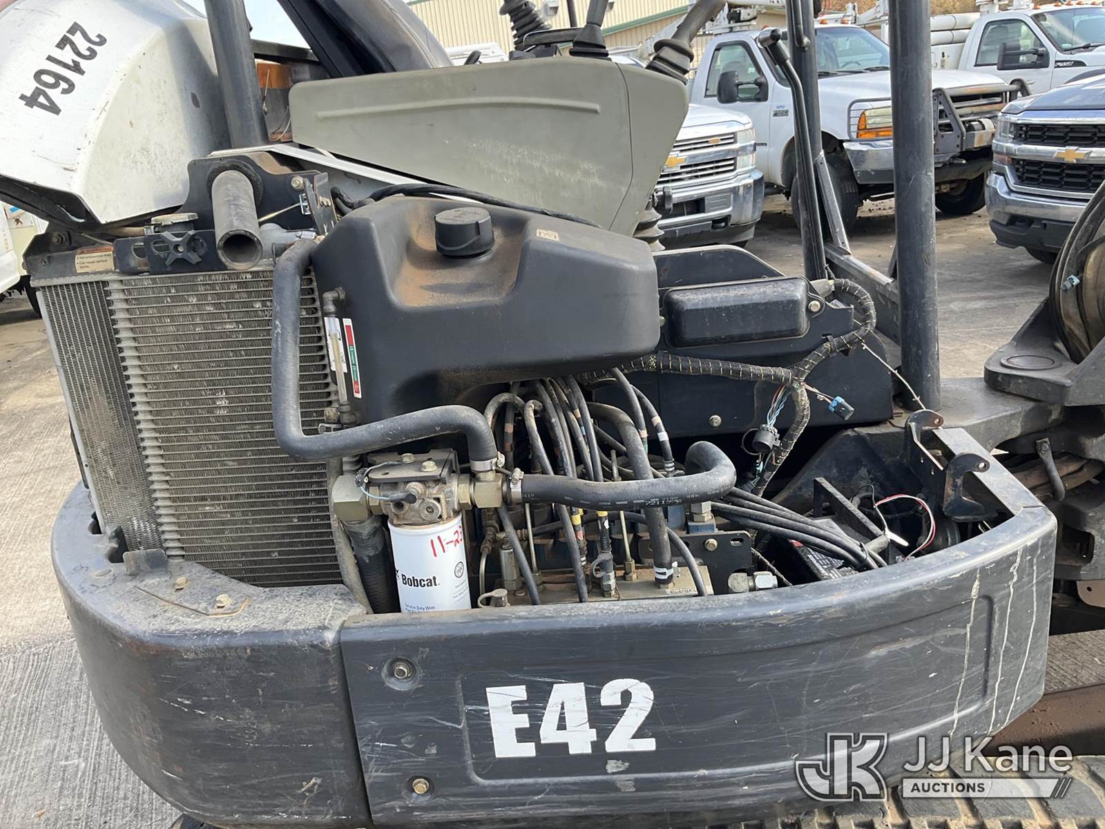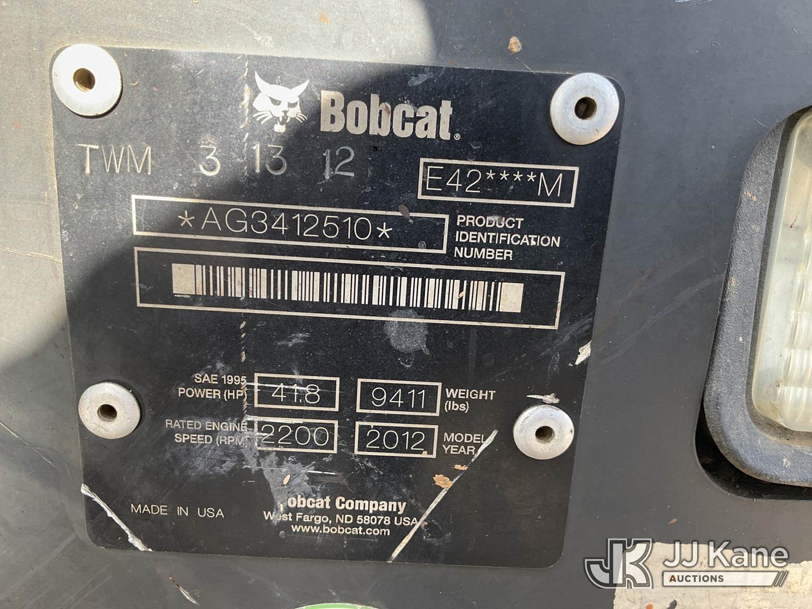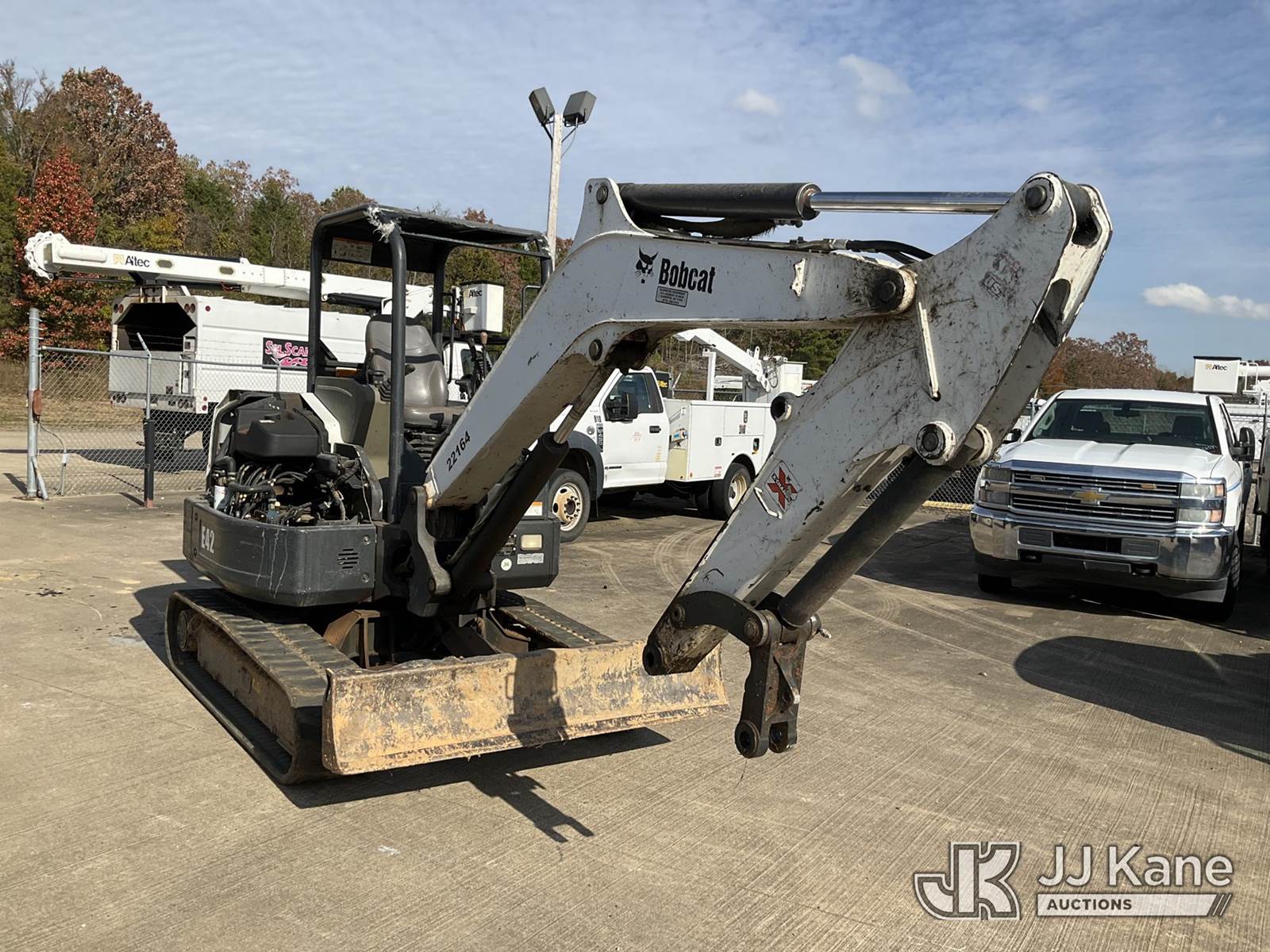 2012 Bobcat E42 Mini Hydraulic Excavator, s/n AG3412510, Kubota Hydraulic Drive, diesel, with backfill blade, rubber tracks, ROPS, (Runs, Moves & Operates) (Jump to Start, Ignition Accepts Almost Any Key, Missing Front Bucket Attachment, Missing Side Panel Cover) (Reads 5,069 hours) NOTE: This unit is being sold AS IS/WHERE IS via Timed Auction and is located in Conway, AR. Inspection & preview days for this unit are by appointment only; please contact us at contact@jjkane.com or 84-Go-JJKane for more details. (Buyer is responsible for removal. Assistance by consignor or JJ Kane Auctioneers is not assured.)