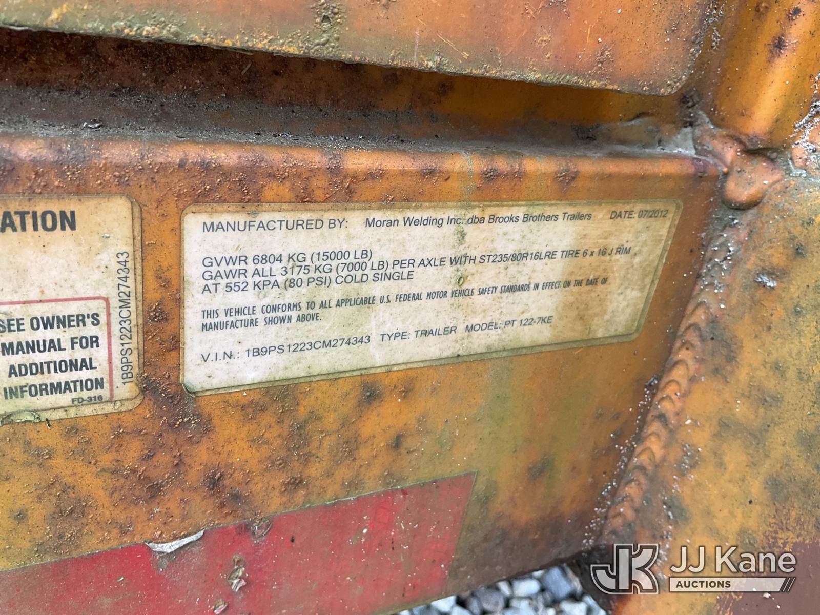 2012 Brooks Brothers PT 1227 Pole/Material Trailer, with GVWR: 15,000 LB, (Rust Damage) This is a Titled Item NOTE: This unit is being sold AS IS/WHERE IS via Timed Auction and is located in Shrewsbury, MA. Inspection & preview days for this unit are the 2 business days prior to the first day of items closing for this auction, item is located at 11 Fortune Blvd Shrewsbury, MA 01545 and hours of operations are 8a-4p. For pre-sale questions, please contact Rob Gifford @ (508) 864-4126. (Buyer is responsible for removal. Assistance by consignor or JJ Kane Auctioneers is not assured.)