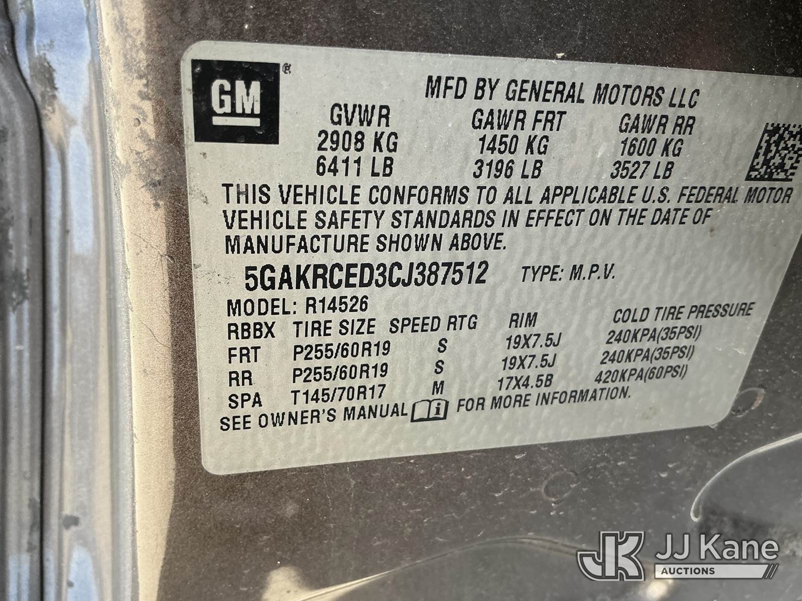 2012 Buick Enclave 4-Door Sport Utility Vehicle, 3.6L V6 DOHC 24V gas, FWD, Auto, A/C, True Mileage Unknown State of FL Unit (Not Running, Condition Unknown) (No Key) (FL Residents Purchasing Titled Items – tax, title & registration fees will be collected at the maximum rate of $400.00 under 25,999 and $800.00 for Over 26,000 and $250.00 trailers – Proof of insurance is mandatory; Out of State Residents Purchasing Title Items – tax will be collected based upon your state rate) (Branded Title - Police Vehicle) This is a Titled Item NOTE: This unit is being sold AS IS/WHERE IS via Timed Auction and is located in Thonotosassa, FL. Inspection & preview days for this unit are the 2 business days prior to the first day of items closing for this auction, item is located at 11720 N US 301 Thonotosassa, Fl 33592 and hours of operations are 8a-4p. For pre-sale questions, please contact Office Staff @ (813) 986-2485. (Buyer is responsible for removal. Assistance by consignor or JJ Kane Auctions is not assured.)