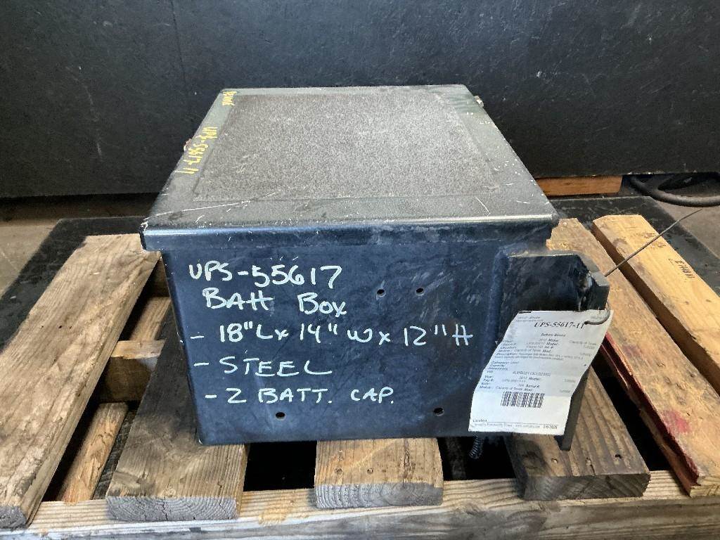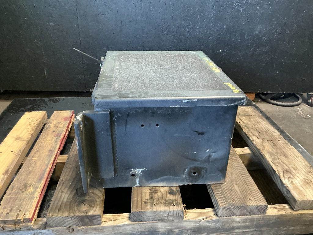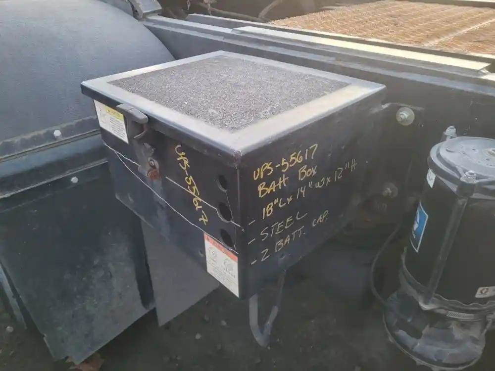 Passenger Side Battery Box, 18"L x 14"W x 12"H, 2 battery capacity with hinged lid. Good reusable condition.