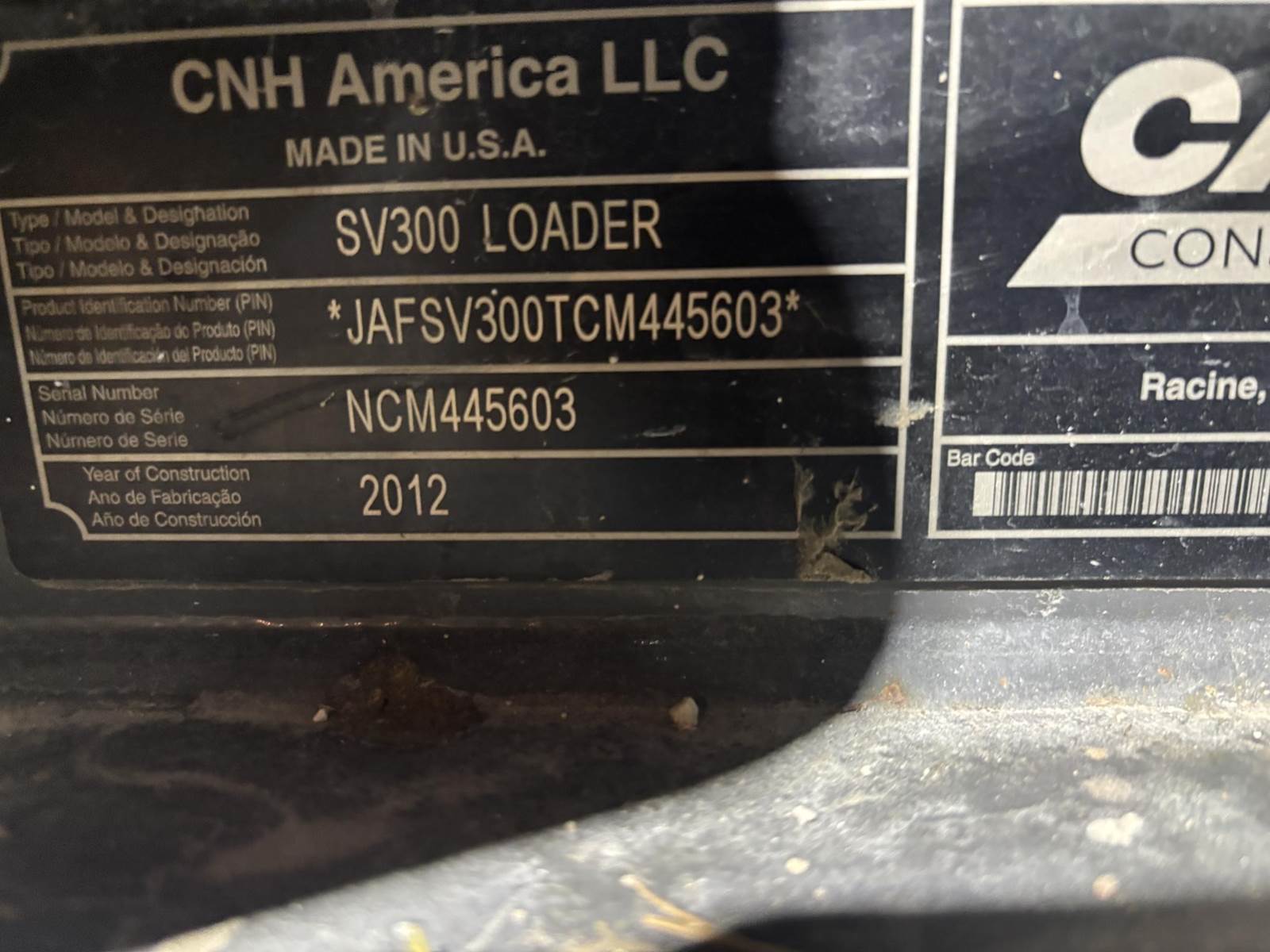 2012 Case SV300 Track Skid Steer