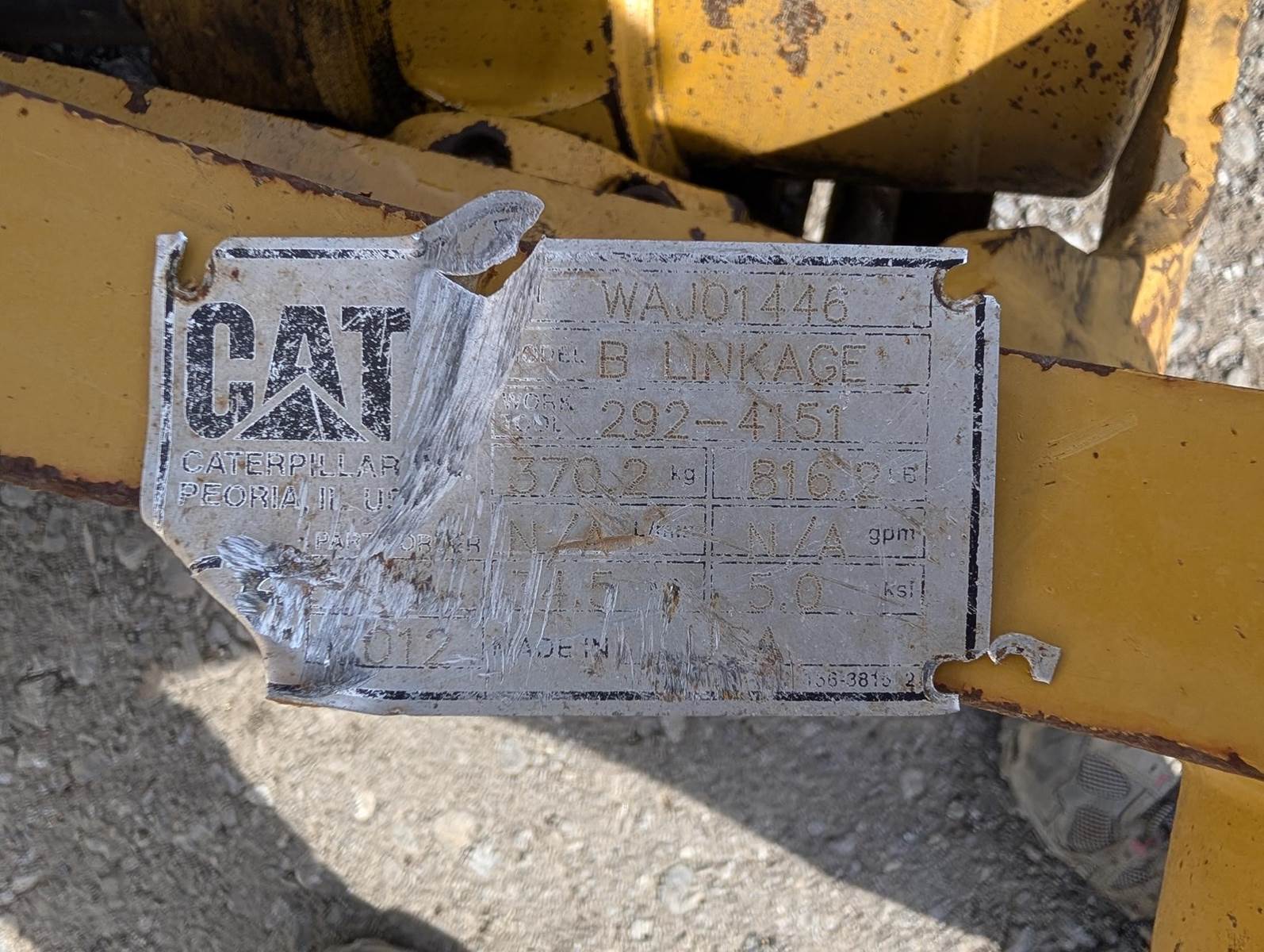 Cat Hydraulic Coupler; 292-4151; 80 mm Pins, 12" Stick Width, 17.5" C-2-C