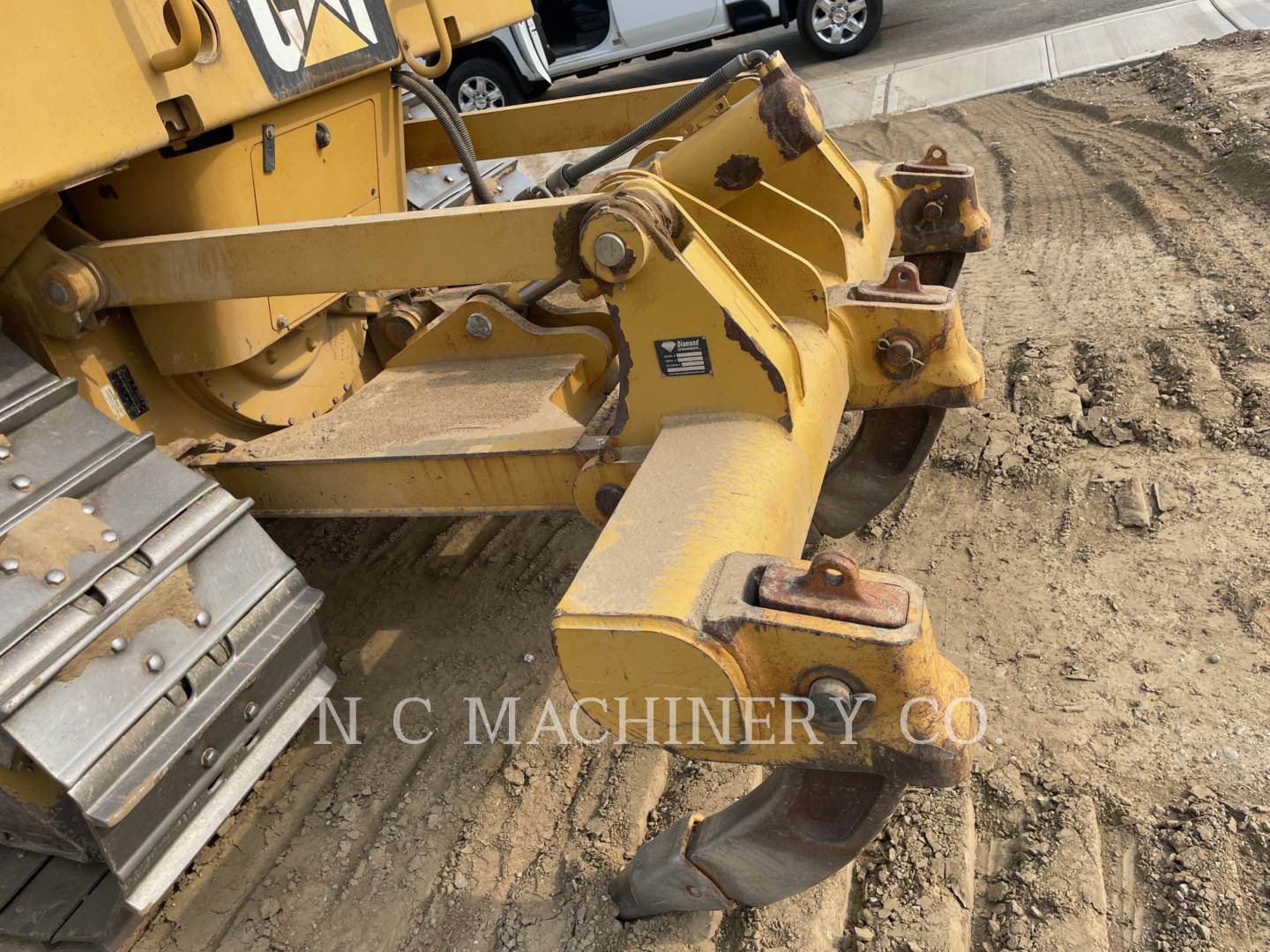 Front grab handles dented/missing. Ripper. Undercarriage approx. 60% remaining overall.