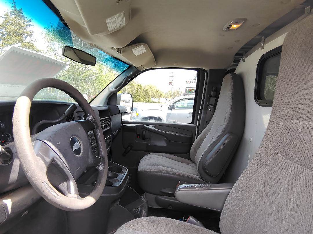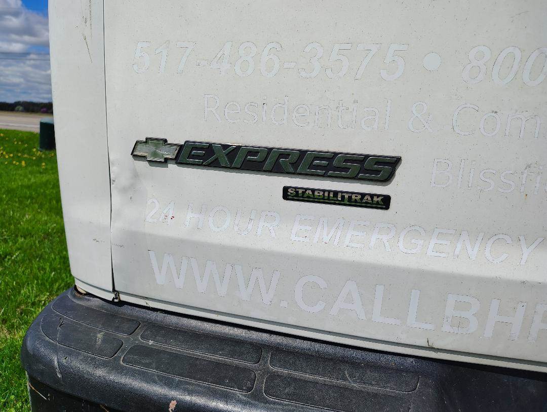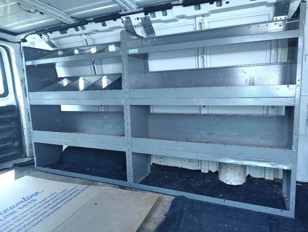 2012 Chevrolet Express Savana Van, GM Vortec 4.3 L Gas Engine, 200 HP, 4- Speed Automatic Transmission, GVWR 7,300#, GM Stabilitrak System, Double Back Doors, Double Side Doors on Passenger side, Storage Racks on both walls of cargo bay, Cargo Rack on top of vehicle roof, Get Financing