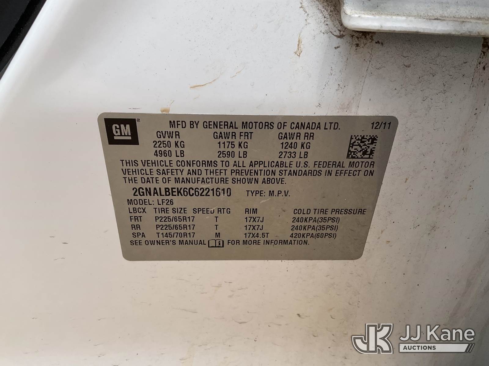 2012 Chevrolet Equinox 4-Door Sport Utility Vehicle, 4-cyl gas, FWD, 6-Speed Automatic, A/C, (49,129 miles) (Runs & Moves, (Minor Paint & Body Damage) This is a Titled Item NOTE: This unit is being sold AS IS/WHERE IS via Timed Auction and is located in Marion, TX. Inspection & preview days for this unit are the 2 business days prior to the first day of items closing for this auction, item is located at 3292 S Santa Clara Rd Marion, TX 78124 and hours of operations are 8a-4p. For pre-sale questions, please contact Brian Jarrell @ 210-540-3147. (Buyer is responsible for removal. Assistance by consignor or JJ Kane Auctions is not assured.)