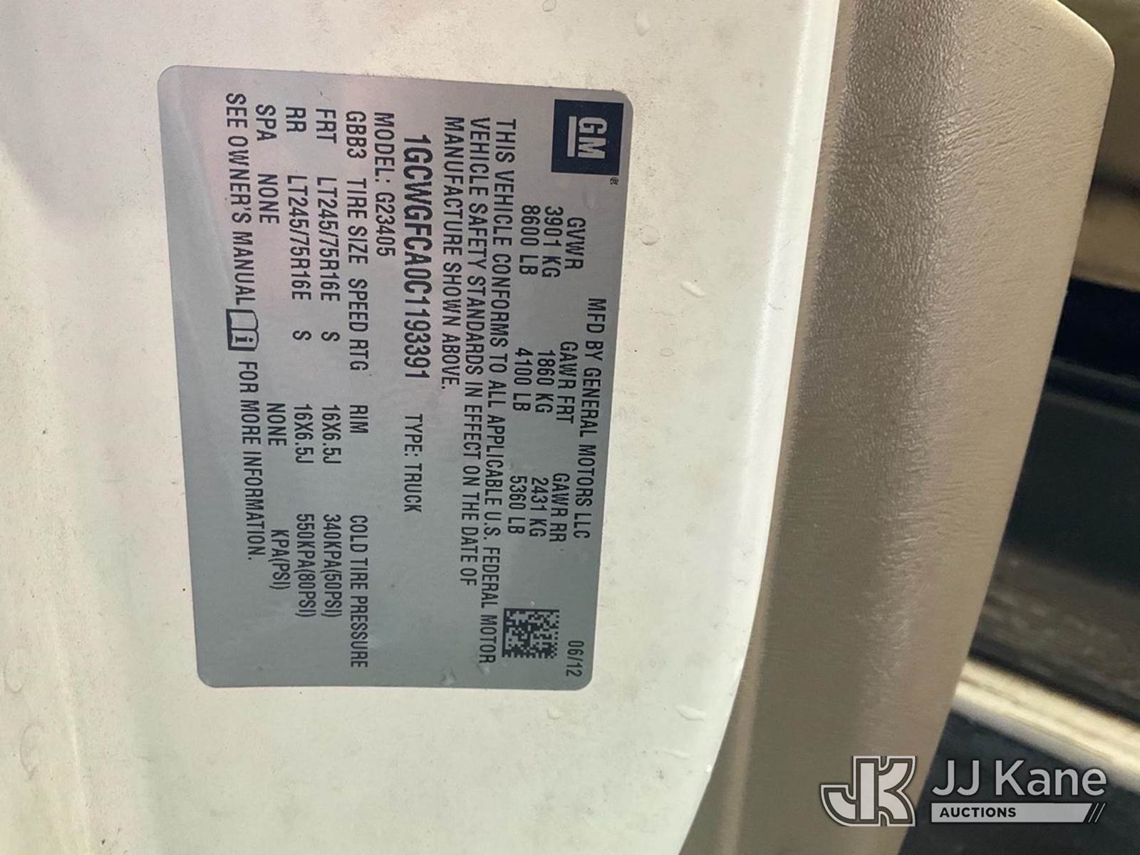 2012 Chevrolet Express 2500 Cargo Cargo Van, 4.8L V8 Gas, 6-Speed Automatic, A/C, (182,821 miles) (Runs & Moves, Check Engine Light On) (Removal is by Appointment Only, Buyer MUST make a appointment prior to picking up, Buyer/Transporter Must have PAID IN FULL RELEASE. No onsite assistance available, Please Come prepared.) This is a Titled Item NOTE: This unit is being sold AS IS/WHERE IS via Timed Auction and is located in Hagerstown, MD. Inspection & preview days for this unit are by appointment only; please contact us at contact@jjkane.com or 84-Go-JJKane for more details. For pre-sale questions, please contact the on-site office @ (301) 895-7777 or Kevin.Waggoner@JJKane.com. (Buyer is responsible for removal. Assistance by consignor or JJ Kane Auctions is not assured.)