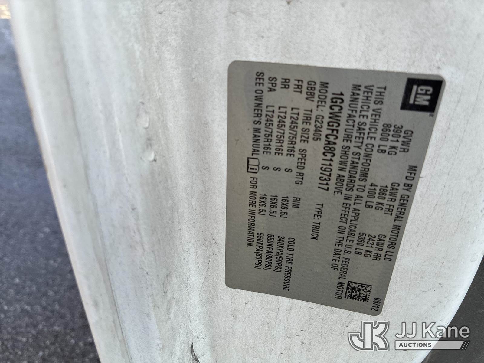 2012 Chevrolet Express G2500 Cargo Van, 4.8L V8 OHV 16V FFV gas, 6-Speed Automatic, RWD, A/C, (161,843 miles) (Runs & Moves) (Paint Damage) This is a Titled Item NOTE: This unit is being sold AS IS/WHERE IS via Timed Auction and is located in Ashland, OH. Inspection & preview days for this unit are the 2 business days prior to the first day of items closing for this auction, item is located at 1463 Simonton Rd, Unit A, Ashland OH 44805 and hours of operations are 8a-4p. For pre-sale questions, please contact Jimmy Sanders @ (567) 474-5162 or jimmy.sanders@jjkane.com. (Buyer is responsible for removal. Assistance by consignor or JJ Kane Auctions is not assured.)