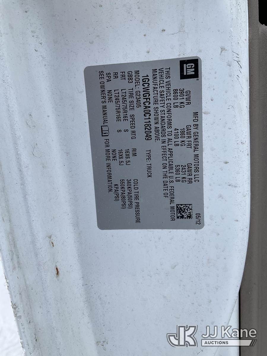 2012 Chevrolet Express G2500 Cargo Van, 8-cyl gas, Auto, A/C, (73,395 miles) (Jump To Start, Runs & Moves, Rust Damage ) This is a Titled Item NOTE: This unit is being sold AS IS/WHERE IS via Timed Auction and is located in Rome, NY. Inspection & preview days for this unit are the 2 business days prior to the first day of items closing for this auction, item is located at 5835 Success Dr Rome, NY 13440 and hours of operations are 8a-4p. For pre-sale questions, please contact Ryan Jackson @ (315) 749-3790 or Ryan.Jackson@jjkane.com. (Buyer is responsible for removal. Assistance by consignor or JJ Kane Auctions is not assured.)