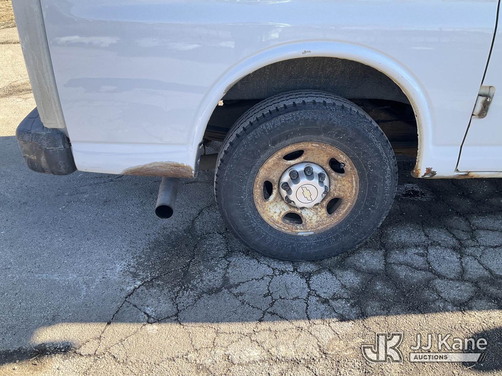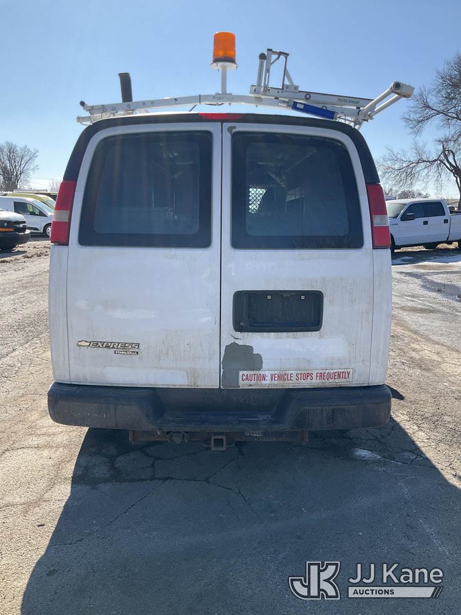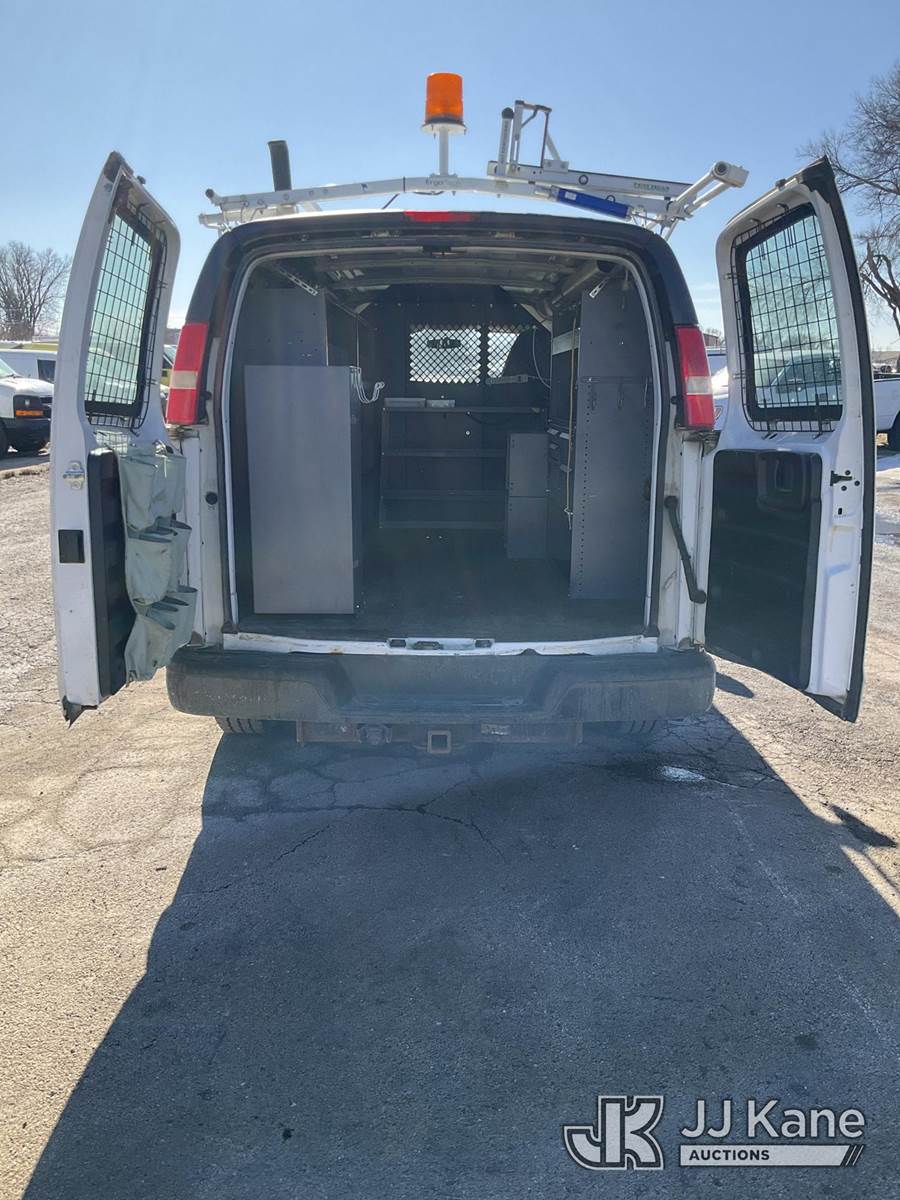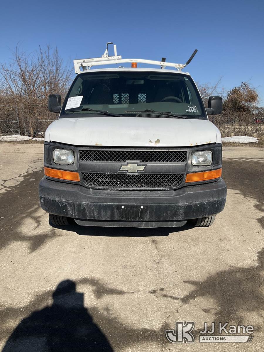 2012 Chevrolet Express G2500 Cargo Van, 4.8L V8 OHV 16V FFV gas, RWD, 6-Speed Automatic, A/C, with ladder rack, (123,454 miles) (Runs & Moves) (Check Engine Light On, Paint/Rust Damage) (Reads 5,302 hours) This is a Titled Item NOTE: This unit is being sold AS IS/WHERE IS via Timed Auction and is located in South Beloit, IL. Inspection & preview days for this unit are the 2 business days prior to the first day of items closing for this auction, item is located at 14354 Dearborn Ave South Beloit, IL and hours of operations are 8a-4p. For pre-sale questions, please contact Derek Eklund at (608) 904-0618 or (derek.eklund@jjkane.com). (Buyer is responsible for removal. Assistance by consignor or JJ Kane Auctions is not assured.)