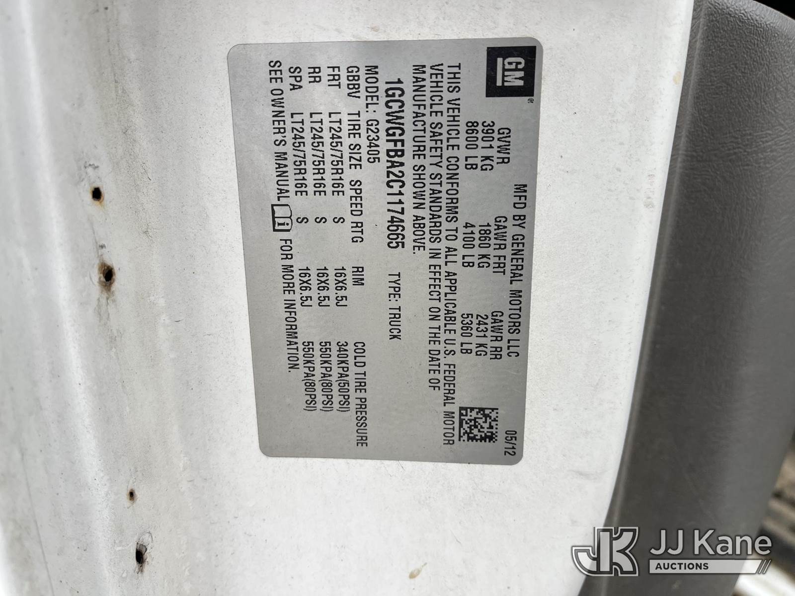 2012 Chevrolet Express G2500 Cargo Van, 4.8L V8 Gas, RWD, 6-Speed Automatic, A/C, (92,838 miles) (Runs & Moves, TPS Light On, Rust On Rocker Panels, Dent In Doors) This is a Titled Item NOTE: This unit is being sold AS IS/WHERE IS via Timed Auction and is located in Smock, PA. Inspection & preview days for this unit are the 2 business days prior to the first day of items closing for this auction, item is located at 1000 Franklin Dr Smock, PA 15480 and hours of operations are 7:00 am to 3:30 pm. For pre-sale questions, please contact Alaina White @ (724) 562-2575 or Alaina.White@JJKane.com. (Buyer is responsible for removal. Assistance by consignor or JJ Kane Auctions is not assured.)