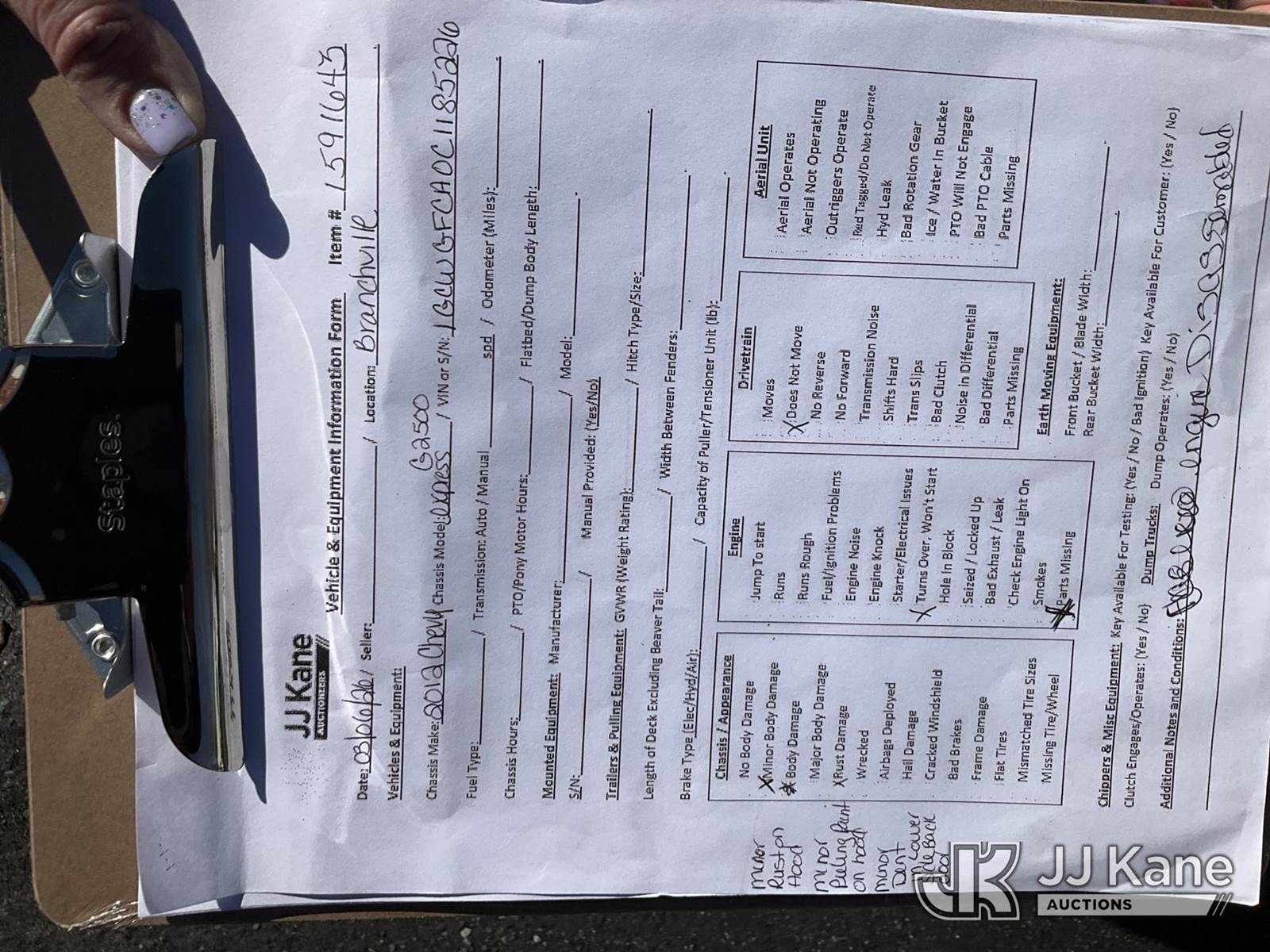 2012 Chevrolet Express G2500 Cargo Van, 8-cyl gas, Auto, A/C, True Mileage Unknown (Not Running, Condition Unknown, Missing Parts, Must Tow) (Removal is by Appointment Only, Buyer MUST make a appointment prior to picking up, Buyer/Transporter Must have PAID IN FULL RELEASE. No onsite assistance available, Please Come prepared.) This is a Titled Item NOTE: This unit is being sold AS IS/WHERE IS via Timed Auction and is located in Branchville, NJ. Inspection & preview days for this unit are by appointment only; please contact us at contact@jjkane.com or 84-Go-JJKane for more details. For pre-sale questions, please contact the on-site office @ (973) 948-2026 or wtrbranchville@gmail.com. (Buyer is responsible for removal. Assistance by consignor or JJ Kane Auctions is not assured.)