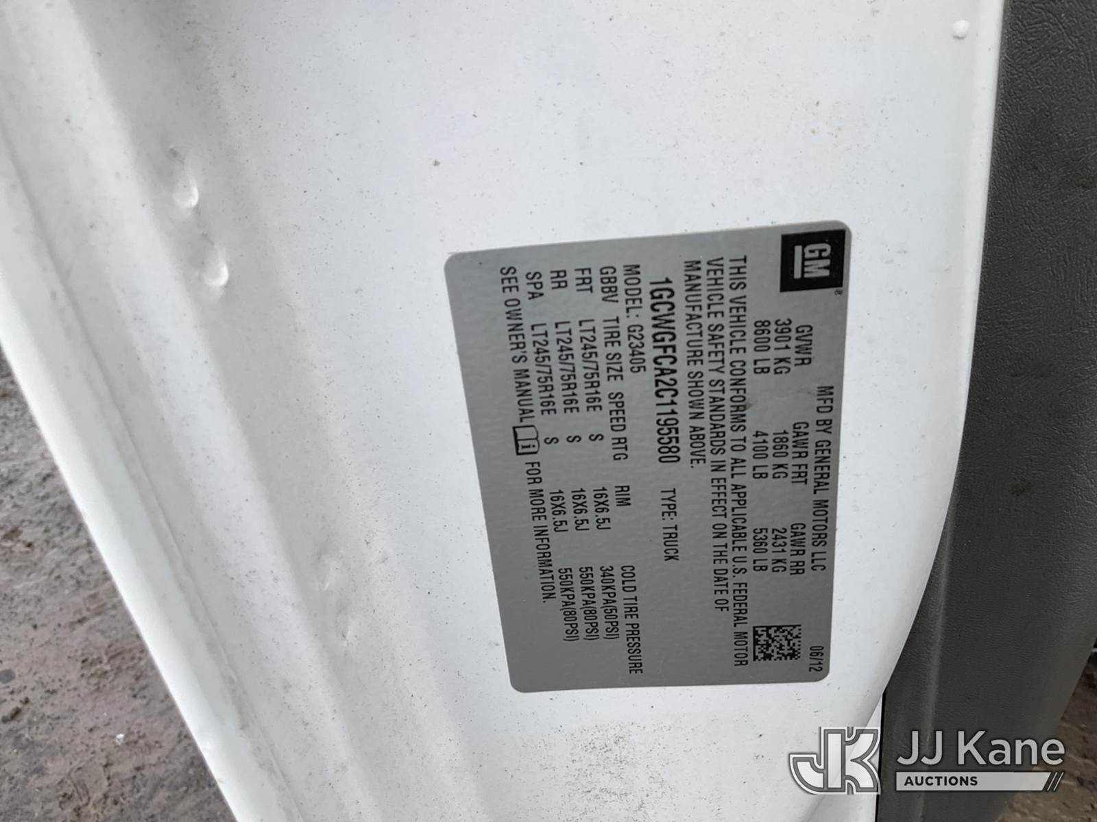 2012 Chevrolet Express G2500 Cargo Van, 8-cyl gas, Auto, A/C, (84,834 miles) (Runs & Moves, Bad Trans., Trans. Slips, Jump to Start) This is a Titled Item NOTE: This unit is being sold AS IS/WHERE IS via Timed Auction and is located in Rome, NY. Inspection & preview days for this unit are the 2 business days prior to the first day of items closing for this auction, item is located at 5835 Success Dr Rome, NY 13440 and hours of operations are 8a-4p. For pre-sale questions, please contact Ryan Jackson @ (315) 749-3790 or Ryan.Jackson@jjkane.com. (Buyer is responsible for removal. Assistance by consignor or JJ Kane Auctions is not assured.)