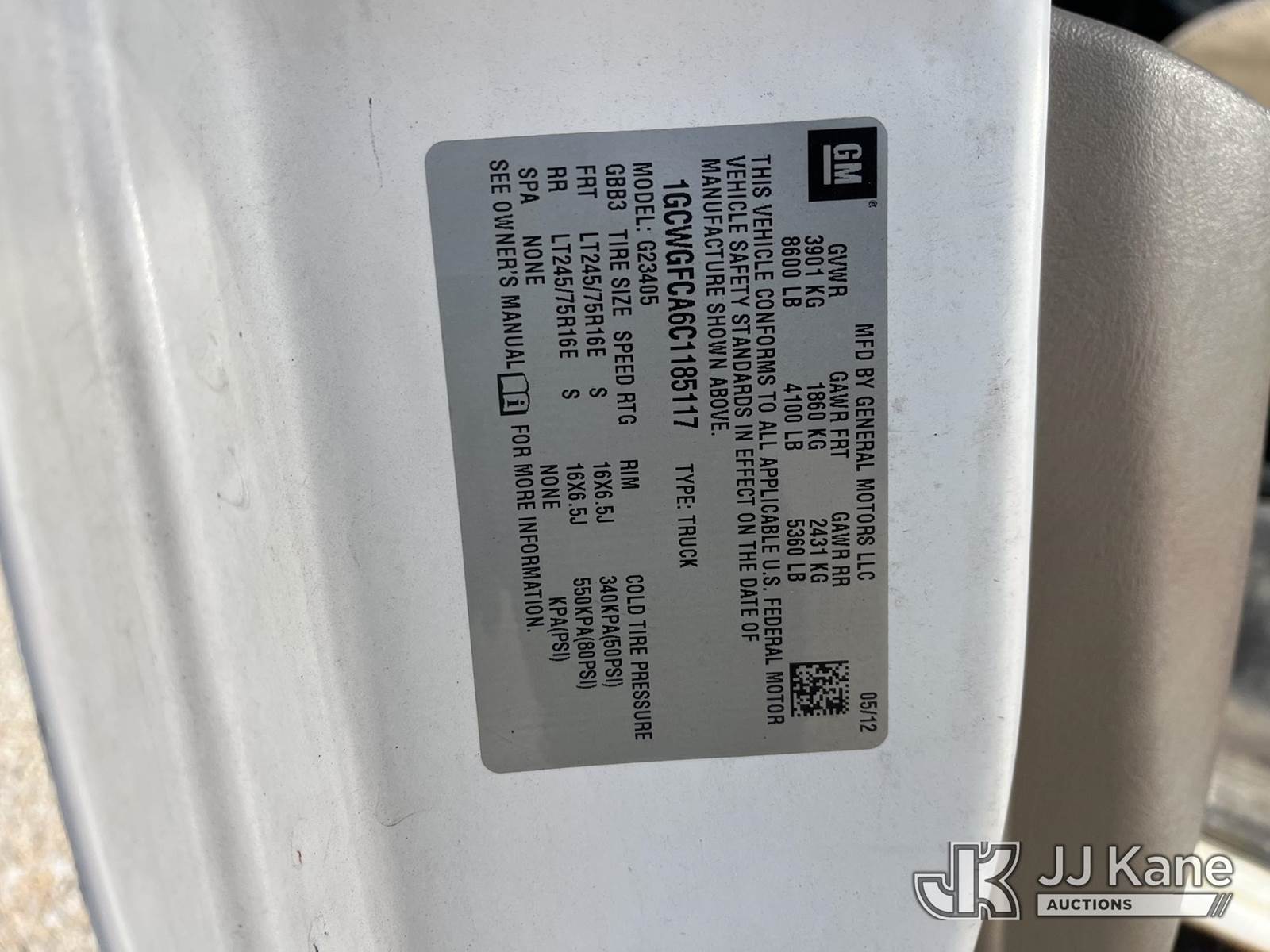 2012 Chevrolet Express G2500 Cargo Van, 4.8L V8 FFV, RWD, Automatic, A/C, (141,225 miles) (Runs & Moves, Doors, Rocker & Corner Panel Rust) This is a Titled Item NOTE: This unit is being sold AS IS/WHERE IS via Timed Auction and is located in Smock, PA. Inspection & preview days for this unit are the 2 business days prior to the first day of items closing for this auction, item is located at 1000 Franklin Dr Smock, PA 15480 and hours of operations are 7:00 am to 3:30 pm. For pre-sale questions, please contact Alaina White @ (724) 562-2575 or Alaina.White@JJKane.com. (Buyer is responsible for removal. Assistance by consignor or JJ Kane Auctions is not assured.)