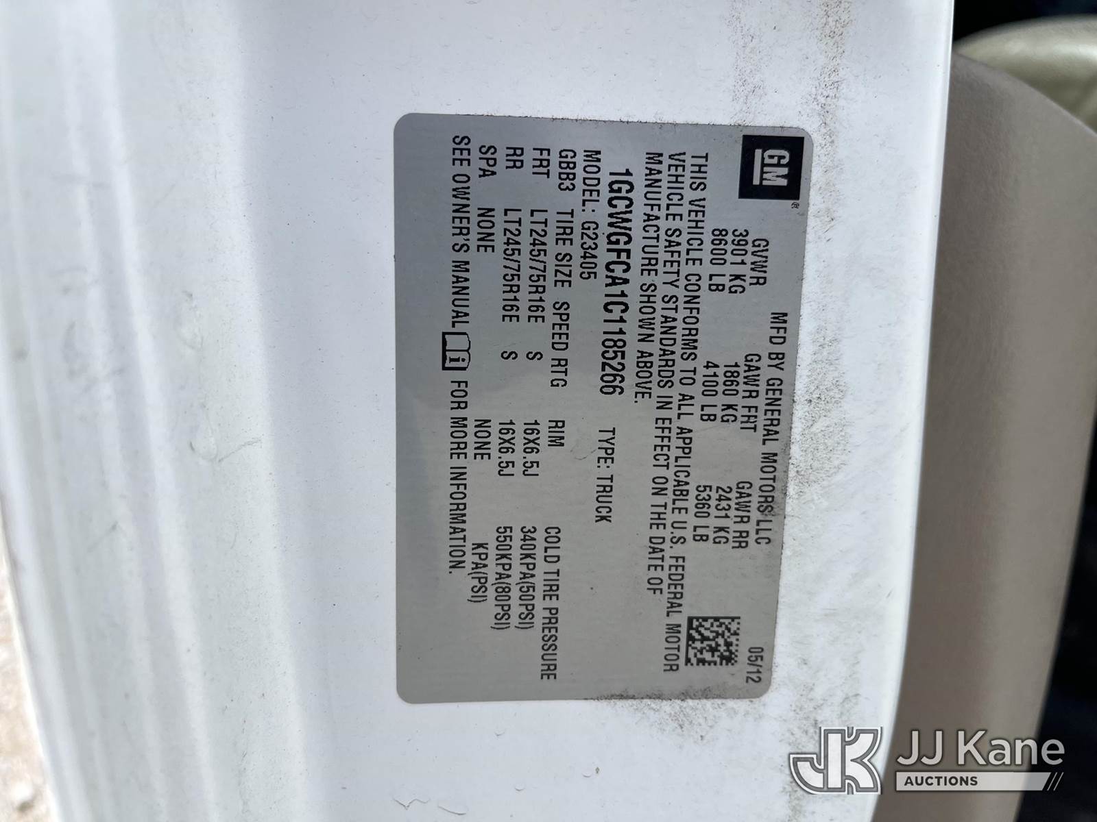 2012 Chevrolet Express G2500 Cargo Van, 4.8L V8 FFV, RWD, Automatic, A/C, (53,469 miles) (Runs & Moves, Jump To Start, Rocker & Corner Panel Rust) This is a Titled Item NOTE: This unit is being sold AS IS/WHERE IS via Timed Auction and is located in Smock, PA. Inspection & preview days for this unit are the 2 business days prior to the first day of items closing for this auction, item is located at 1000 Franklin Dr Smock, PA 15480 and hours of operations are 7:00 am to 3:30 pm. For pre-sale questions, please contact Alaina White @ (724) 562-2575 or Alaina.White@JJKane.com. (Buyer is responsible for removal. Assistance by consignor or JJ Kane Auctions is not assured.)