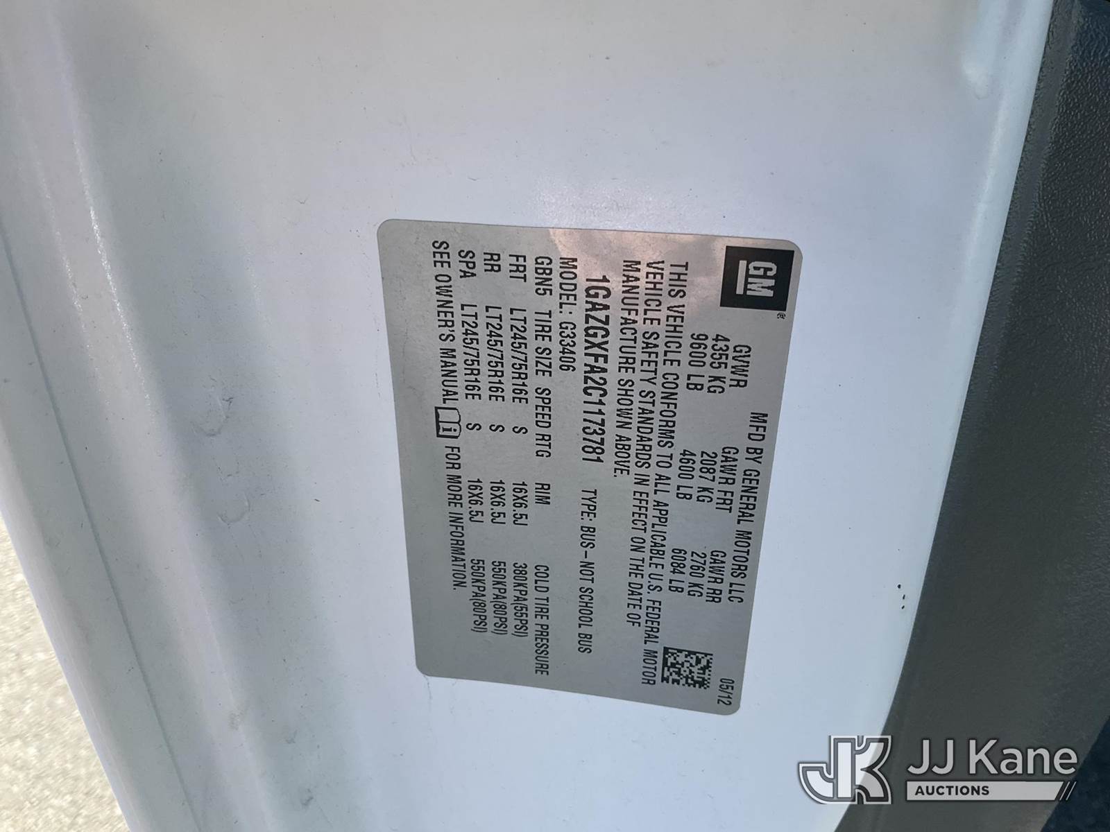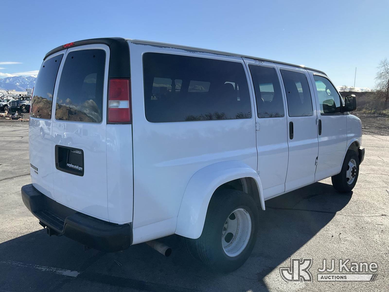 2012 Chevrolet Express G3500 Dually Passenger Van, 8-cyl gas, Auto, A/C, (28,551 miles) (Runs & Moves) This is a Titled Item NOTE: This unit is being sold AS IS/WHERE IS via Timed Auction and is located in Salt Lake City, UT. Inspection & preview days for this unit are the 2 business days prior to the first day of items closing for this auction, item is located at 2353 N Redwood Rd Salt Lake City, UT 84116 and hours of operations are 8a-4p. Titles executed exactly as bidder registered. Ensure your name and/or business name and address in JJ Kane and/or ProxiBid is correct before bidding. For pre-sale questions, please contact Office Staff @ (801) 519-0123. (Buyer is responsible for removal. Assistance by consignor or JJ Kane Auctions is not assured.)
