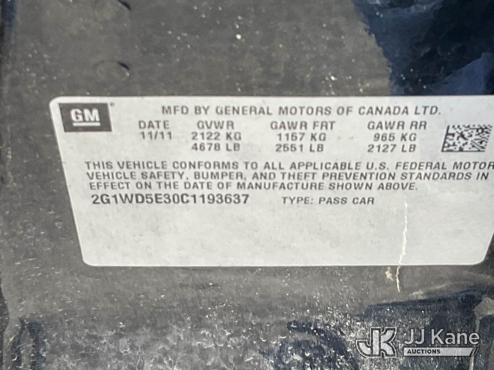 2012 Chevrolet Impala 4-Door Sedan, 6-cyl gas, Auto, A/C, (128,923 miles) (Runs & Moves) (Check Engine Light On) This is a Titled Item NOTE: This unit is being sold AS IS/WHERE IS via Timed Auction and is located in Salt Lake City, UT. Inspection & preview days for this unit are the 2 business days prior to the first day of items closing for this auction, item is located at 2353 N Redwood Rd Salt Lake City, UT 84116 and hours of operations are 8a-4p. Titles executed exactly as bidder registered. Ensure your name and/or business name and address in JJ Kane and/or ProxiBid is correct before bidding. For pre-sale questions, please contact Office Staff @ (801) 519-0123. (Buyer is responsible for removal. Assistance by consignor or JJ Kane Auctions is not assured.)