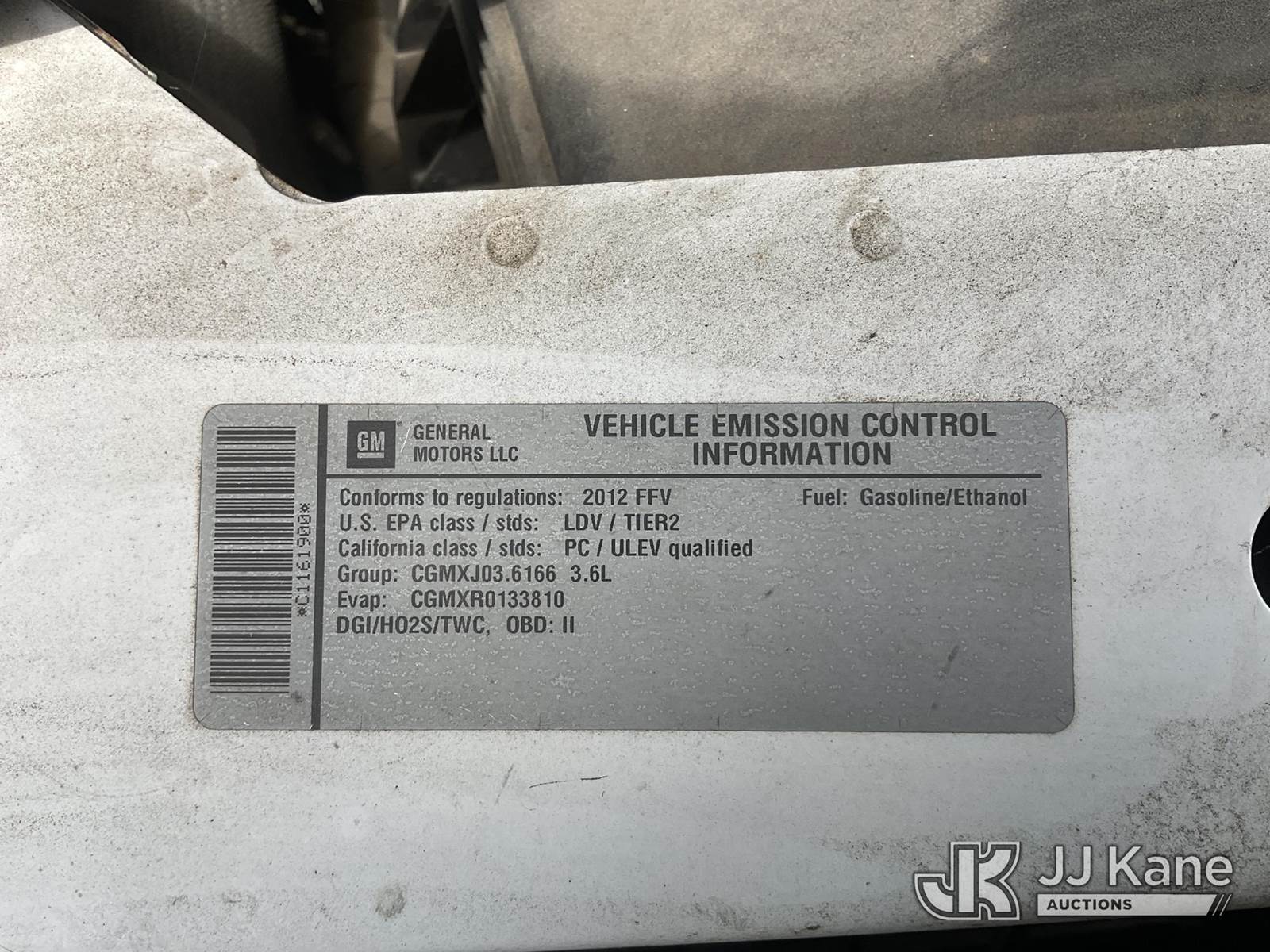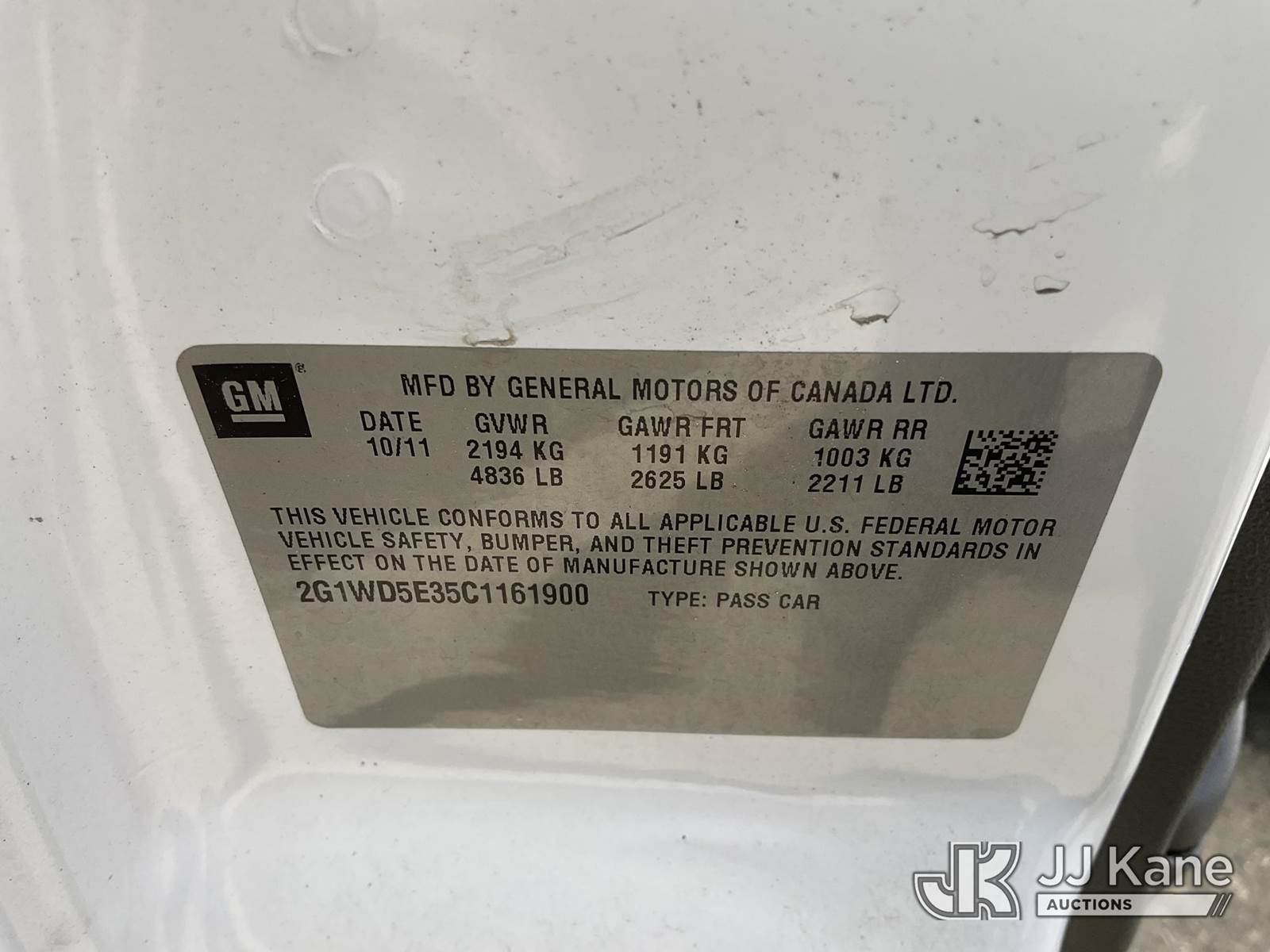 2012 Chevrolet Impala Police Cruiser 4-Door Sedan, s/n 2G1WD5E35C1161900, 3.6L V6 DOHC 16V FWD, FFV, 6-Speed Automatic, A/C, (32,322 miles) (Runs & Moves, Trunk Doesn’t Latch) (Vehicle previously used with a ‘cold plate’ or protected record registration. Due to the prior status, VIN may not yet appear in NMVTIS, which could affect DMV title/registration processing. Buyer acknowledges and accepts this,) This is a Titled Item NOTE: This unit is being sold AS IS/WHERE IS via Timed Auction and is located in Dixon, CA. Inspection & preview days for this unit are the 2 business days prior to the first day of items closing for this auction, item is located at 8668 Sparling Ln Dixon, CA 95620 and hours of operations are 8a-4p. For pre-sale questions, please contact JJ Kane Staff at (707) 678-8060 (dixon@jjkane.com). Dealer License Number 45696. (Buyer is responsible for removal. Assistance by consignor or JJ Kane Auctions is not assured.)