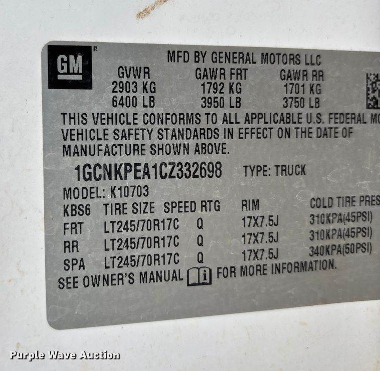 VIN: 1GCNKPEA1CZ332698