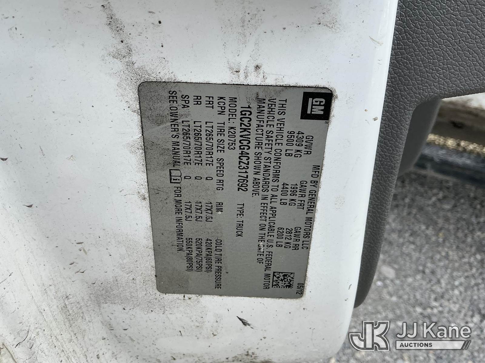 2012 Chevrolet Silverado 2500HD 4x4 Extended-Cab Pickup Truck, 8-cyl gas, Auto, A/C, with service cap, (35,363 miles) (Runs & Moves) (Rust/Body Damage) This is a Titled Item NOTE: This unit is being sold AS IS/WHERE IS via Timed Auction and is located in Fort Wayne, IN. Inspection & preview days for this unit are the 2 business days prior to the first day of items closing for this auction, item is located at 3020 Commercial Rd Fort Wayne, IN 46809 and hours of operations are 8a-4p. For pre-sale questions, please contact Eric Mcintosh @ (260) 205-2483 (Buyer is responsible for removal. Assistance by consignor or JJ Kane Auctions is not assured.)