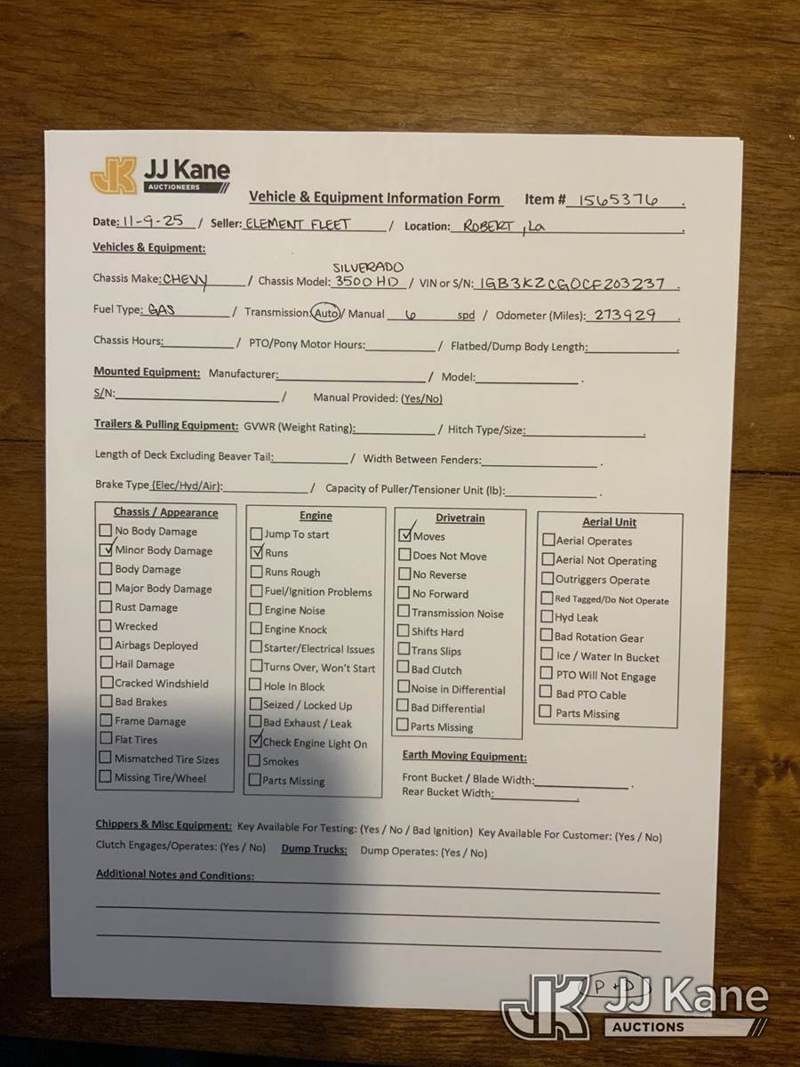 2012 Chevrolet Silverado 3500HD 4x4 Enclosed Service Truck, 8-cyl gas, Auto, A/C, (273,929 miles) (Runs & Moves) (Check Engine Light On, Body/Paint Damage) This is a Titled Item NOTE: This unit is being sold AS IS/WHERE IS via Timed Auction and is located in Robert, LA. Inspection & preview days for this unit are by appointment only; please contact us at contact@jjkane.com or 84-Go-JJKane for more details. License # LA AB-154 (Buyer is responsible for removal. Assistance by consignor or JJ Kane Auctioneers is not assured.)