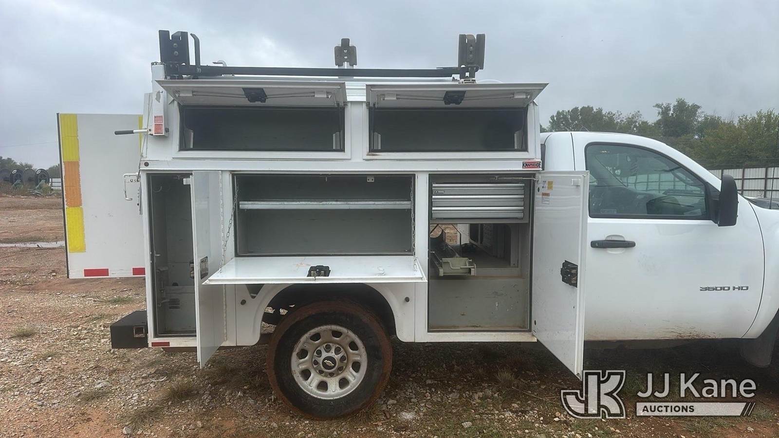 2012 Chevrolet Silverado 3500HD Enclosed Service Truck, 8-cyl gas, 6-Speed Automatic, A/C, (192,970 miles) (Runs & Moves) (Check Engine Light On, Has Minor Body Damage) This is a Titled Item NOTE: This unit is being sold AS IS/WHERE IS via Timed Auction and is located in Oklahoma City, OK. For more information & removal arrangements please contact Ricky McPherson @ 816-610-2250 (Buyer is responsible for removal. Assistance by consignor or JJ Kane Auctioneers is not assured.)