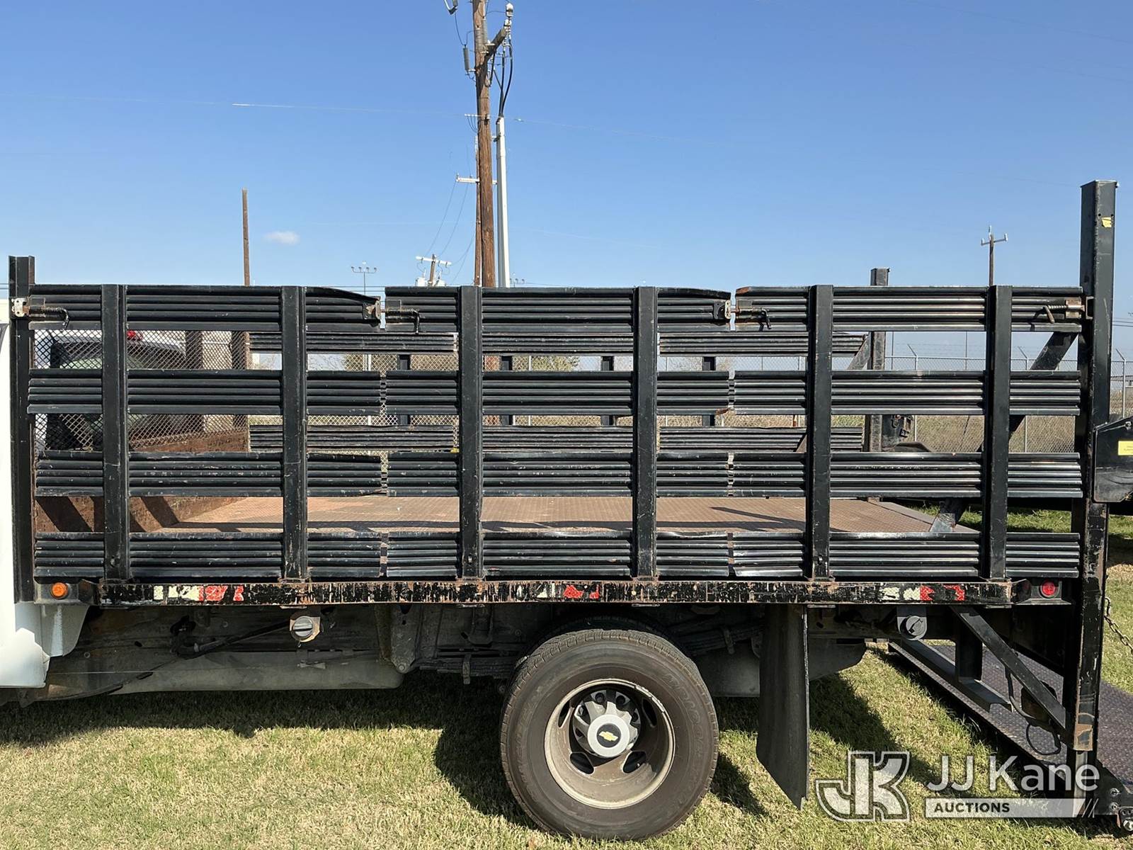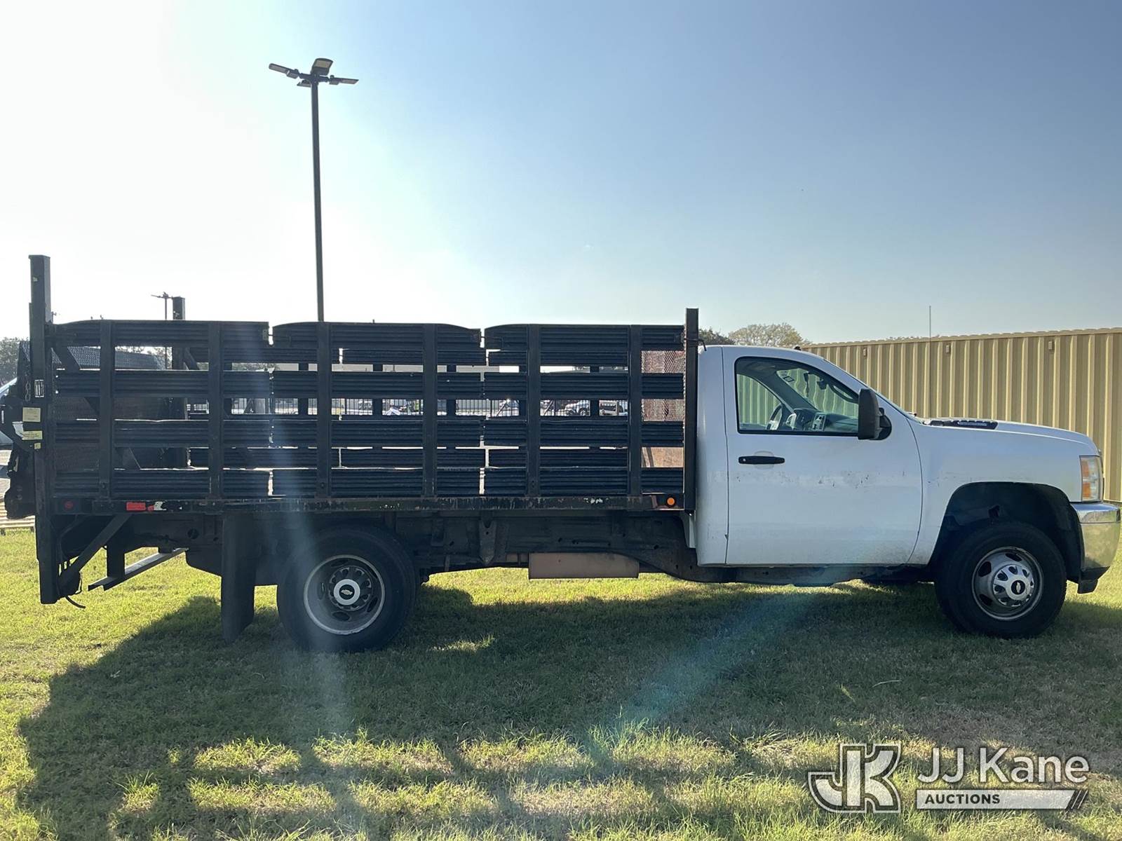 2012 Chevrolet Silverado 3500HD Stake Truck, 8-cyl gas, 6-Speed Automatic, A/C, with Liftgate, (180,256 miles) (Runs & Moves) (Liftgate Operational, Check Engine Light On) This is a Titled Item NOTE: This unit is being sold AS IS/WHERE IS via Timed Auction and is located in San Antonio, TX. For more information & removal arrangements please contact Travis Rapp @ 830-360-6293 (Buyer is responsible for removal. Assistance by consignor or JJ Kane Auctions is not assured.)