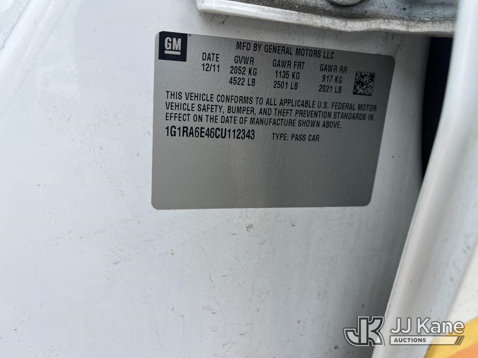 2012 Chevrolet Volt 4-Door Plug-In Hybrid Sedan, 1.4L L4 Plug-In Hybrid FWD, Automatic, A/C, (26,018 miles) (Runs & Moves, Passenger Window Inop, Check Engine Light On, No Charger ) This is a Titled Item NOTE: This unit is being sold AS IS/WHERE IS via Timed Auction and is located in Smock, PA. Inspection & preview days for this unit are the 2 business days prior to the first day of items closing for this auction, item is located at 1000 Franklin Dr Smock, PA 15480 and hours of operations are 7:00 am to 3:30 pm. For pre-sale questions, please contact Alaina White @ (724) 562-2575 or Alaina.White@JJKane.com. (Buyer is responsible for removal. Assistance by consignor or JJ Kane Auctions is not assured.)